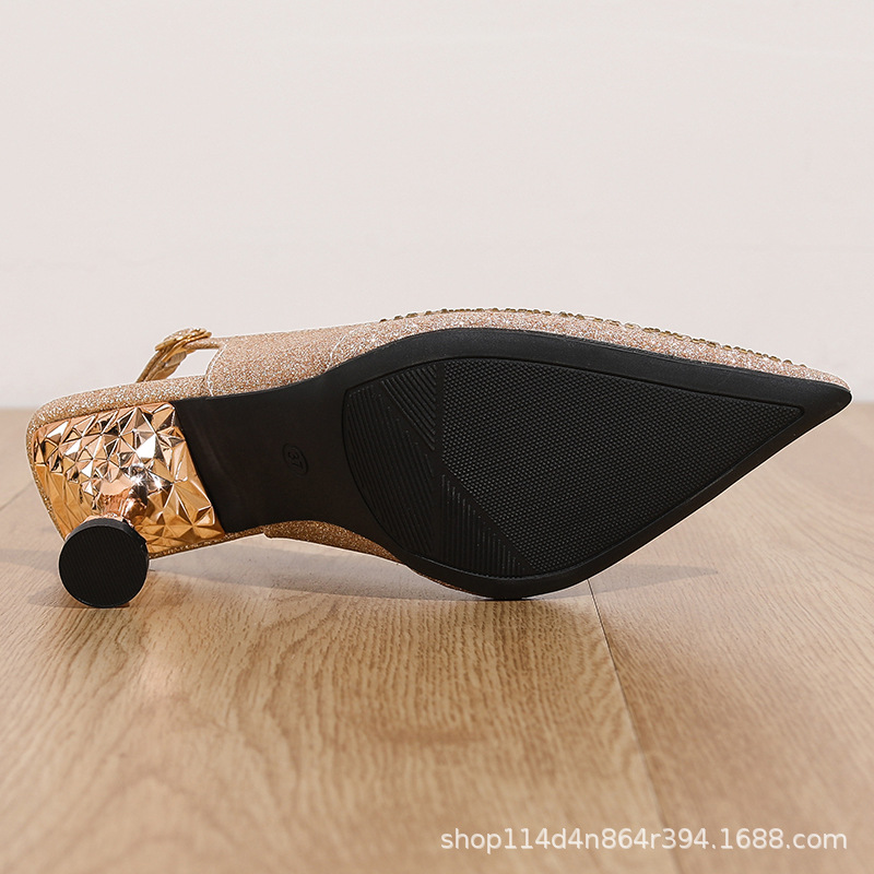 신상품 반짝이는 골드 다이아몬드 포인트 포인티드토 하이힐 여성화, 고급스러운 스틸레토 하이힐, 다용도 하이힐 샌들스토어 가기