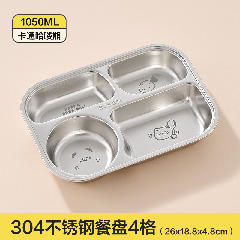 304 스테인레스 스틸 어린이 가정용 분할 식사 접시 유치원 아기 만화 먹는 접시 귀여운 식기 대용량스토어 가기
