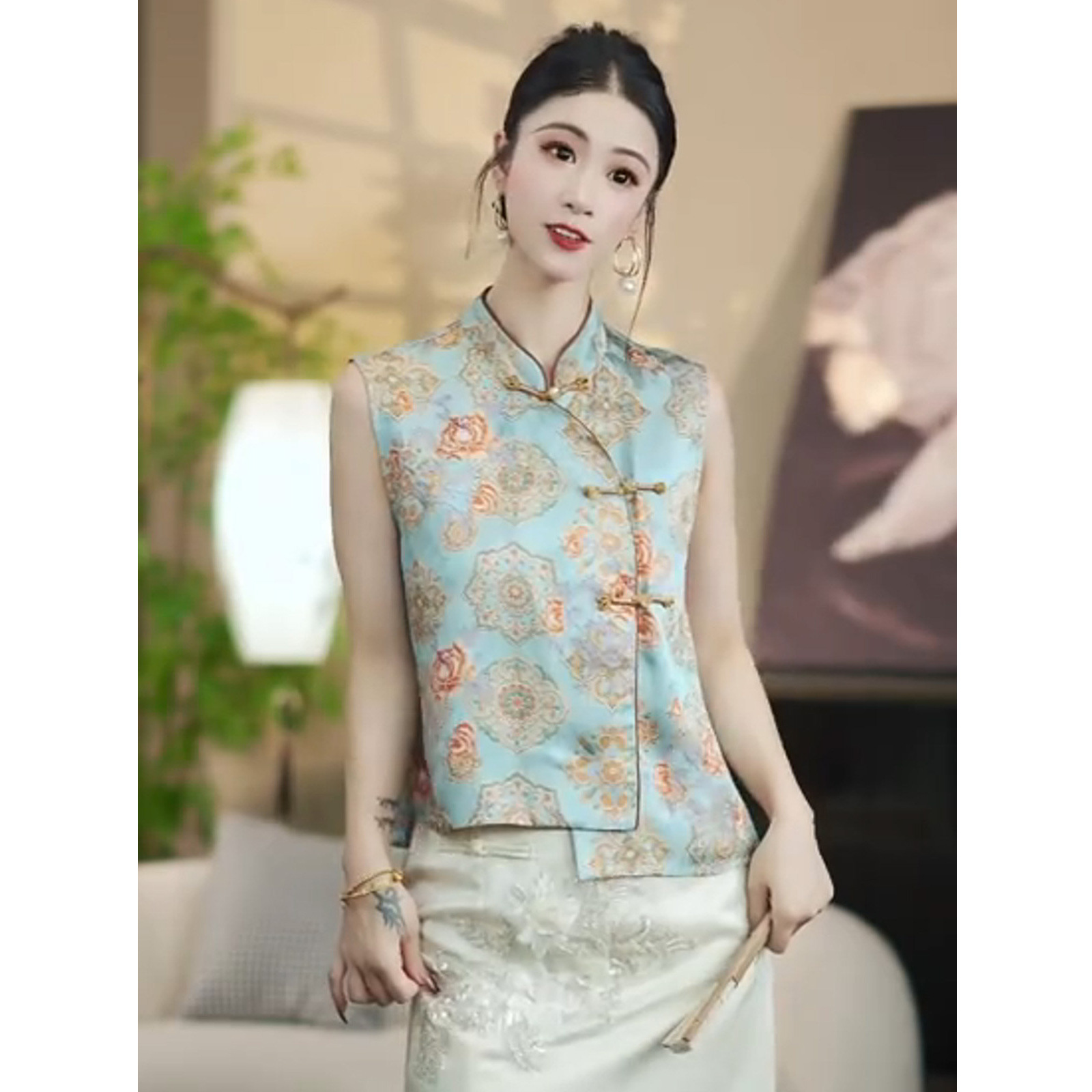 여성을위한 중국 스타일의 새로운 중국 스타일 복고풍 민소매 조끼 2025 여름 새로운 기질 느슨한 양복 조끼 탑 여성 의류스토어 가기