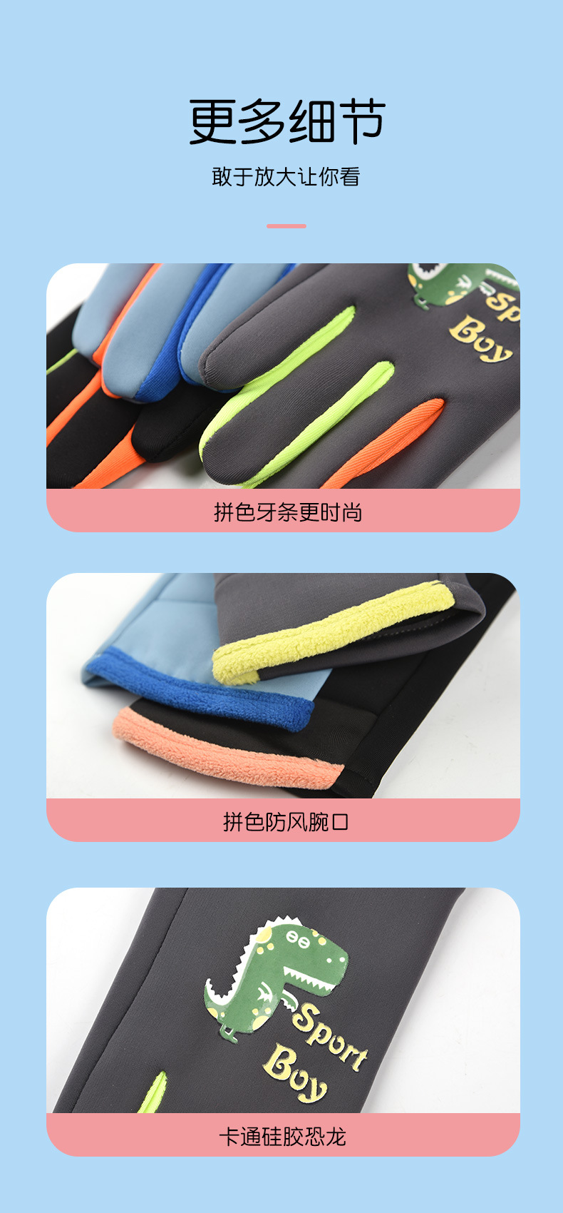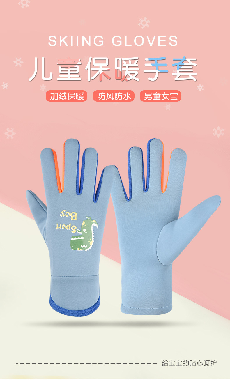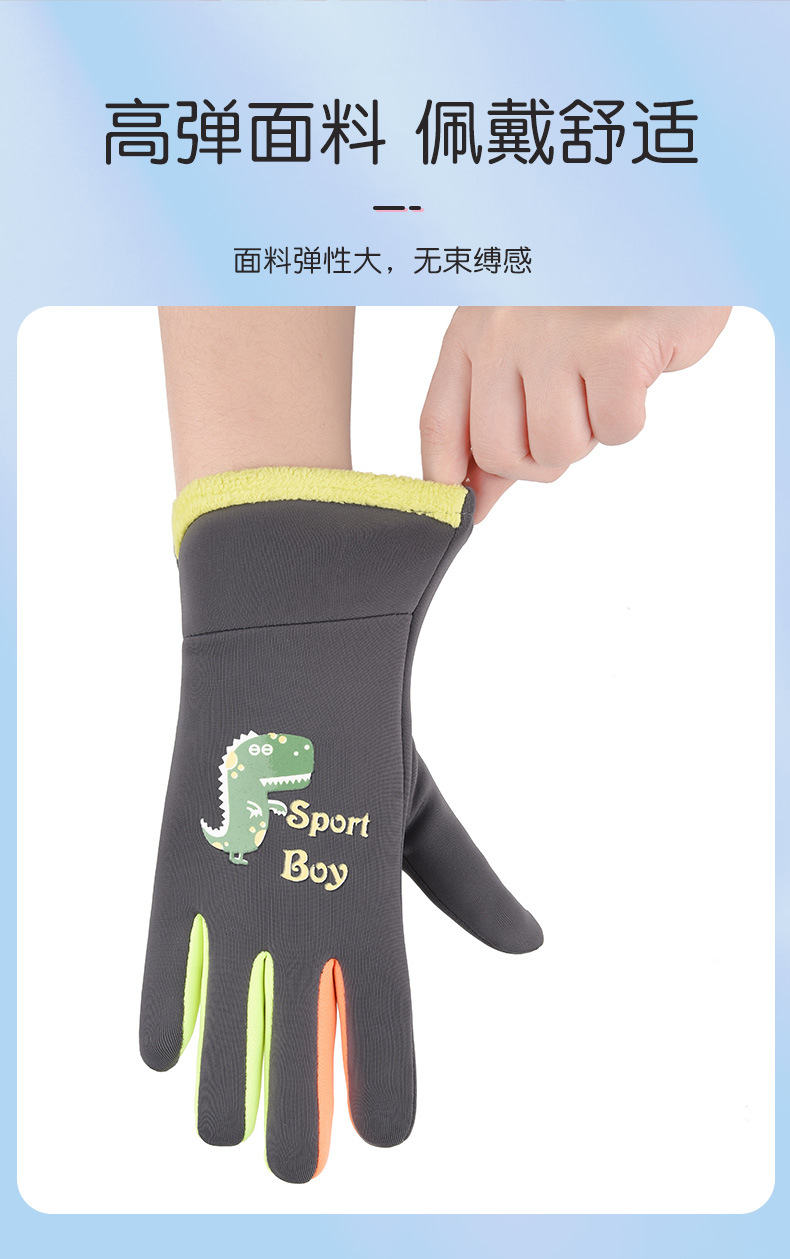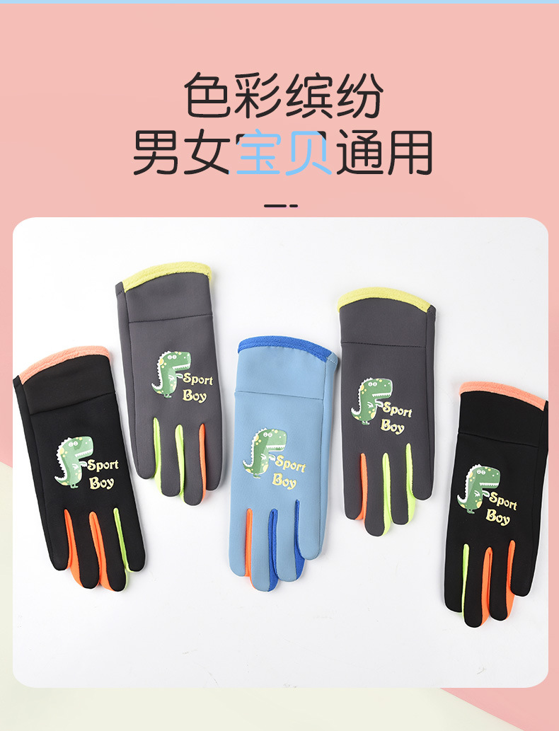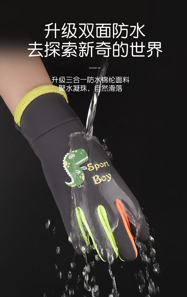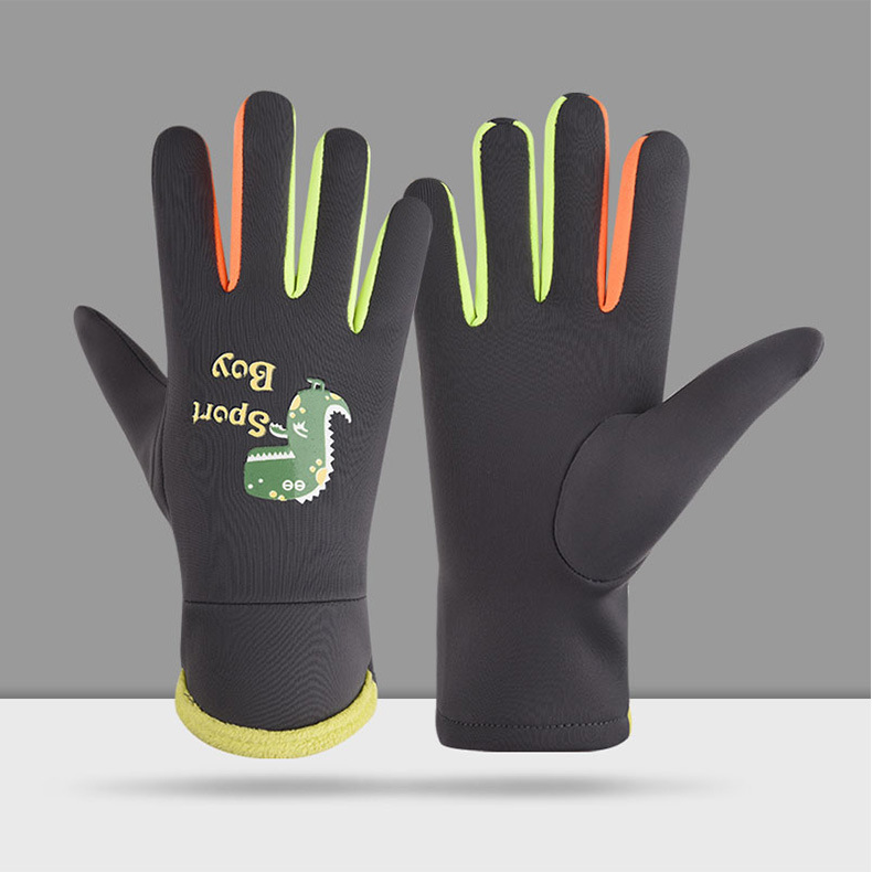 겨울에는 벨벳으로 따뜻하게 유지하는 어린이 장갑, 방풍 및 방수 공룡 소년 소녀 야외 스포츠 스노우 사이클링 장갑