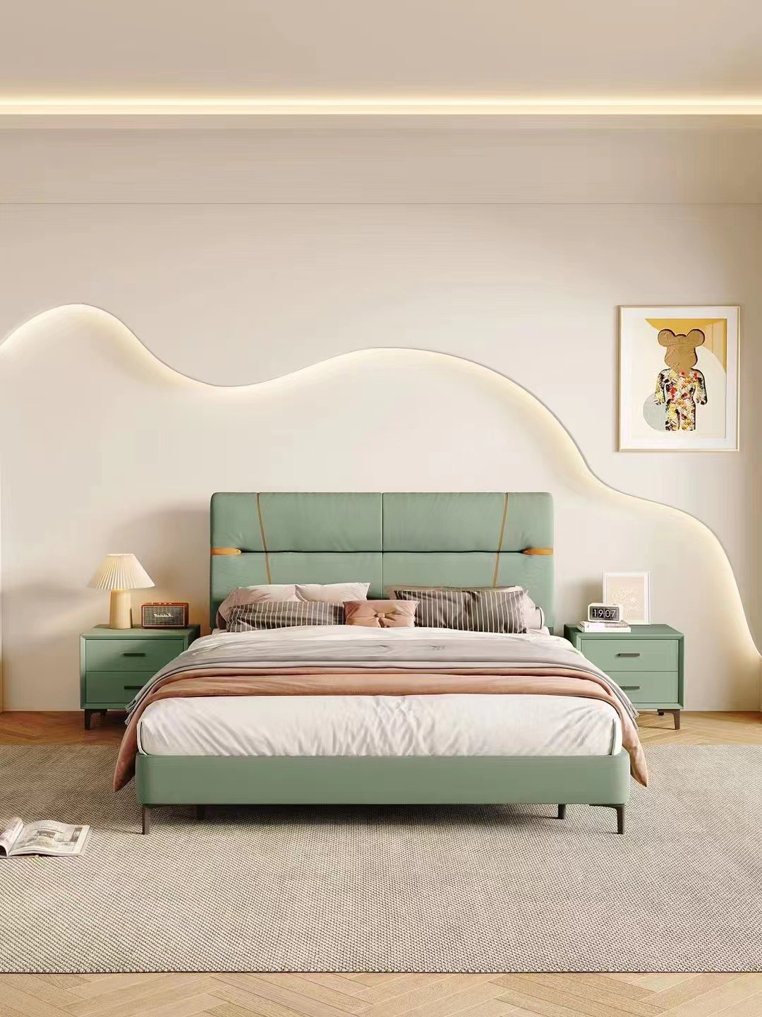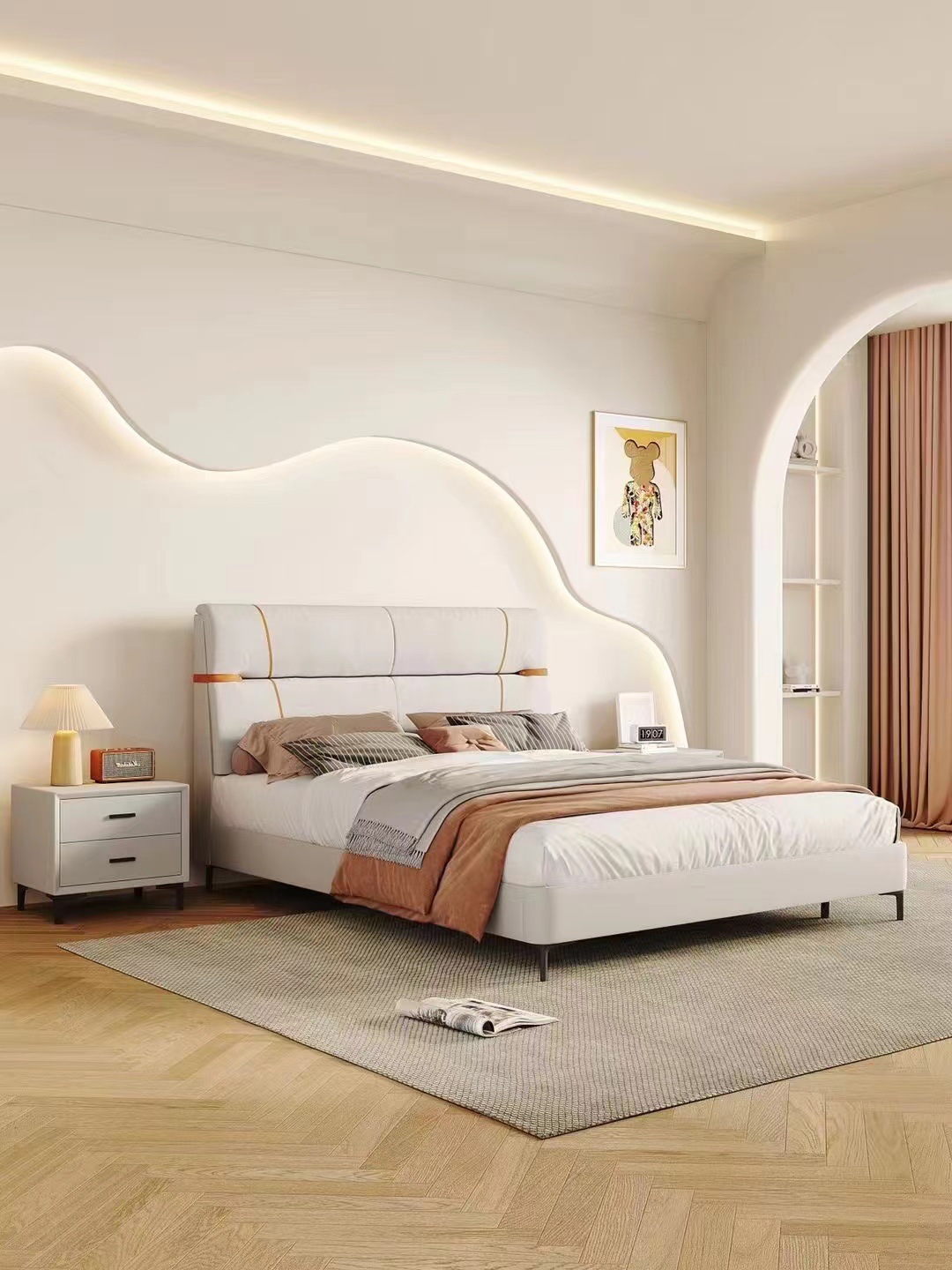 현대적인 미니멀리스트 마스터 침실 웨딩 침대 더블 하이 엔드 분위기 침실 소프트 패키지 미니멀리스트 침대 공주 침대스토어 가기