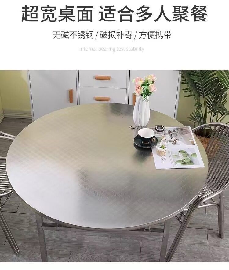 야외 바베큐 연회 홈 식탁 임대 레스토랑 식사 라운드 테이블을위한 두꺼운 스테인레스 스틸 접이식 원형 테이블스토어 가기