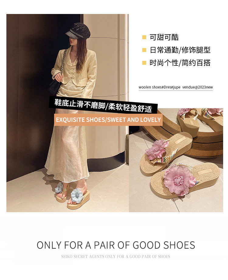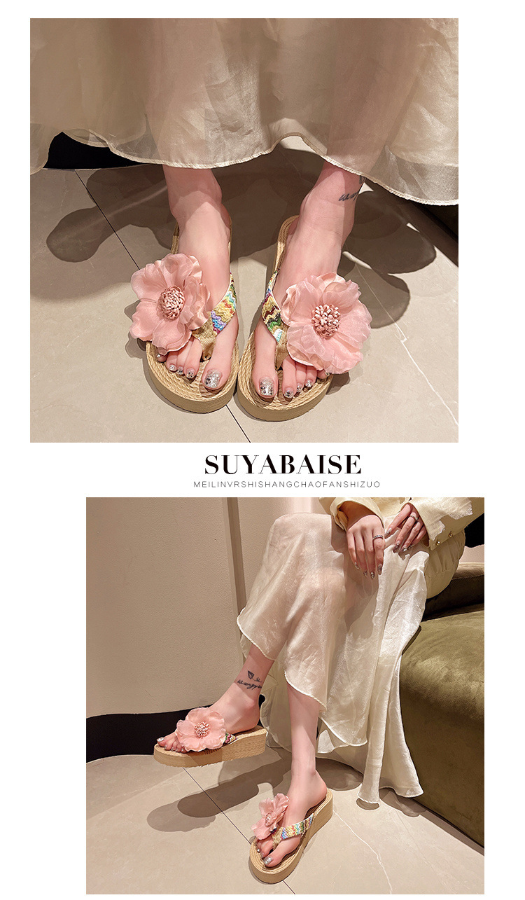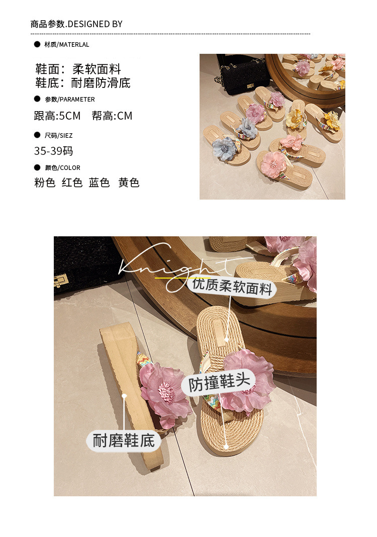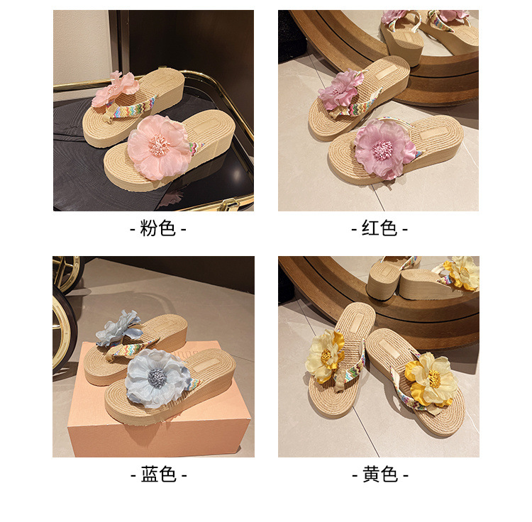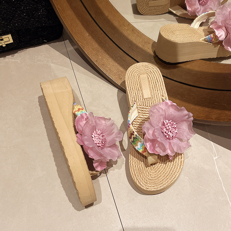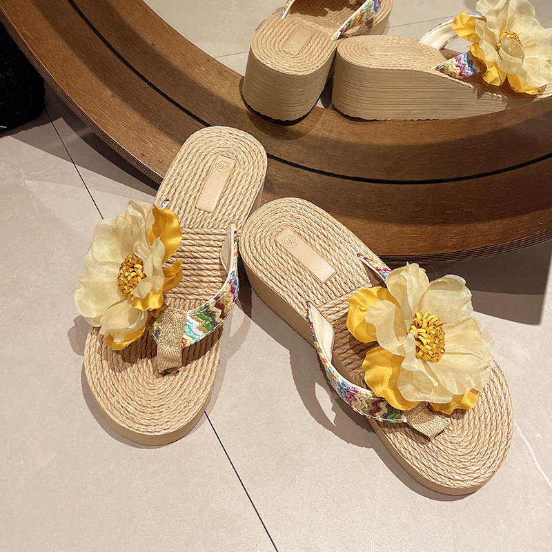 꽃 여름 슬리퍼 패션 Xishuangbanna 두꺼운 밑창 Dai 플립 플롭 비치 신발 미끄럼 방지 휴가 민족 의류