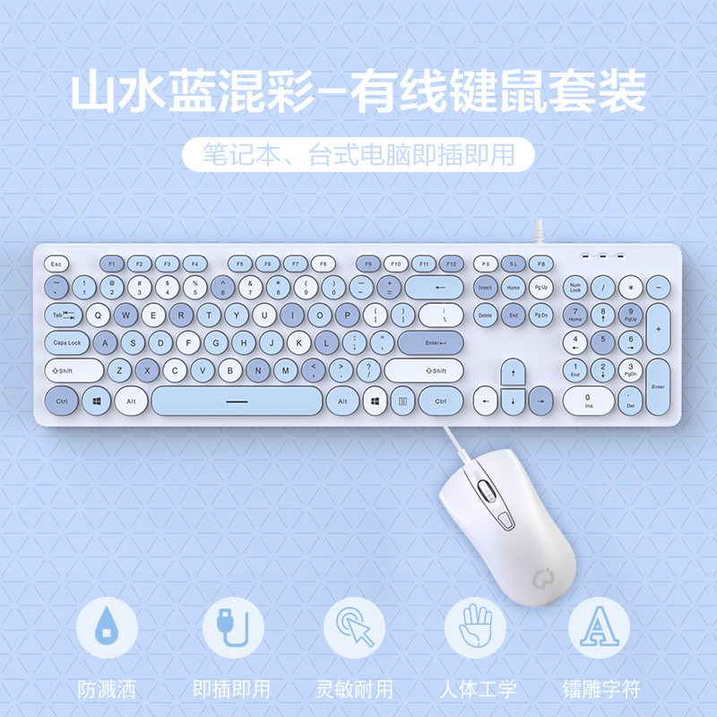 • 익스클루시브 에디션 - 풍경 파란색과 흰색 키보드 + 무음 마우스 [Xiao Qin]이 새로 출시되었습니다
