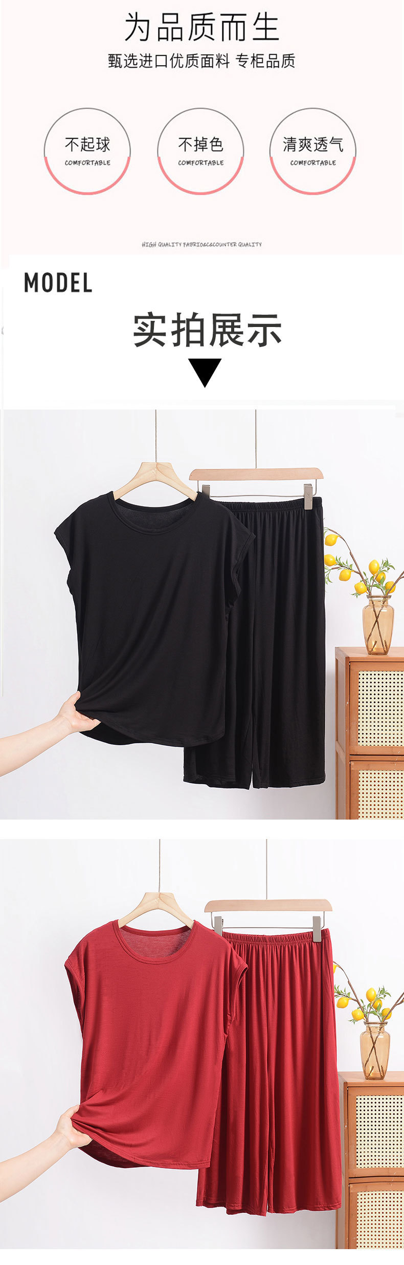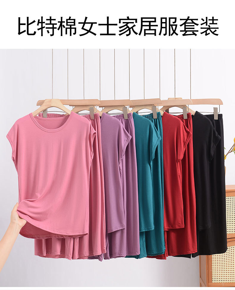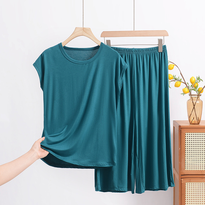 여름 모달 파자마 세트 여성용 얇은 홈 루즈 민소매 티셔츠 플러스 사이즈 탑 7부 반바지 투피스 세트스토어 가기