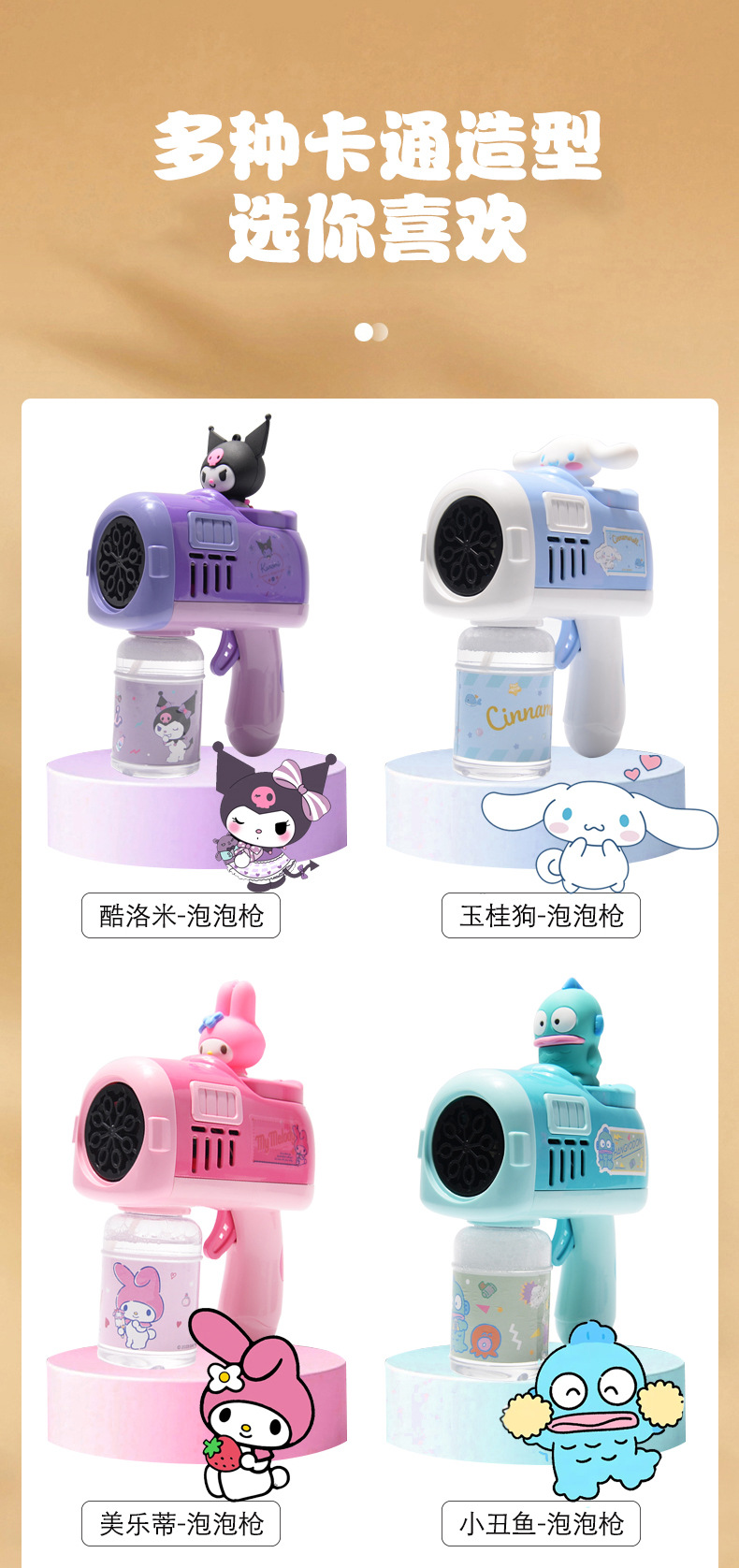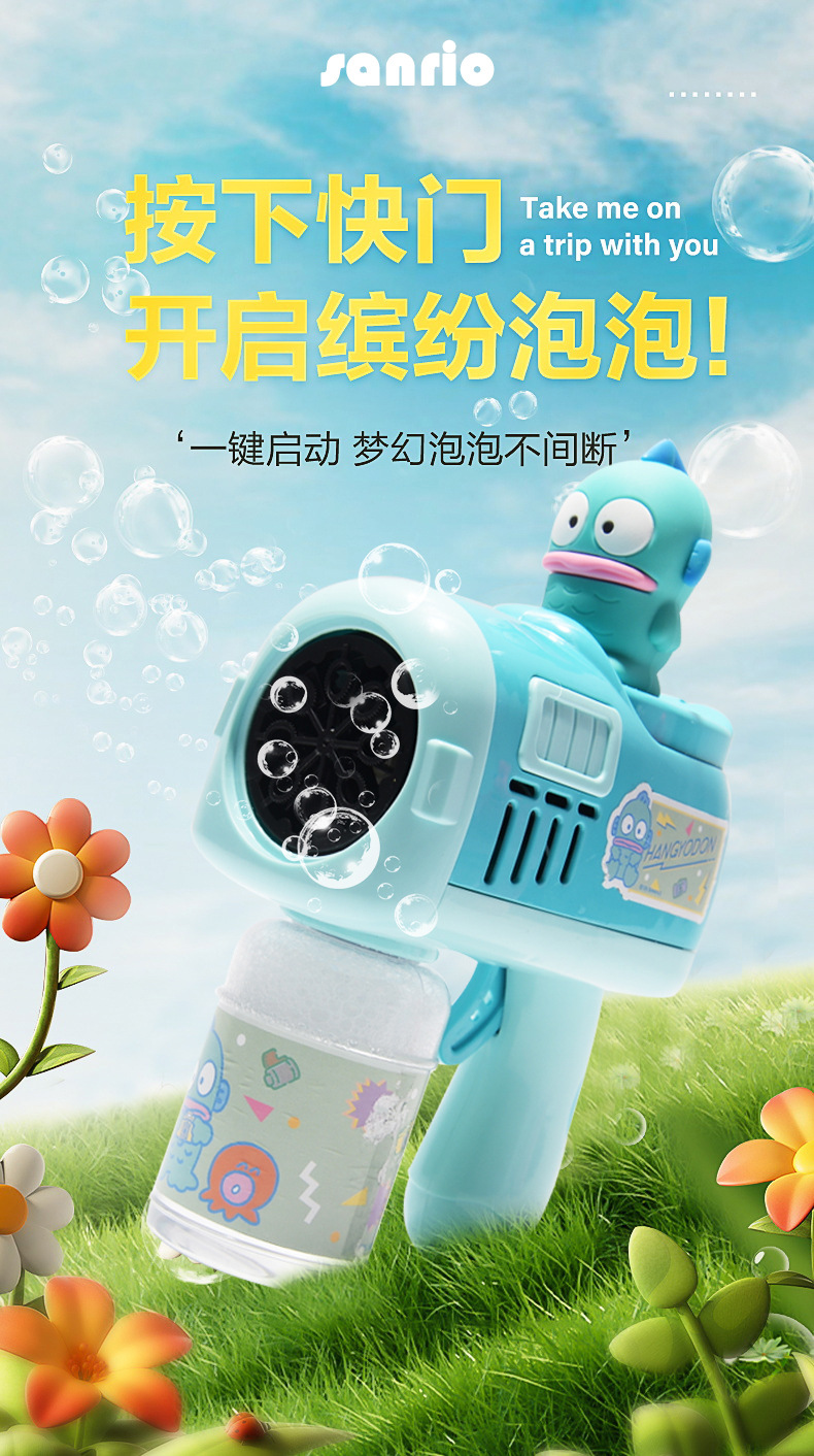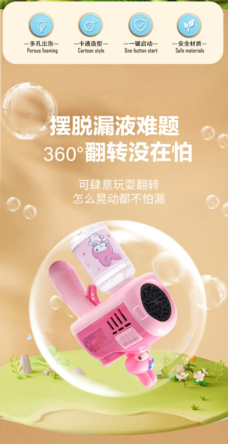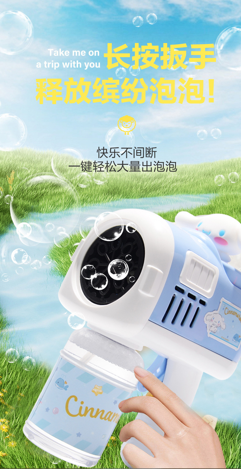 새로운 Sanrio 버블 건 어린이 전기 버블 머신 휴대용 버블 완드 다공성 완전 자동 버블 장난감스토어 가기