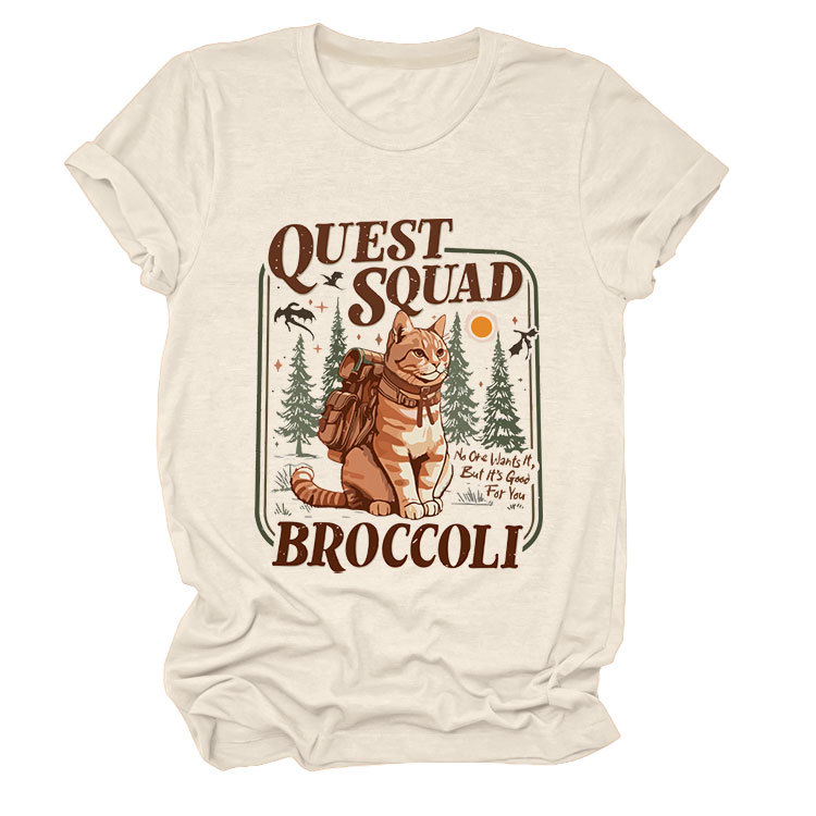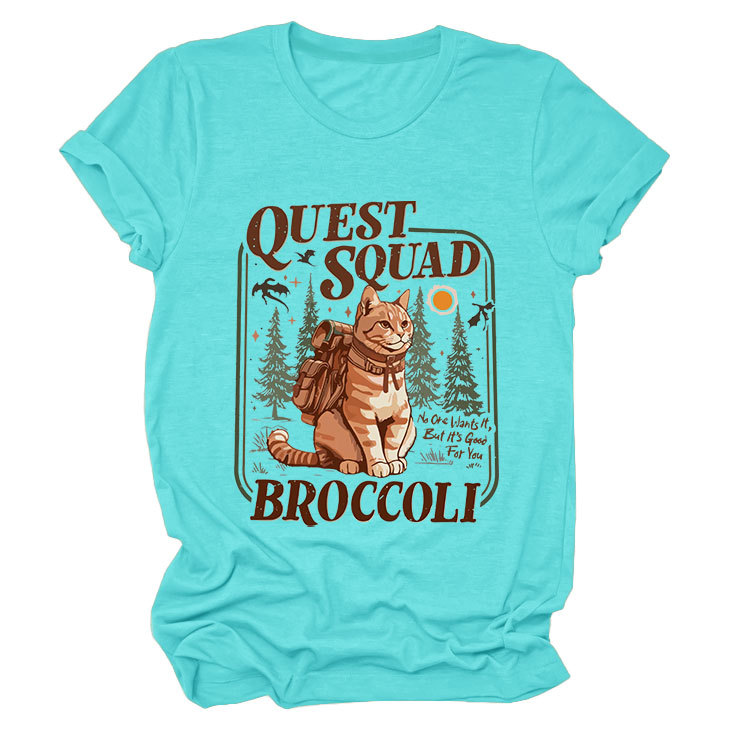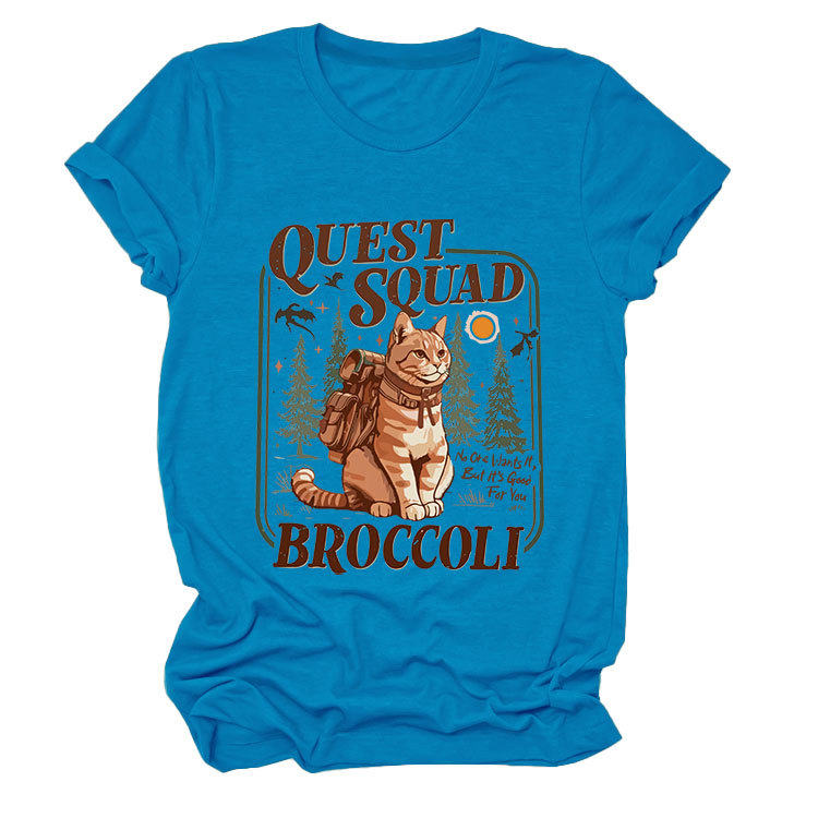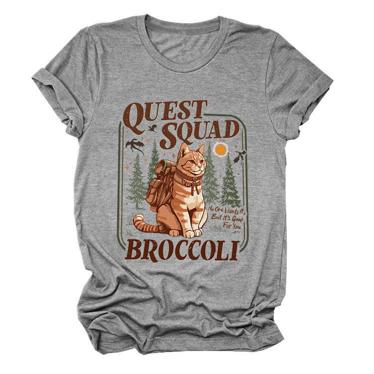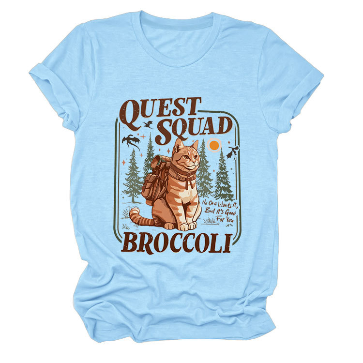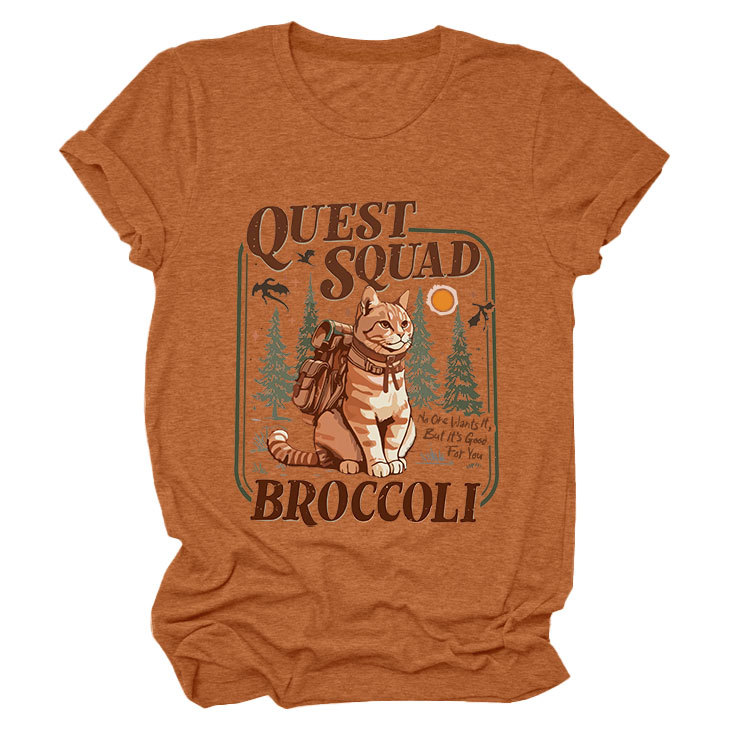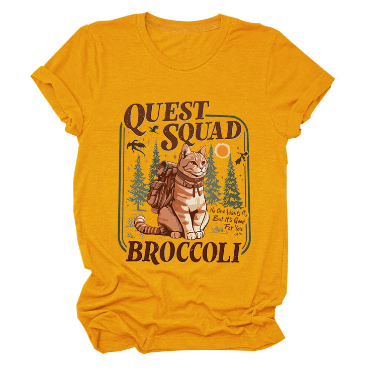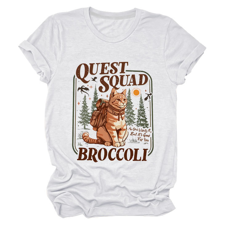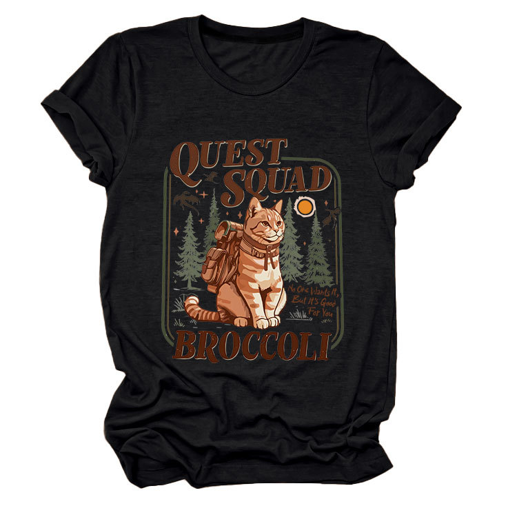 Amazon 여름 이베이 귀엽고 재미있는 새로운 여성용 라운드 넥 퀘스트 스쿼드 새끼 고양이 프린트 반팔 티셔츠스토어 가기