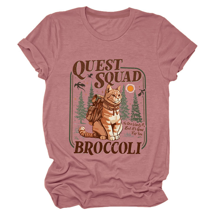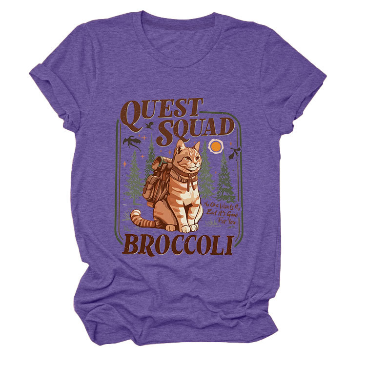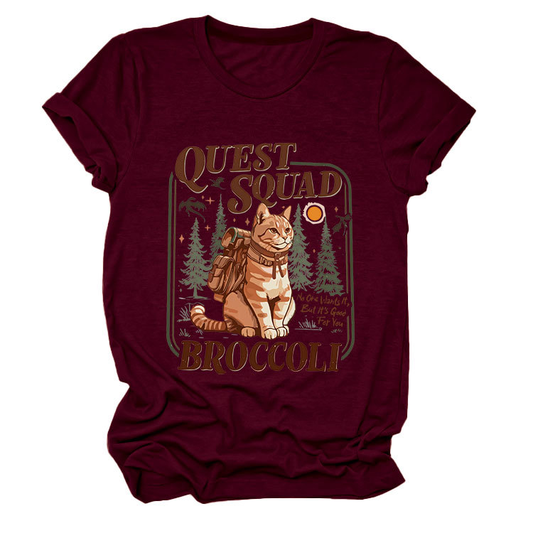 Amazon 여름 이베이 귀엽고 재미있는 새로운 여성용 라운드 넥 퀘스트 스쿼드 새끼 고양이 프린트 반팔 티셔츠