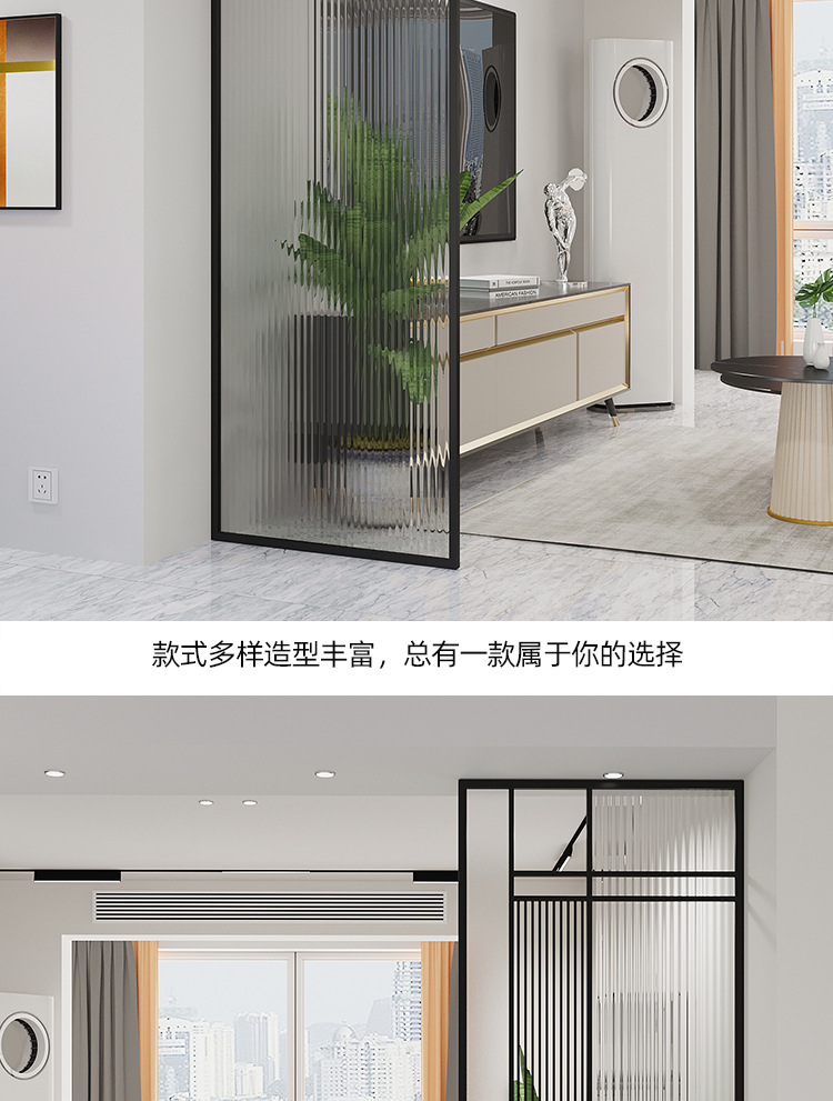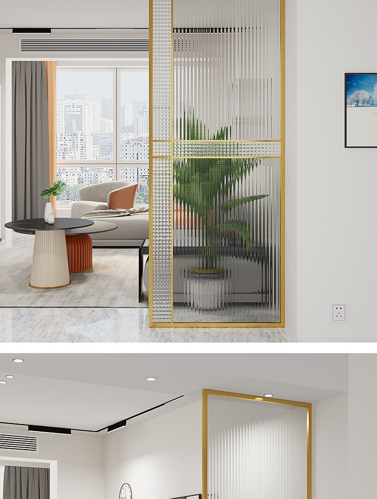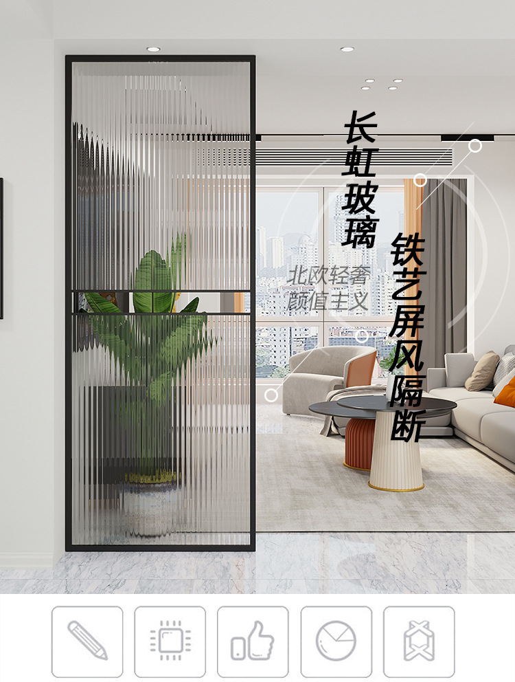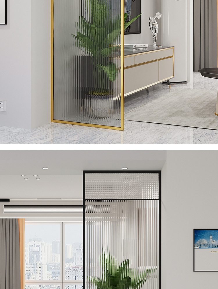 가볍고 고급스러운 현대적인 Changhong 유리 스크린 간단한 게스트 레스토랑 스테인레스 스틸 파티션 유리 파티션 입구 현관 차단스토어 가기