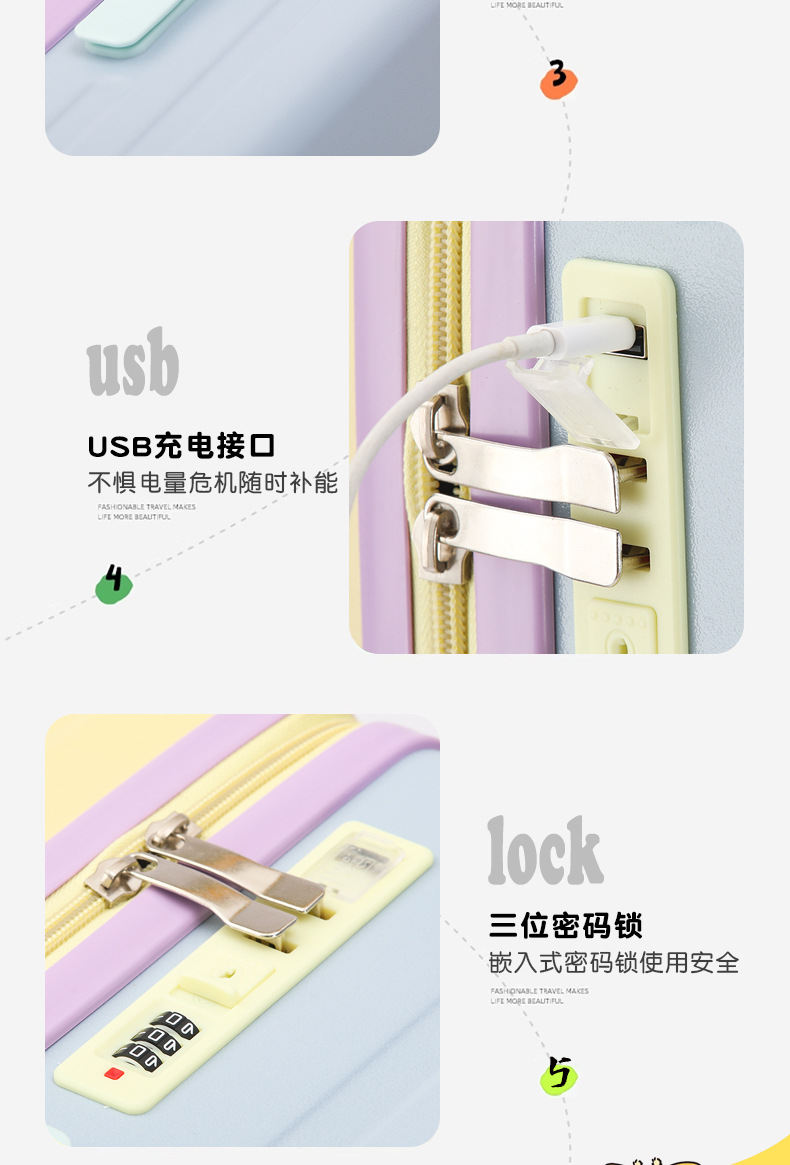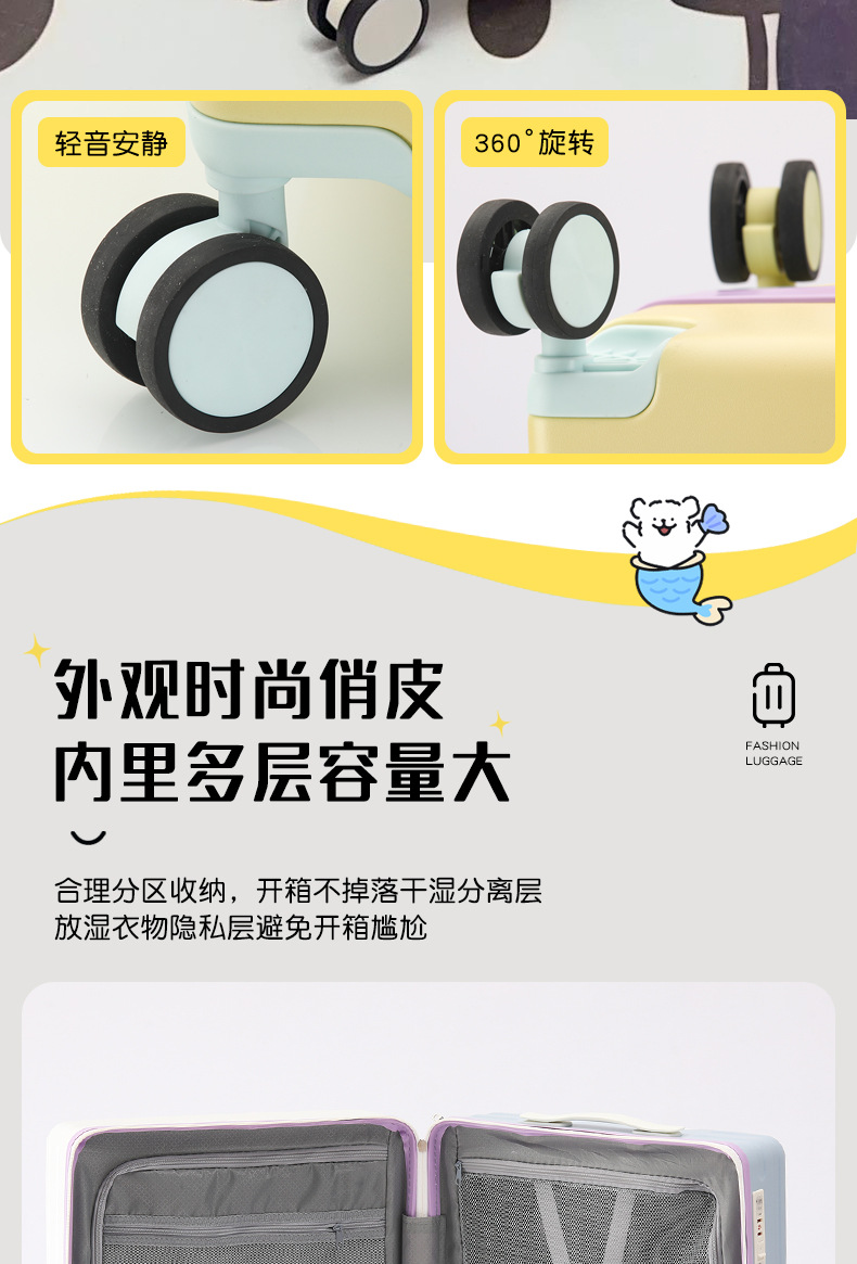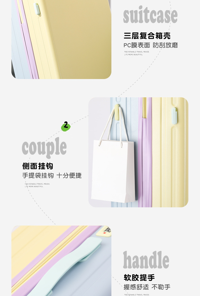 대비 색상 귀여운 도파민 가방 트롤리 케이스 여성 20inch 소형 탑승 케이스 만화 비밀번호 여행 가방 24