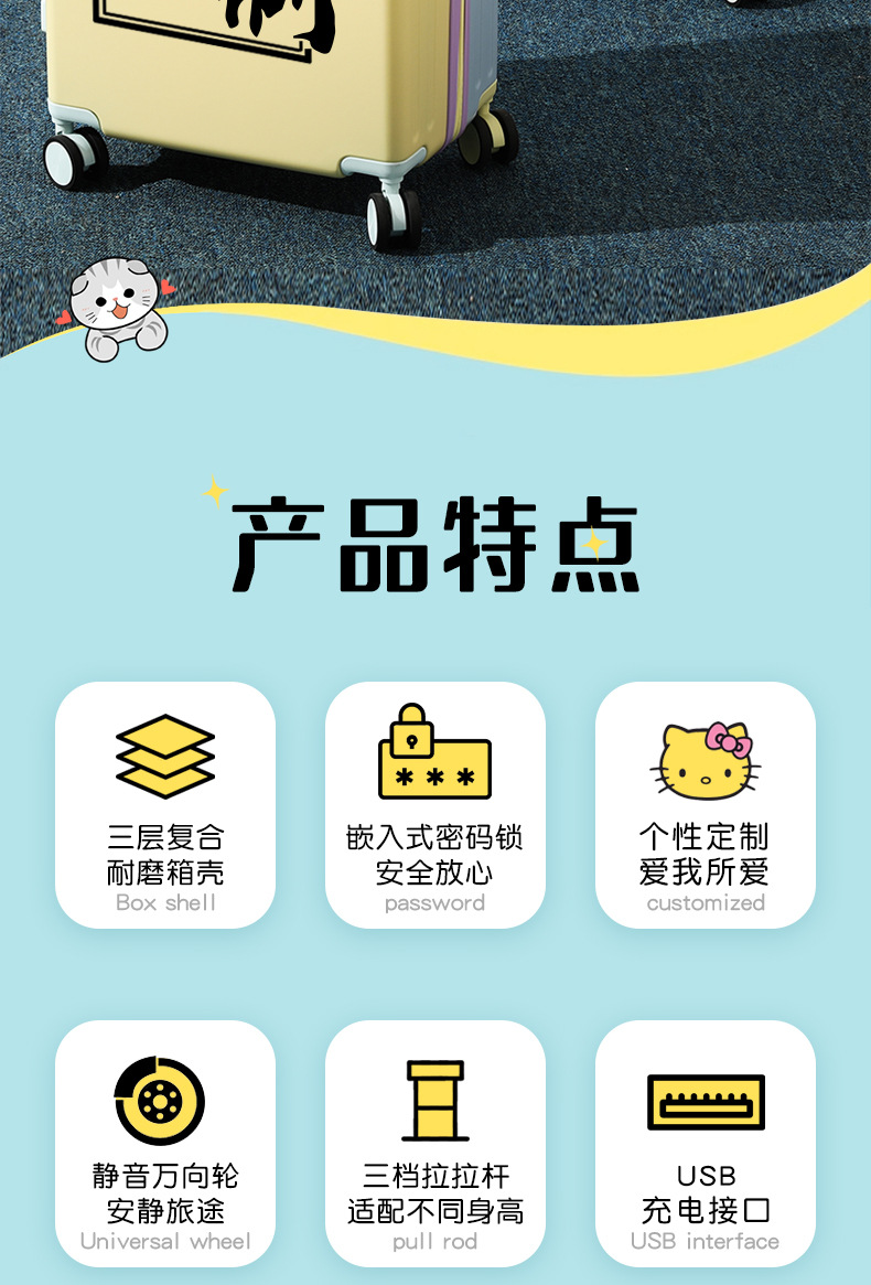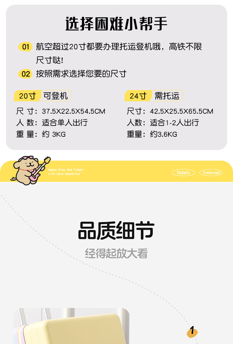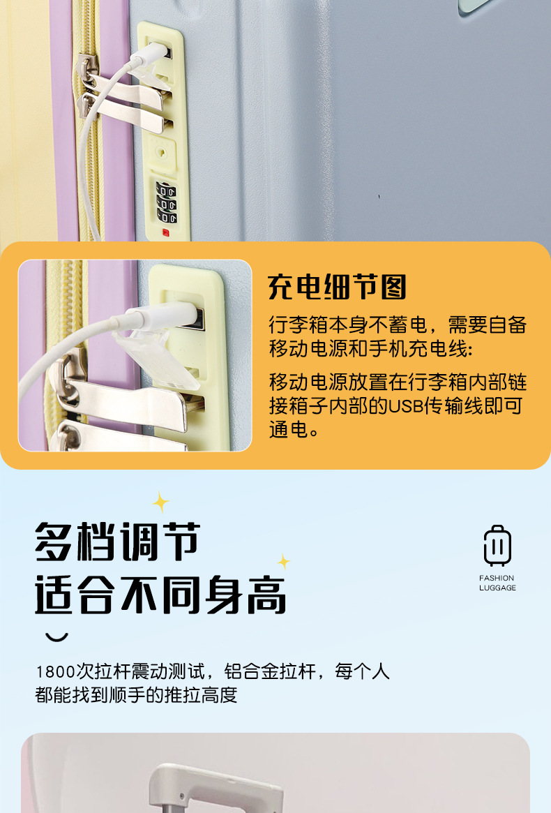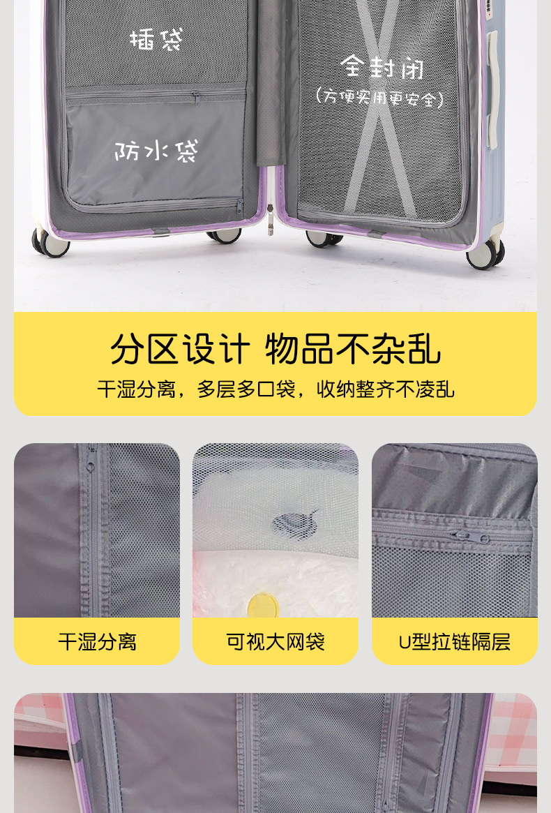 대비 색상 귀여운 도파민 가방 트롤리 케이스 여성 20inch 소형 탑승 케이스 만화 비밀번호 여행 가방 24