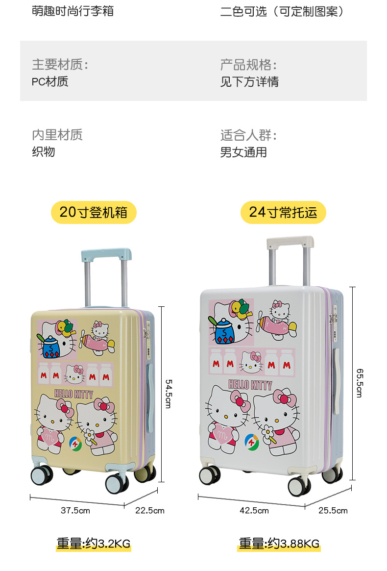 대비 색상 귀여운 도파민 가방 트롤리 케이스 여성 20inch 소형 탑승 케이스 만화 비밀번호 여행 가방 24스토어 가기