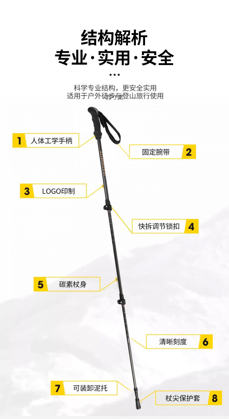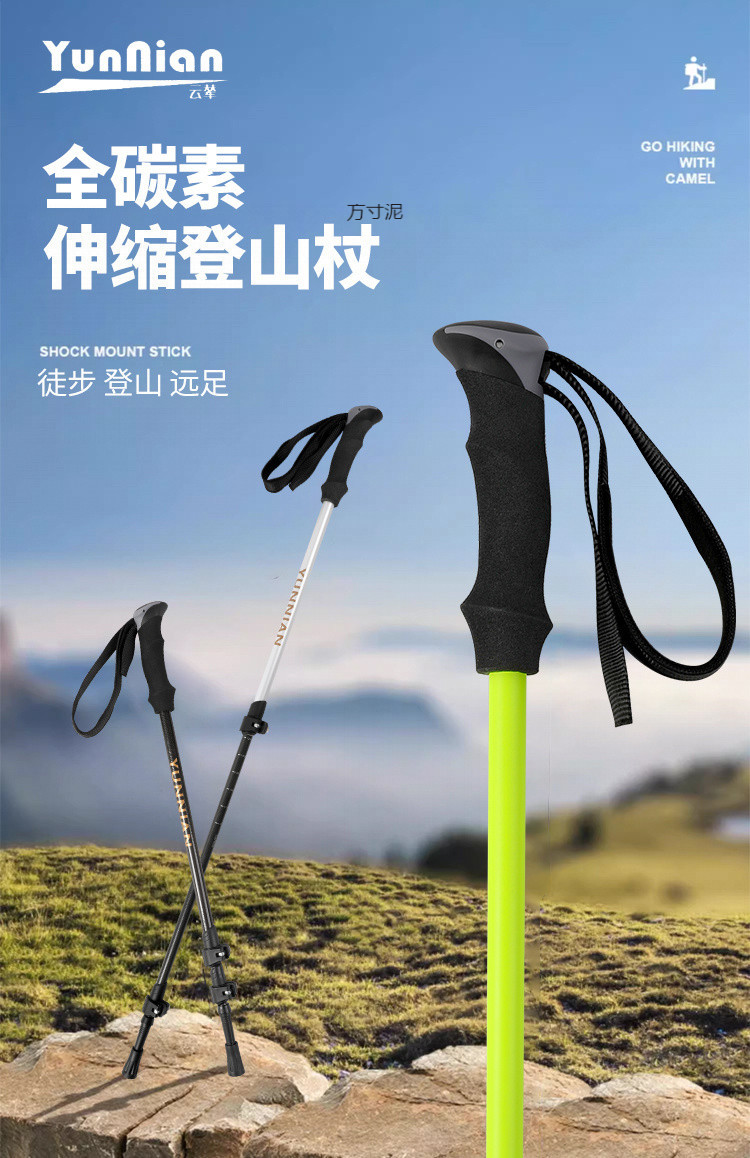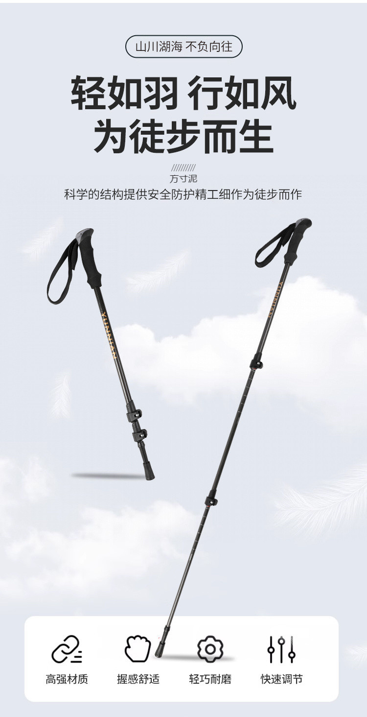 탄소섬유 야외 등산 스틱 3단 외부 잠금식 텔레스코픽 등산 스틱 탄소섬유 지팡이 초경량 공장 직판 도매스토어 가기