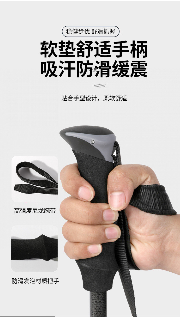 탄소섬유 야외 등산 스틱 3단 외부 잠금식 텔레스코픽 등산 스틱 탄소섬유 지팡이 초경량 공장 직판 도매
