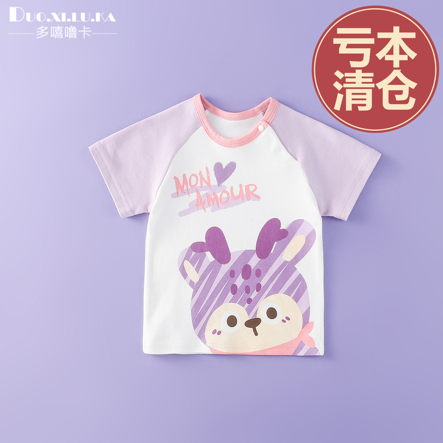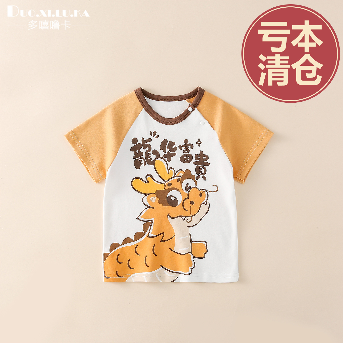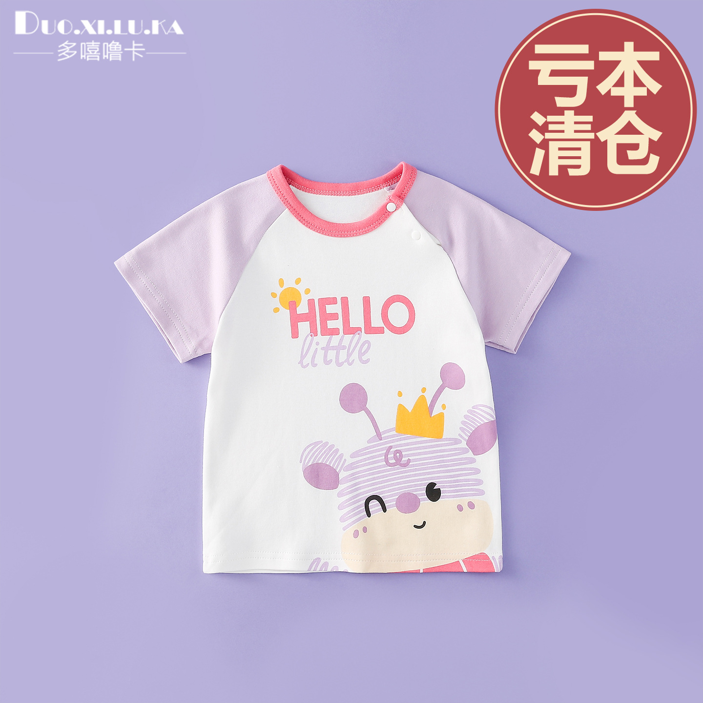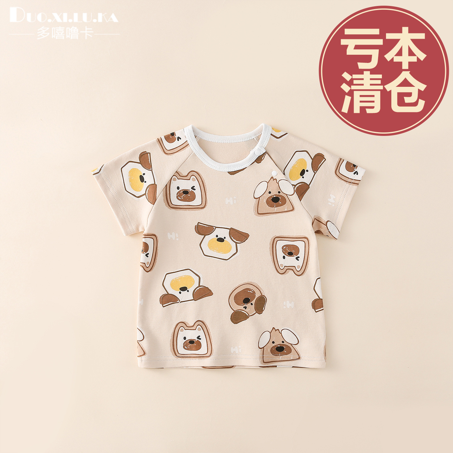 [특별 재고 정리] 아동용 여름 티셔츠, 남아용 가볍고 통기성이 뛰어난 반팔 상의, 여아용 여름 만화 잠옷스토어 가기