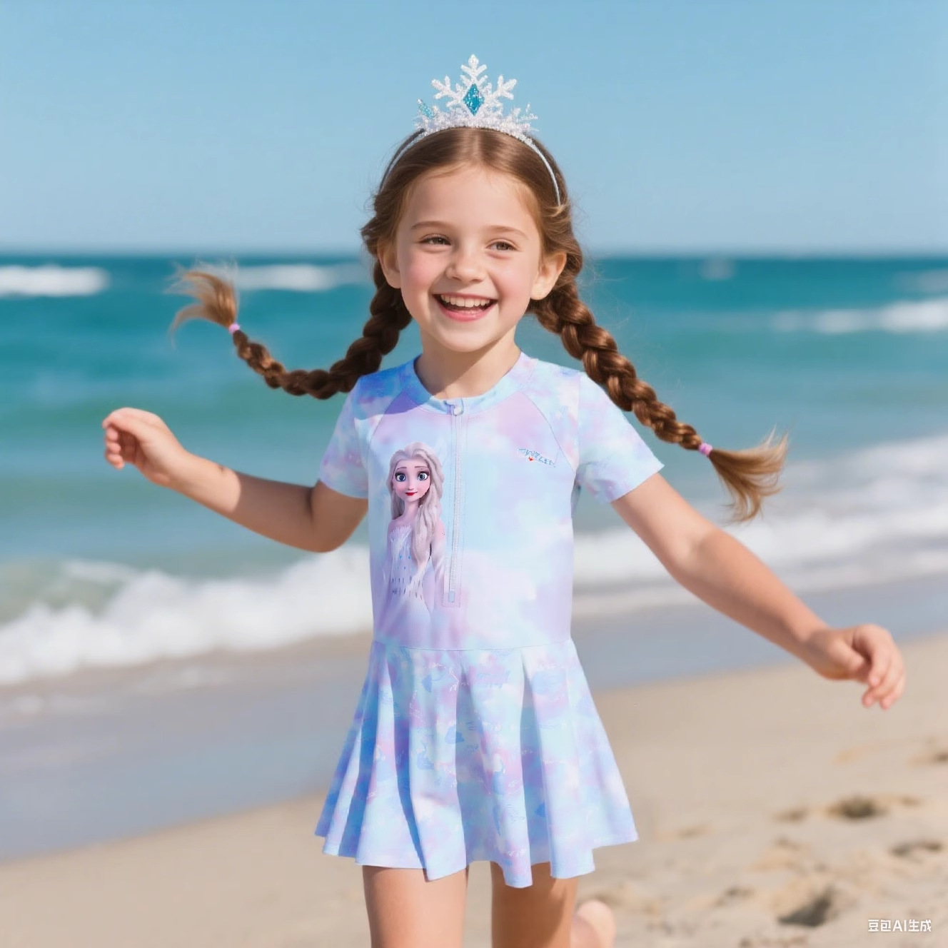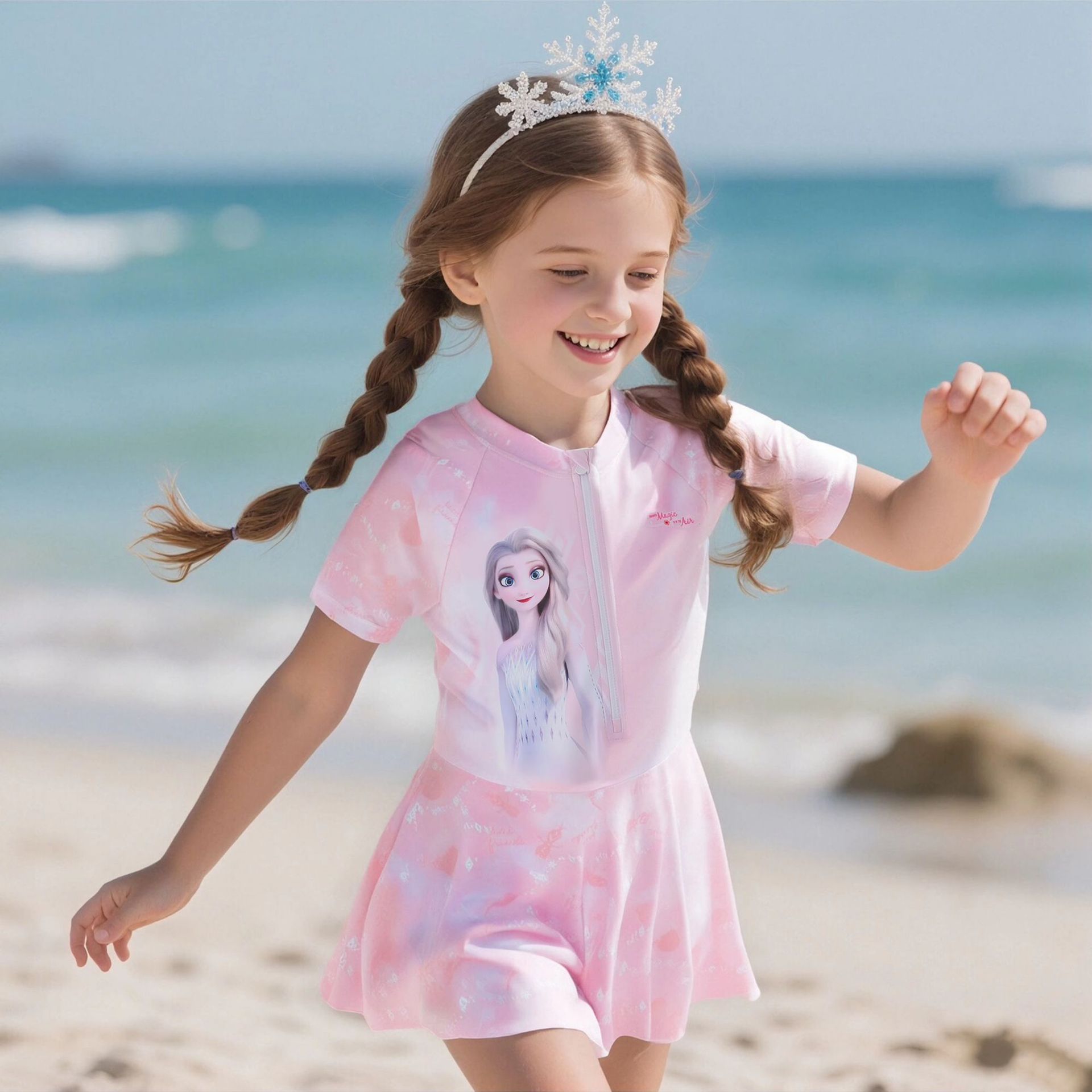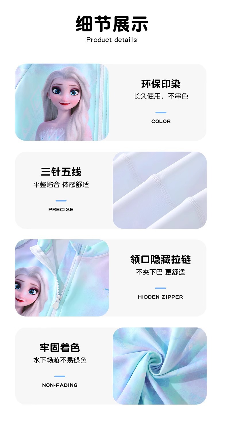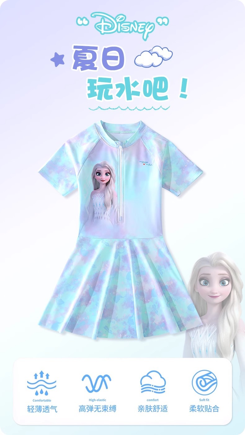 디즈니 어린이 수영복 소녀 2025 새로운 원피스 만화 공주 스커트 스타일 중대형 어린이 해변 자외선 차단 수영