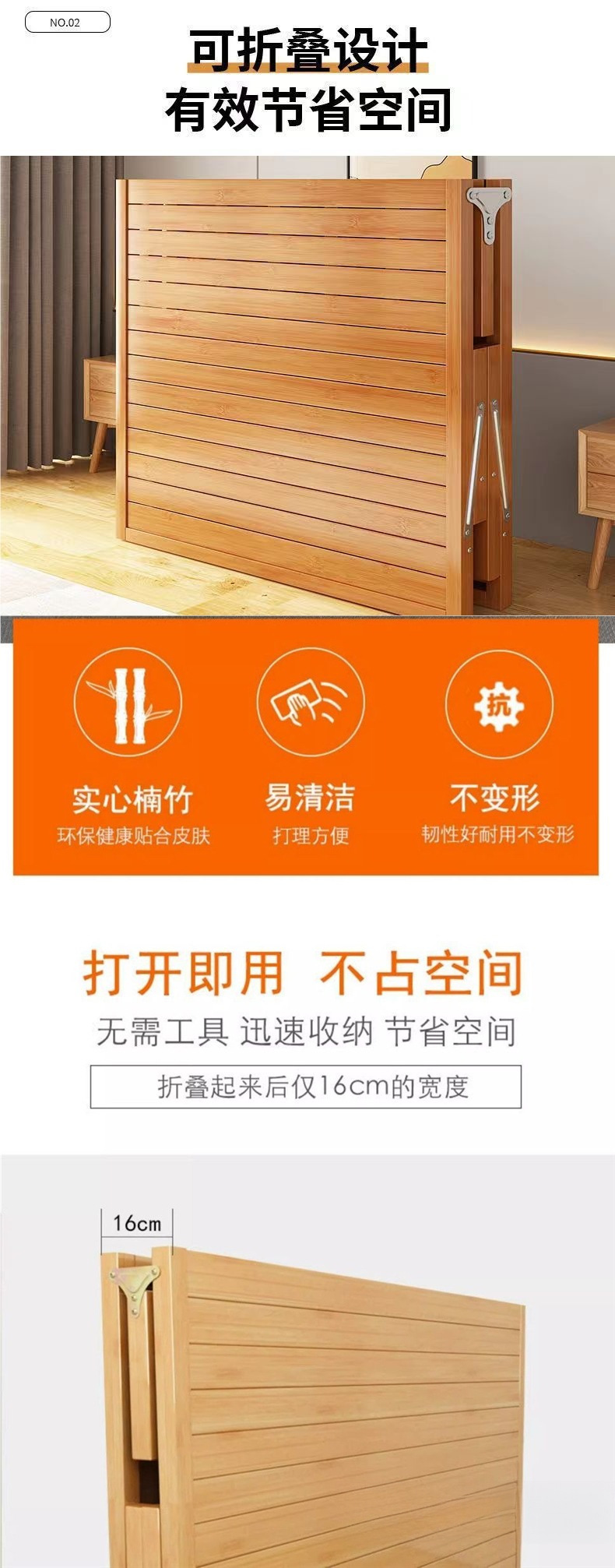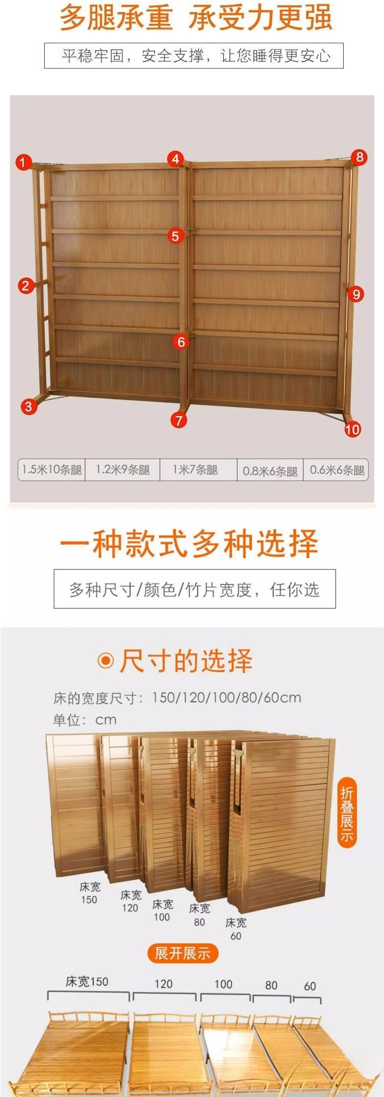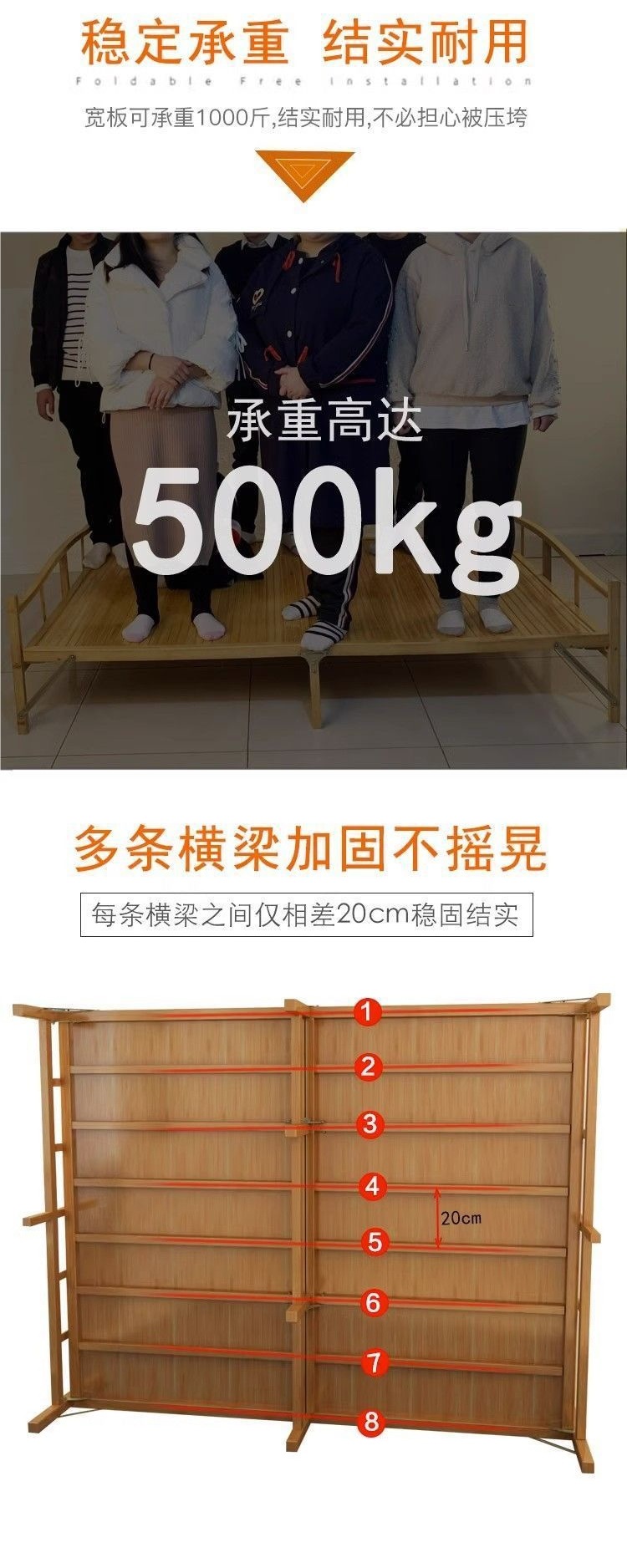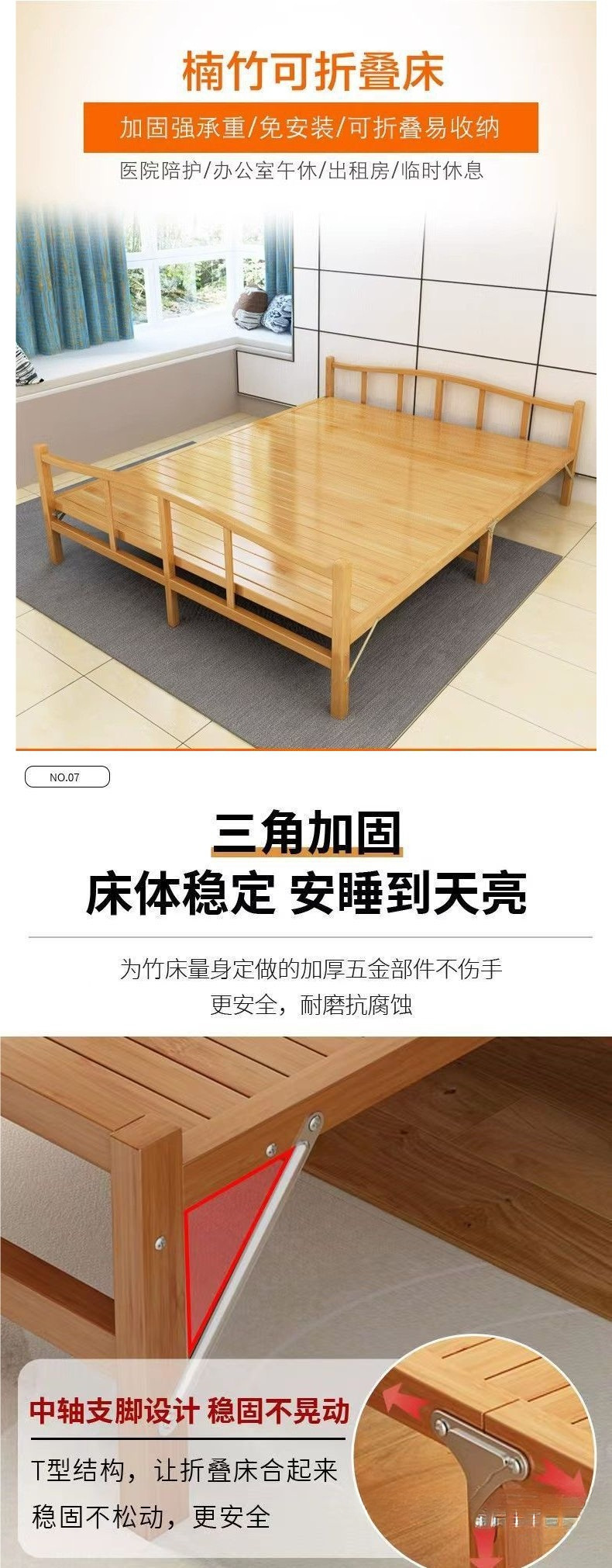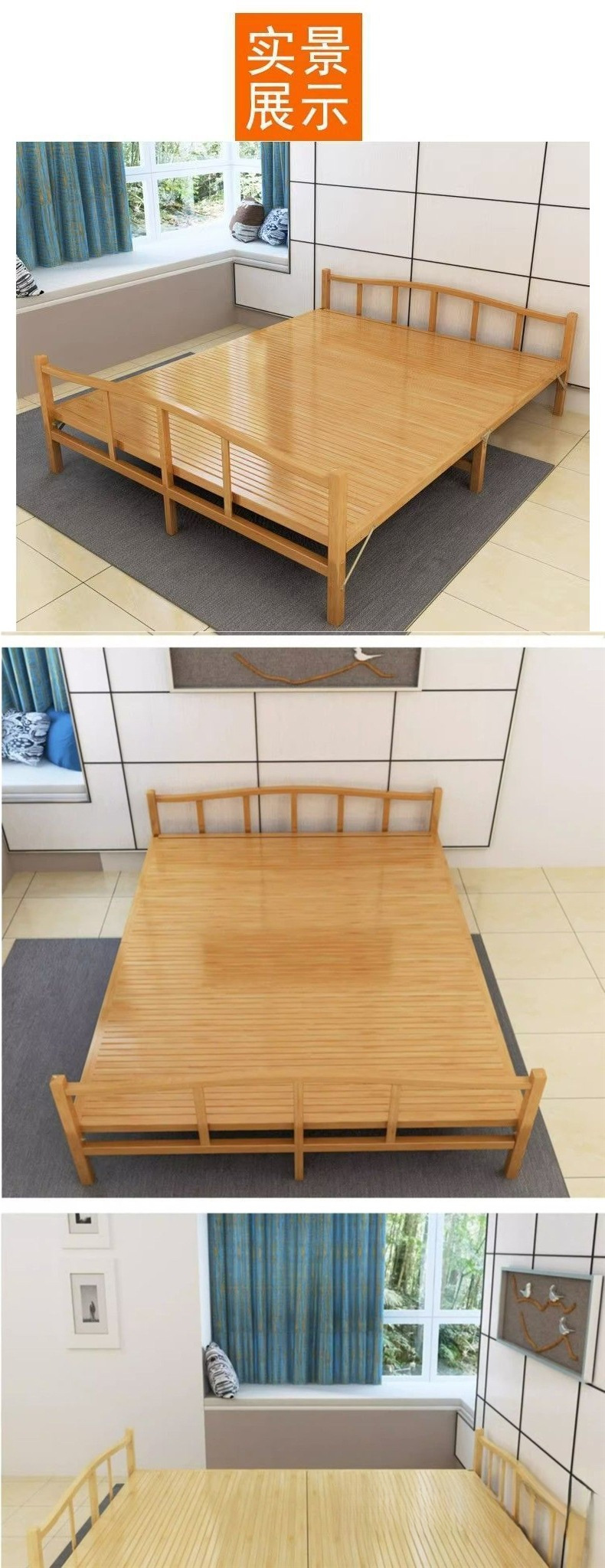 가정용 사무실 점심 시간 및 낮잠을 위한 1인용 접이식 대나무 침대 간단한 더블 임대실 대나무 강화판 침대스토어 가기