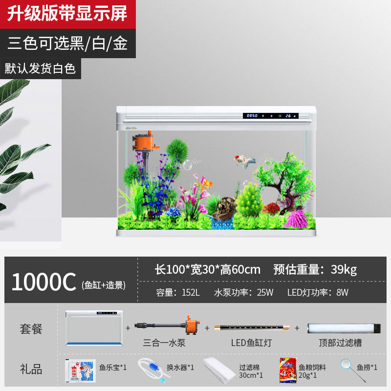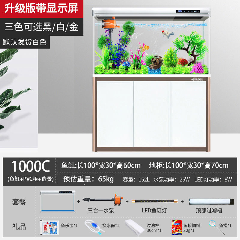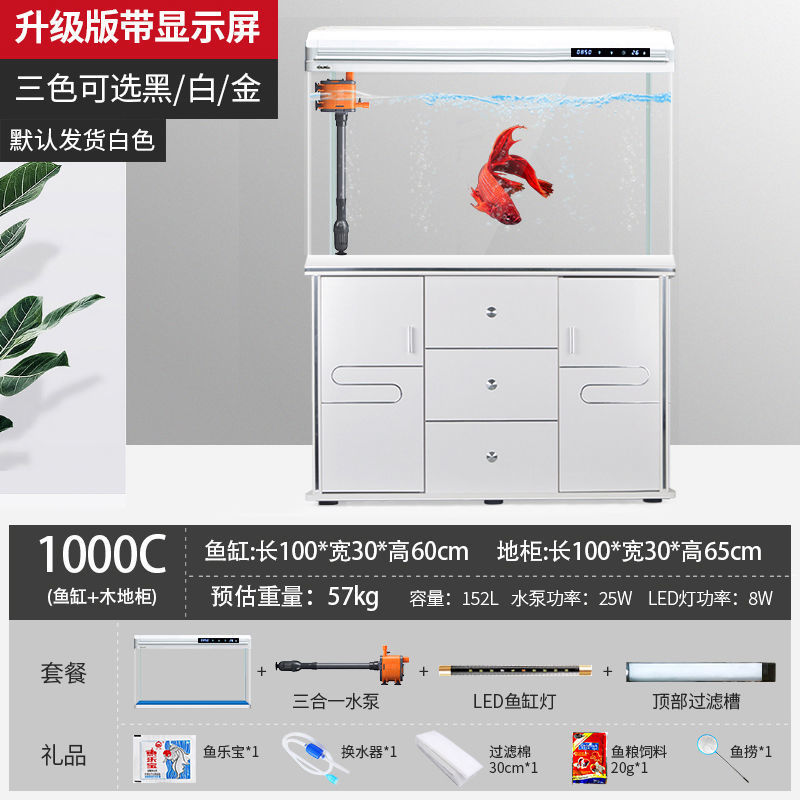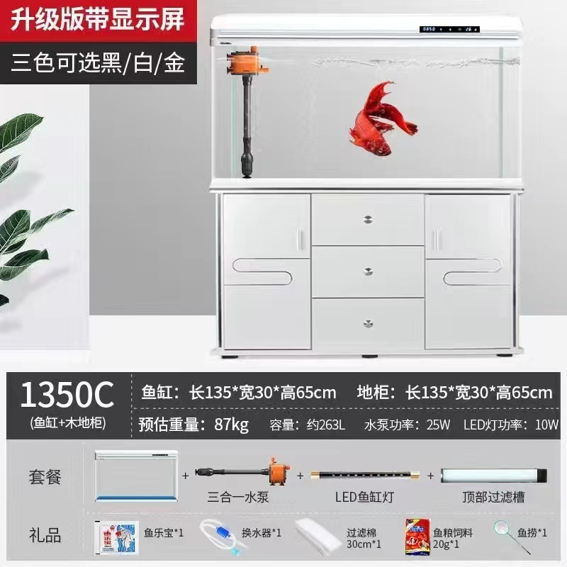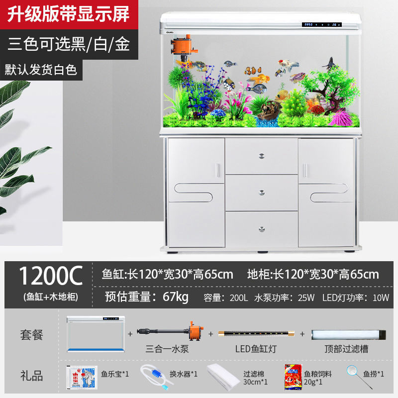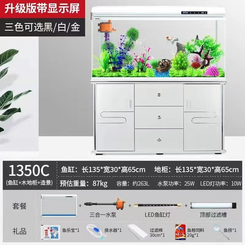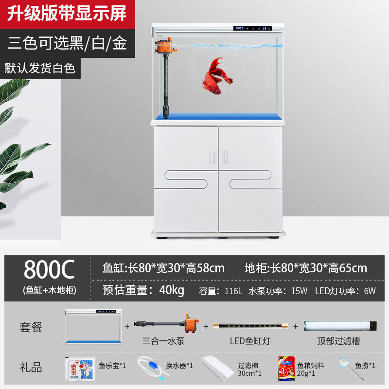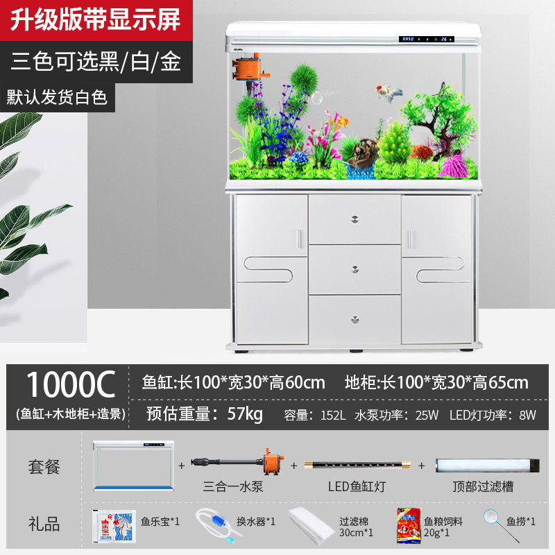 물고기 탱크 수족관 중소형 거실 물 교체 없음 게으른 가정용 생태 대형 바닥에서 천장까지 금색 유리 캐비닛 제조업체스토어 가기