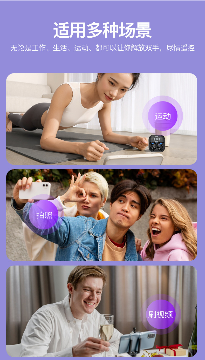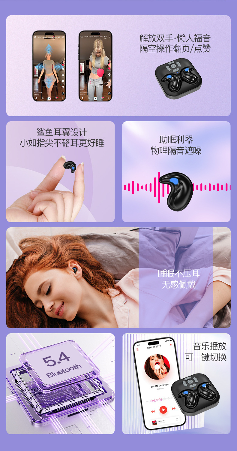 새로운 무선 스포츠 이어폰, 긴 배터리 수명, 휴대폰 원격 제어, 틱톡 좋아요 도구, 수면용 블루투스 이어폰, 실리콘 스트랩