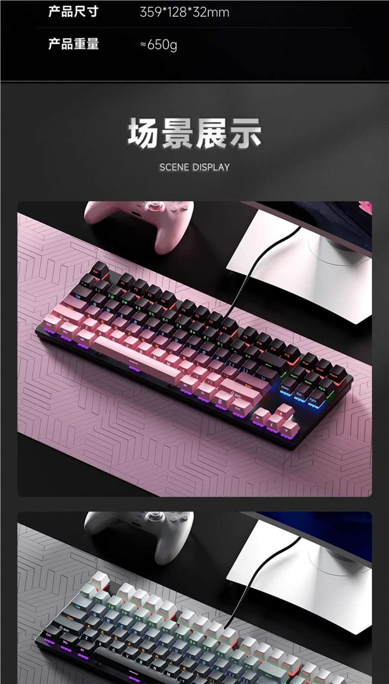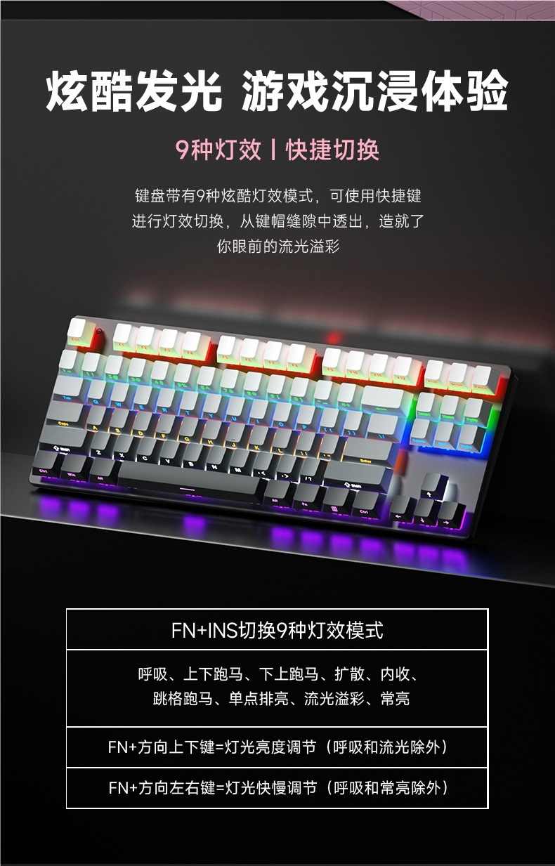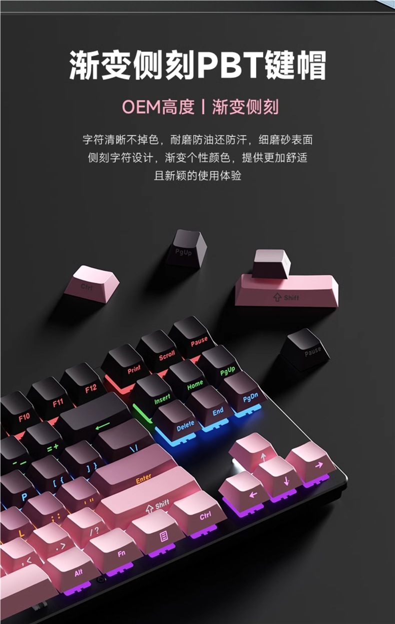 Fenglingdu 87 키 기계식 키보드 유선 녹색 및 홍차 축 컴퓨터 데스크탑 오피스 게임 e-스포츠 그라디언트 측면 각인스토어 가기
