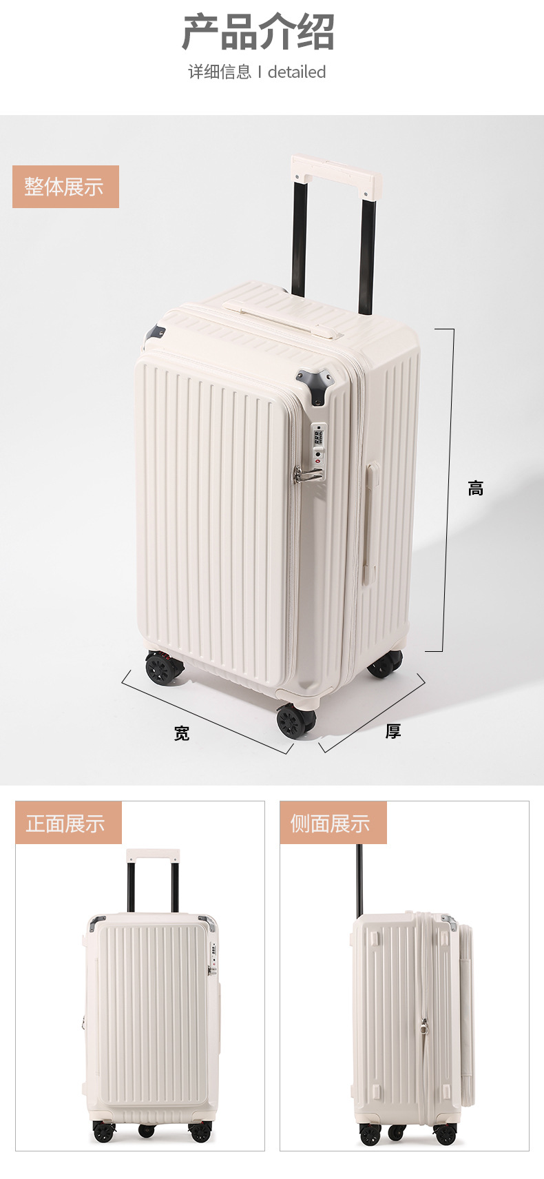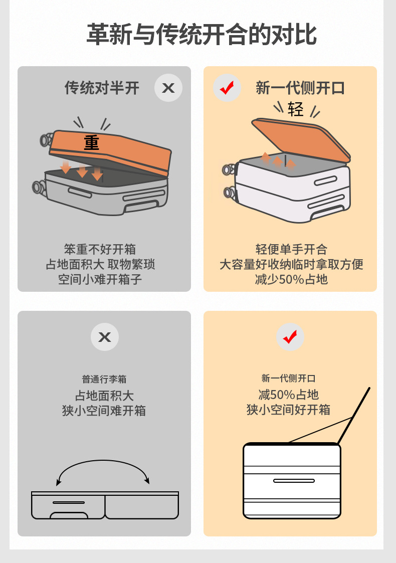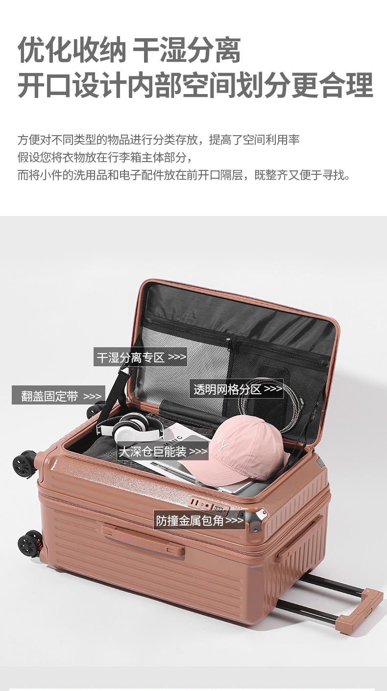 사이드 오픈형 여행가방 여성용 대용량 확장형 두꺼운 5륜 트롤리 가방 비밀번호 학생 여행가방 남성용 가죽 가방스토어 가기