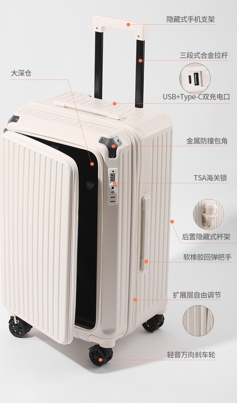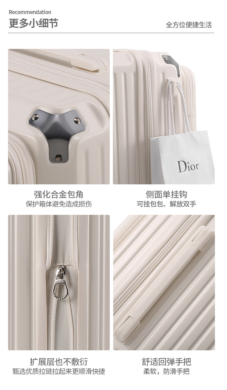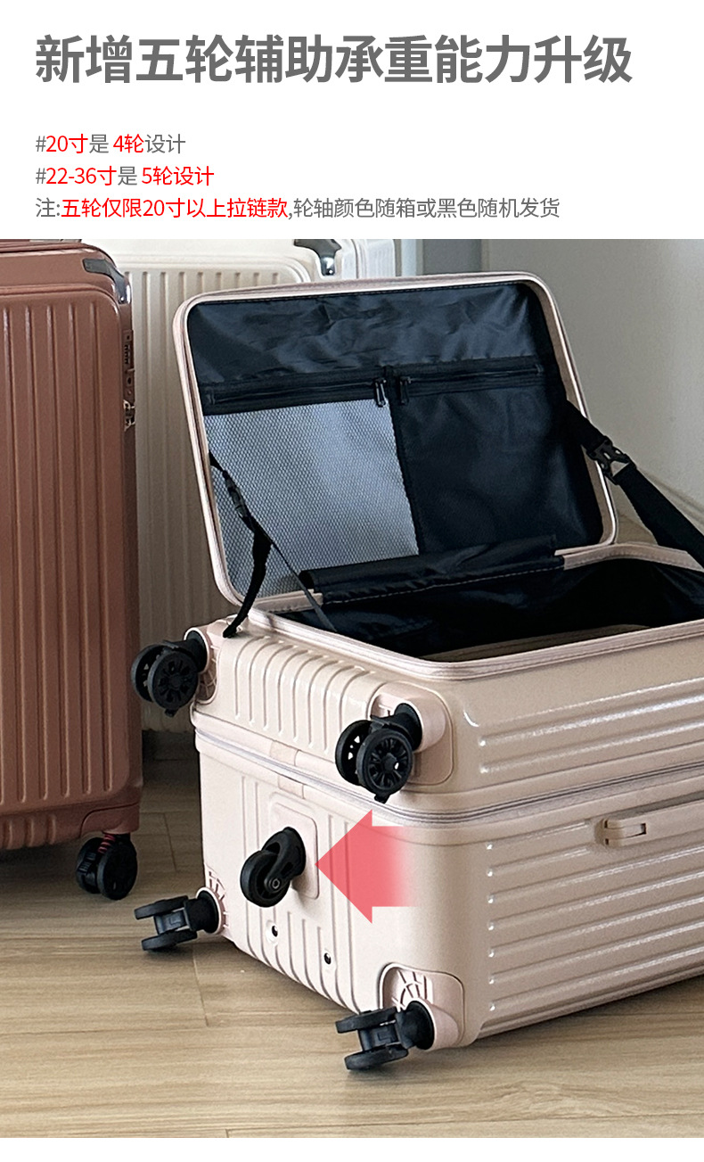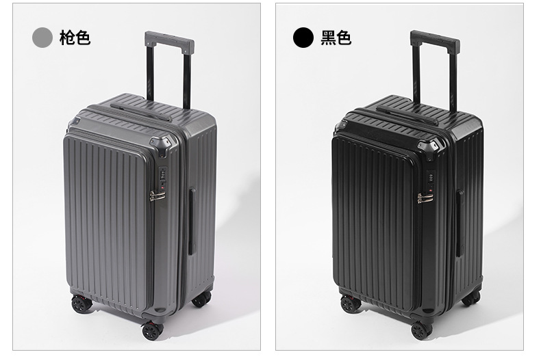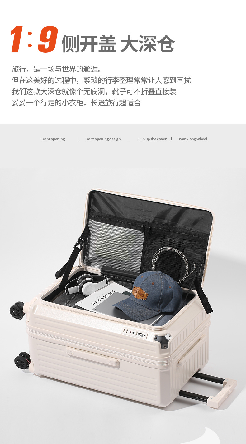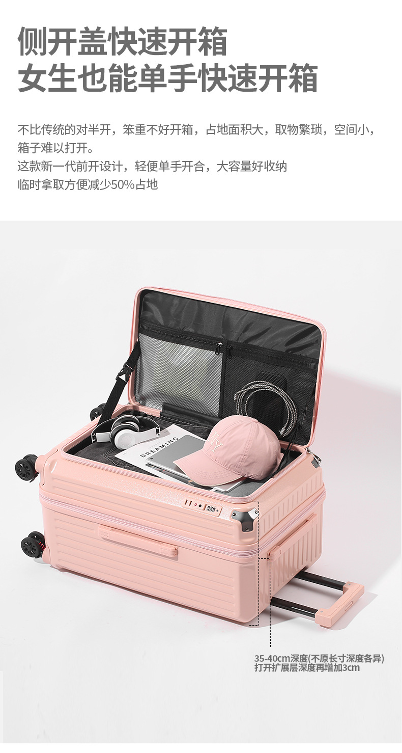 사이드 오픈형 여행가방 여성용 대용량 확장형 두꺼운 5륜 트롤리 가방 비밀번호 학생 여행가방 남성용 가죽 가방