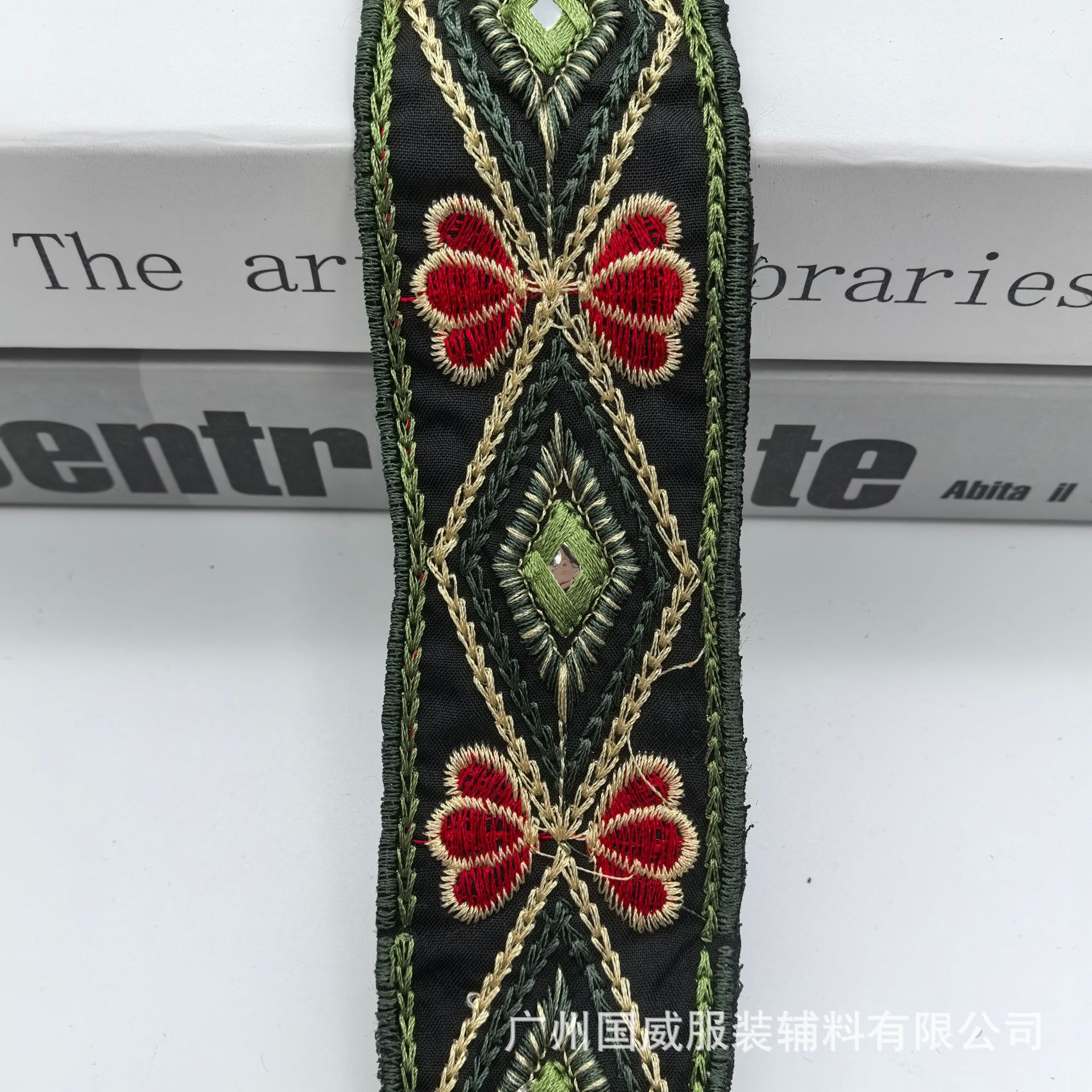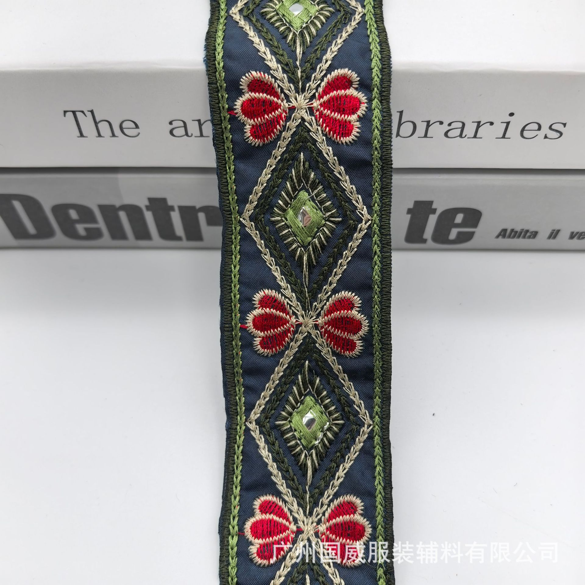 새로운 4.5CM 폭 민족 스타일 수 놓은 레이스 바코드 마름모 렌즈 수 놓은 의류 액세서리 리본 액세서리