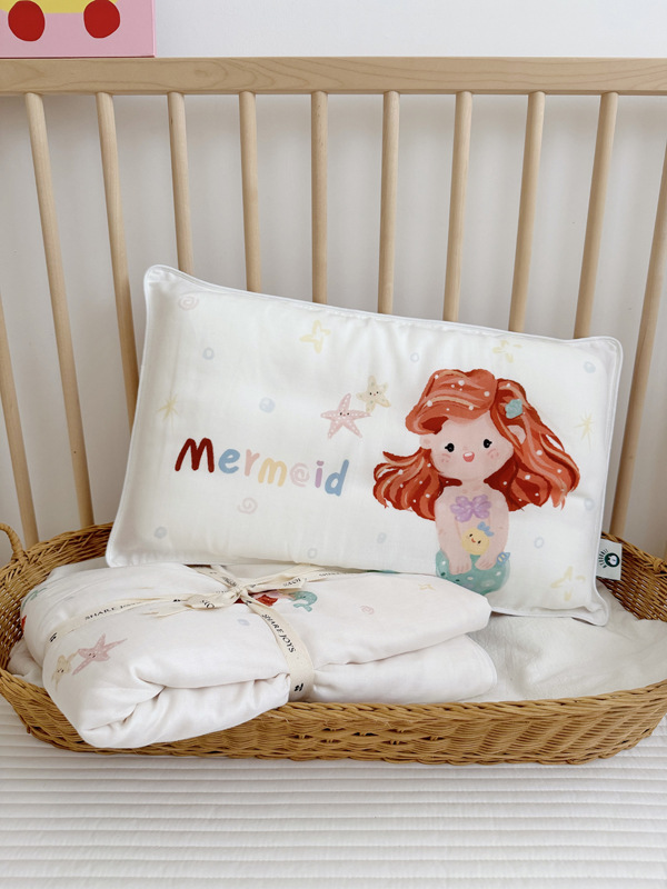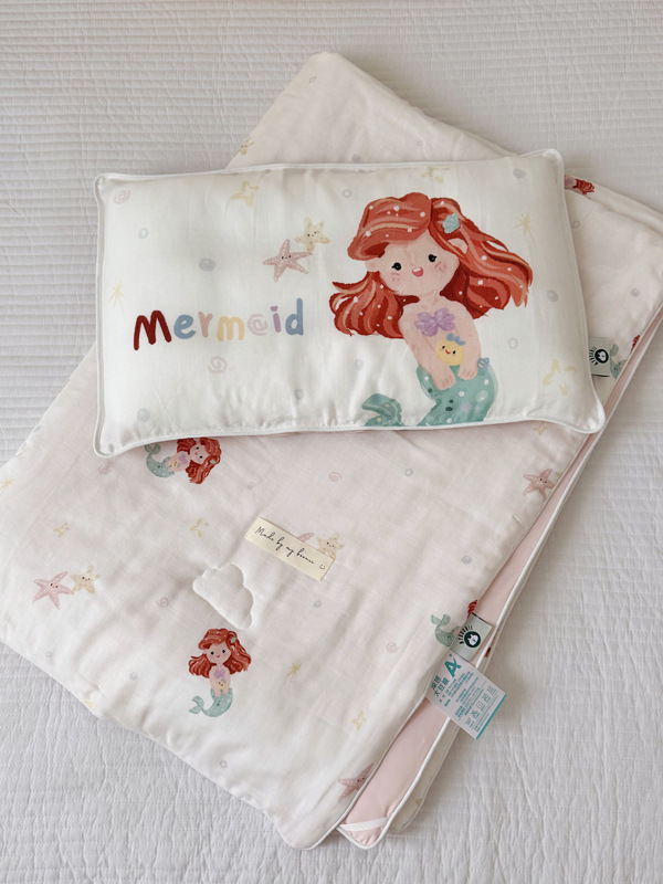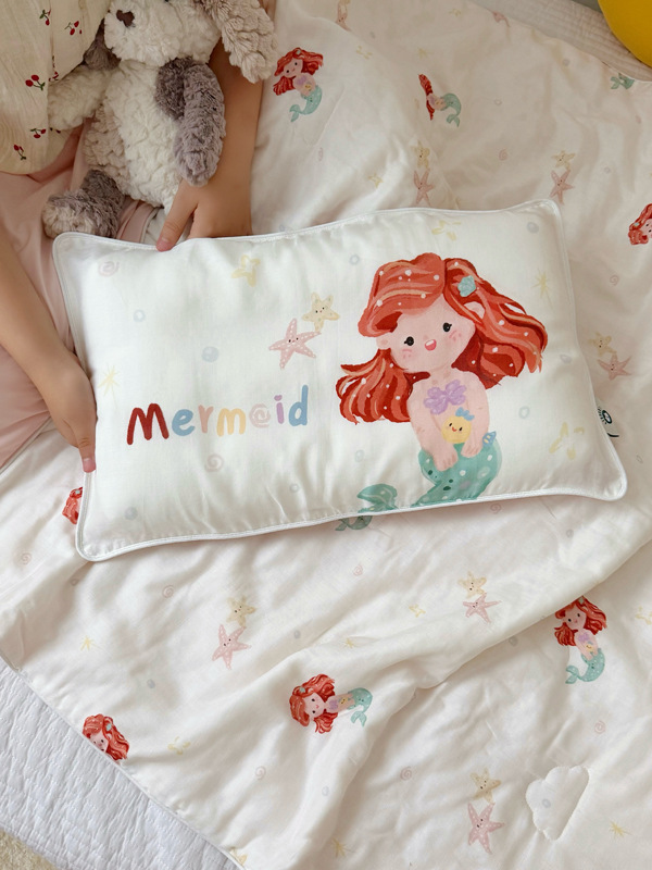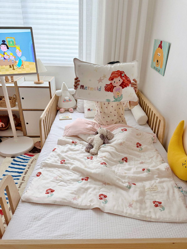 귀여운 인어 어린이 더블 레이어 거즈 여름 이불 기계 세탁 가능 시원한 느낌 아기 유치원 작은 얼음 피부 에어컨 이불스토어 가기