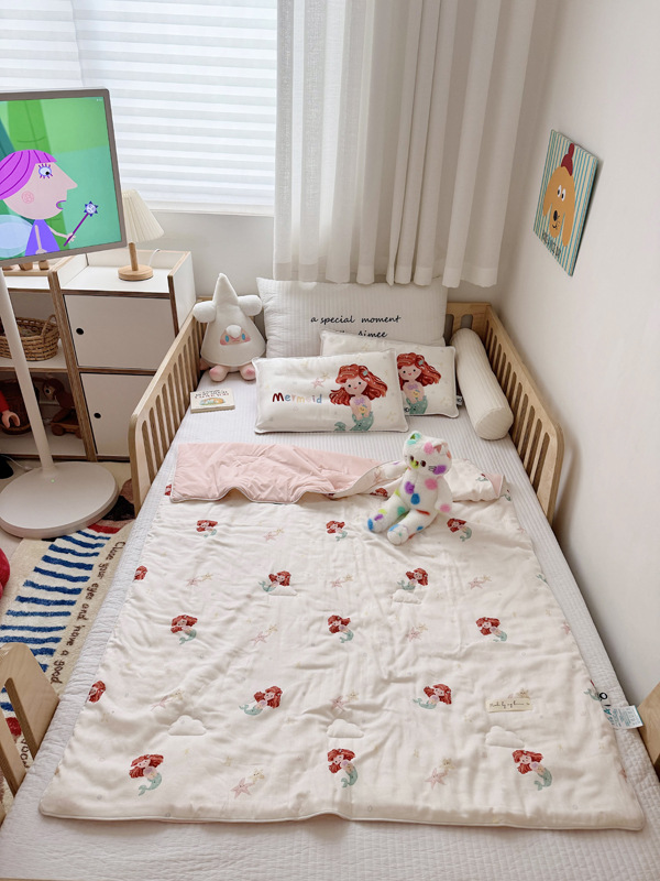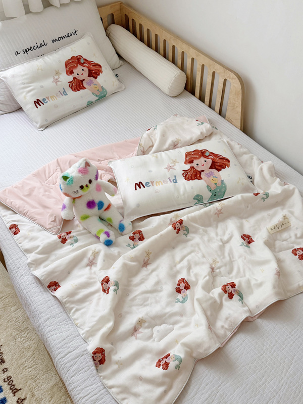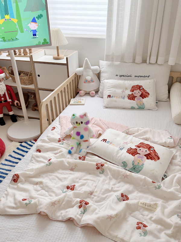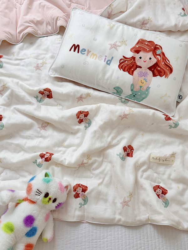 귀여운 인어 어린이 더블 레이어 거즈 여름 이불 기계 세탁 가능 시원한 느낌 아기 유치원 작은 얼음 피부 에어컨 이불