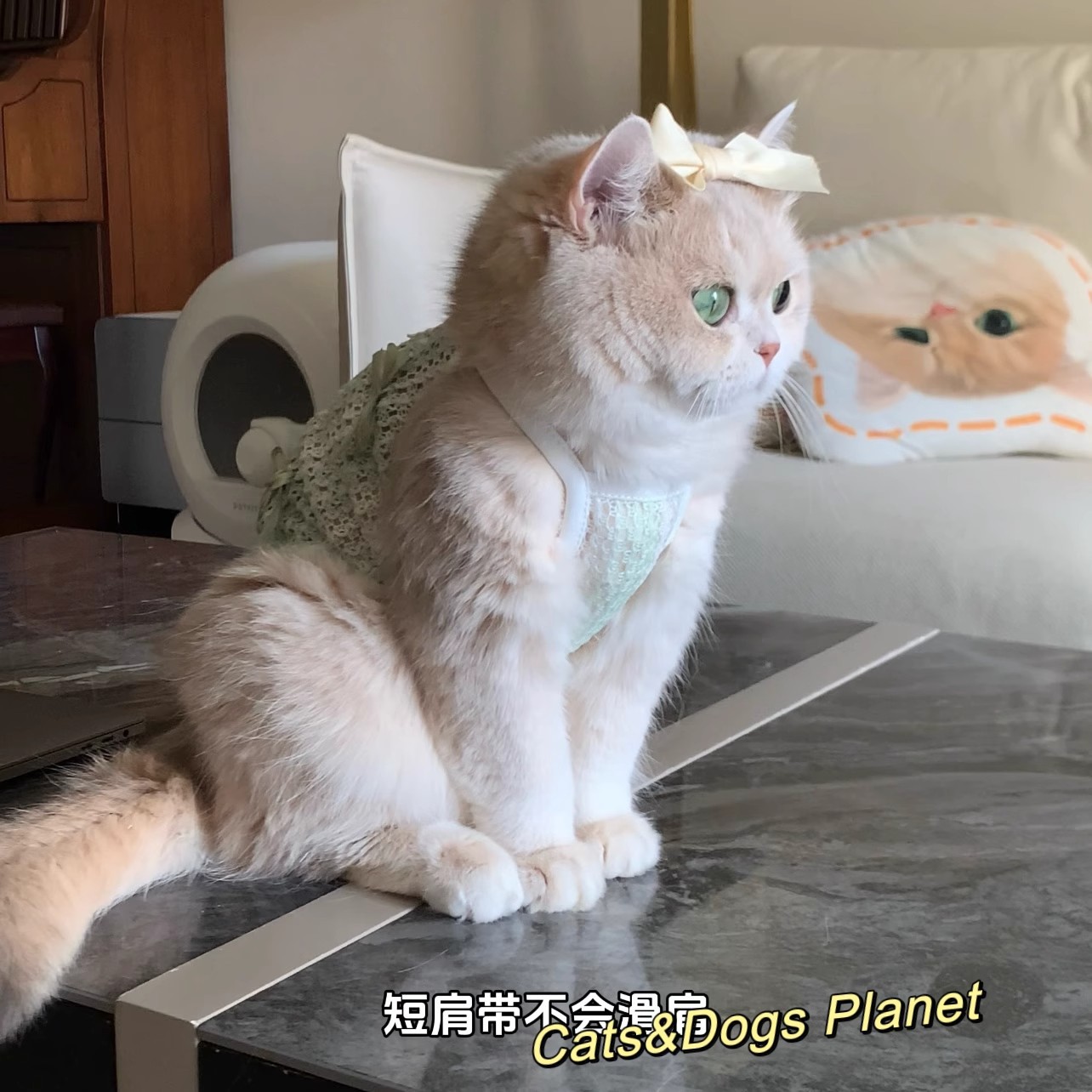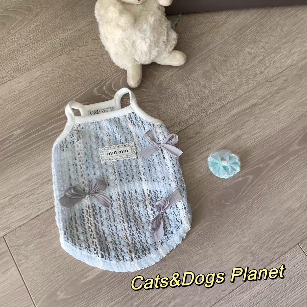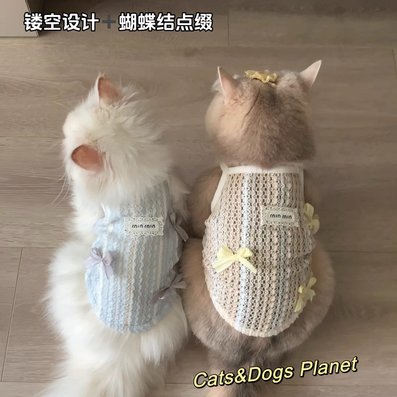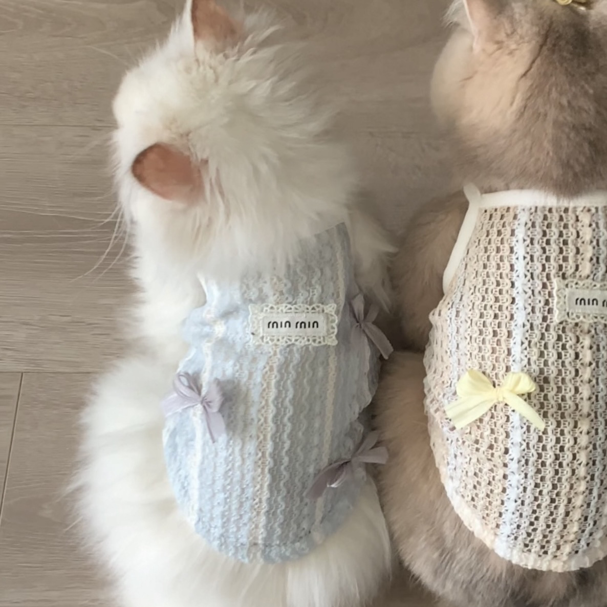 봄 여름 신작 고양이와 강아지 조끼, 속이 빈 털빠짐 방지 멜빵, 귀여운 리본옷, 금색 그라데이션 블루캣스토어 가기