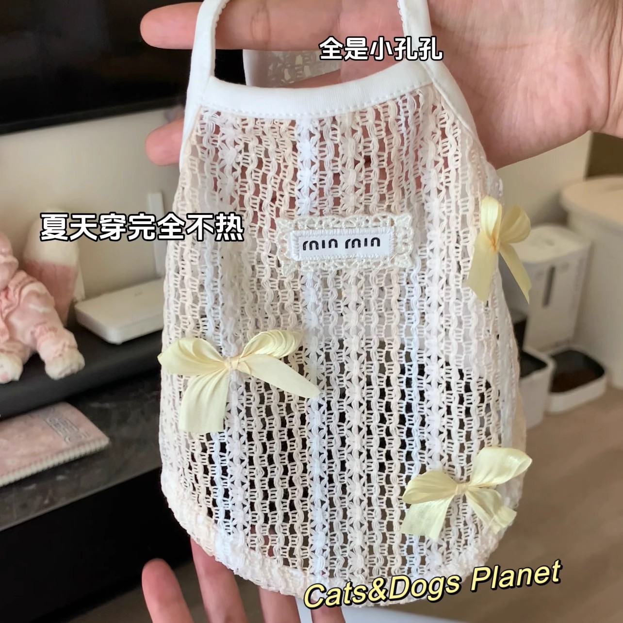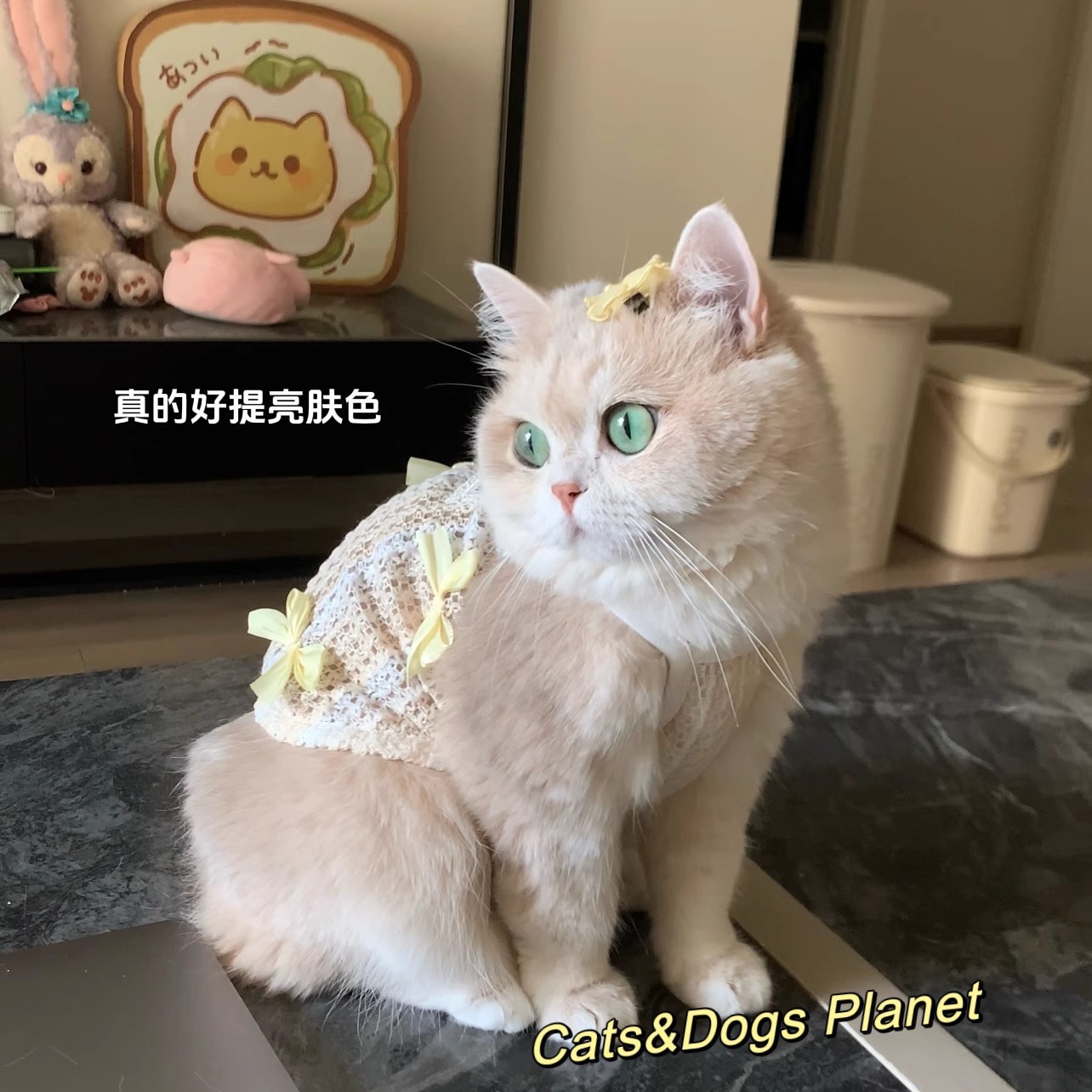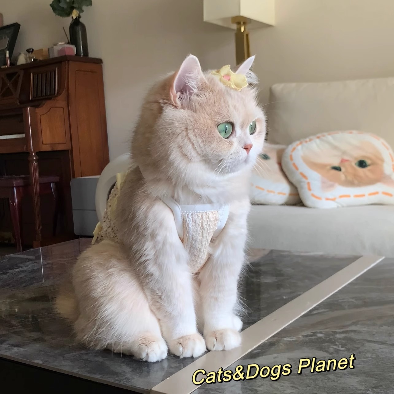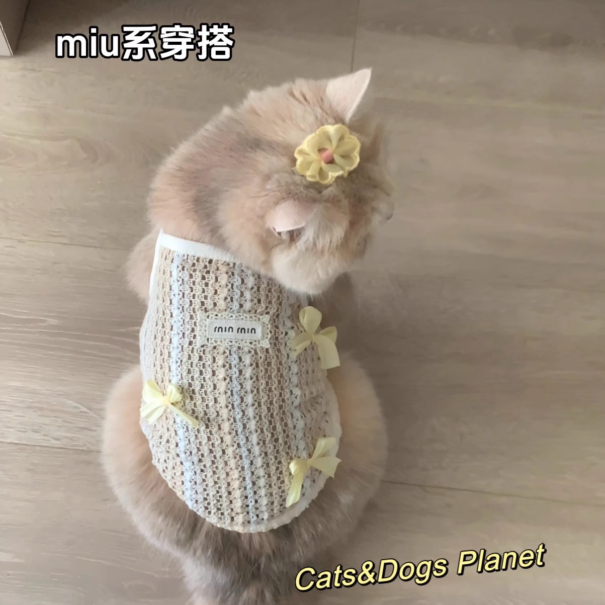 봄 여름 신작 고양이와 강아지 조끼, 속이 빈 털빠짐 방지 멜빵, 귀여운 리본옷, 금색 그라데이션 블루캣스토어 가기