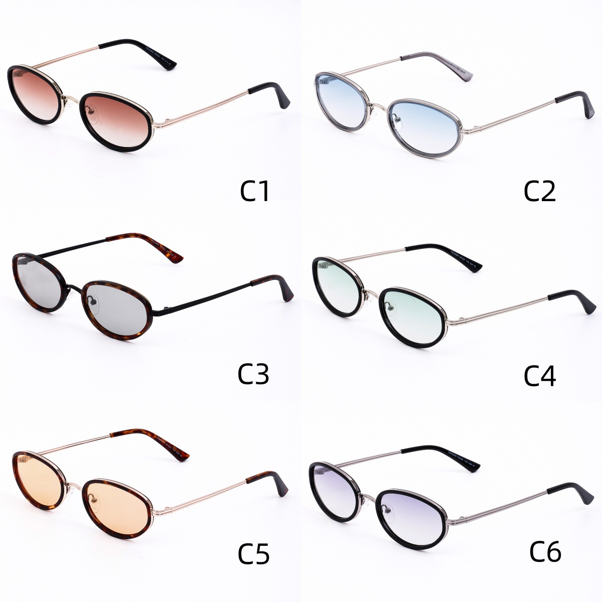 남성용 새로운 국경 간 유럽 및 미국 패션 금속 선글라스, 여성용 타원형 트렌디 금속 선글라스, 대외 무역 선글라스스토어 가기
