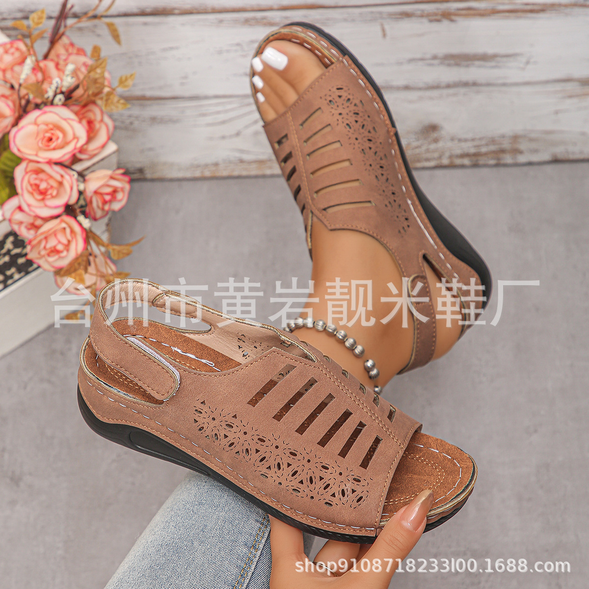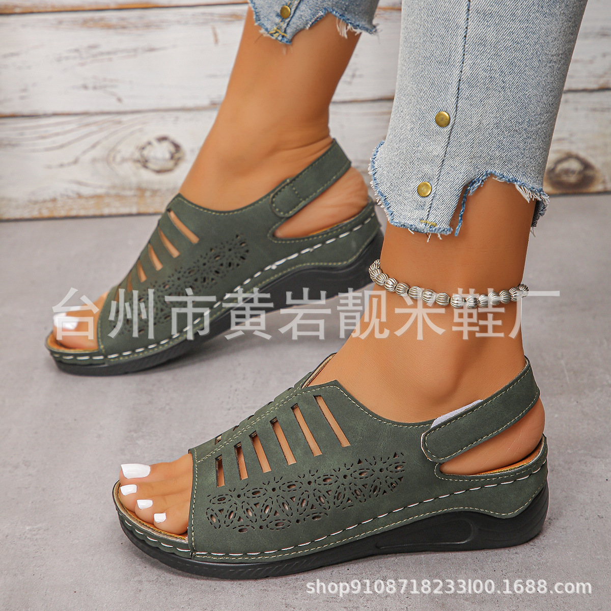 여성을위한 크로스 보더 대형 웨지 샌들 2025 여름 새로운 패션 핫 스타일 벨크로 여성을위한 43 사이즈 중공 샌들스토어 가기