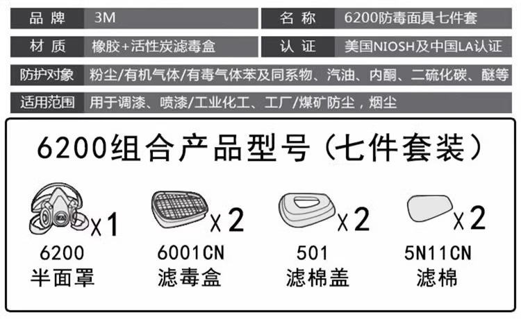 • 6200에는 6003 필터 상자 + 필터 면 1 상자 + 필터 상자 1 쌍이 함께 제공됩니다.