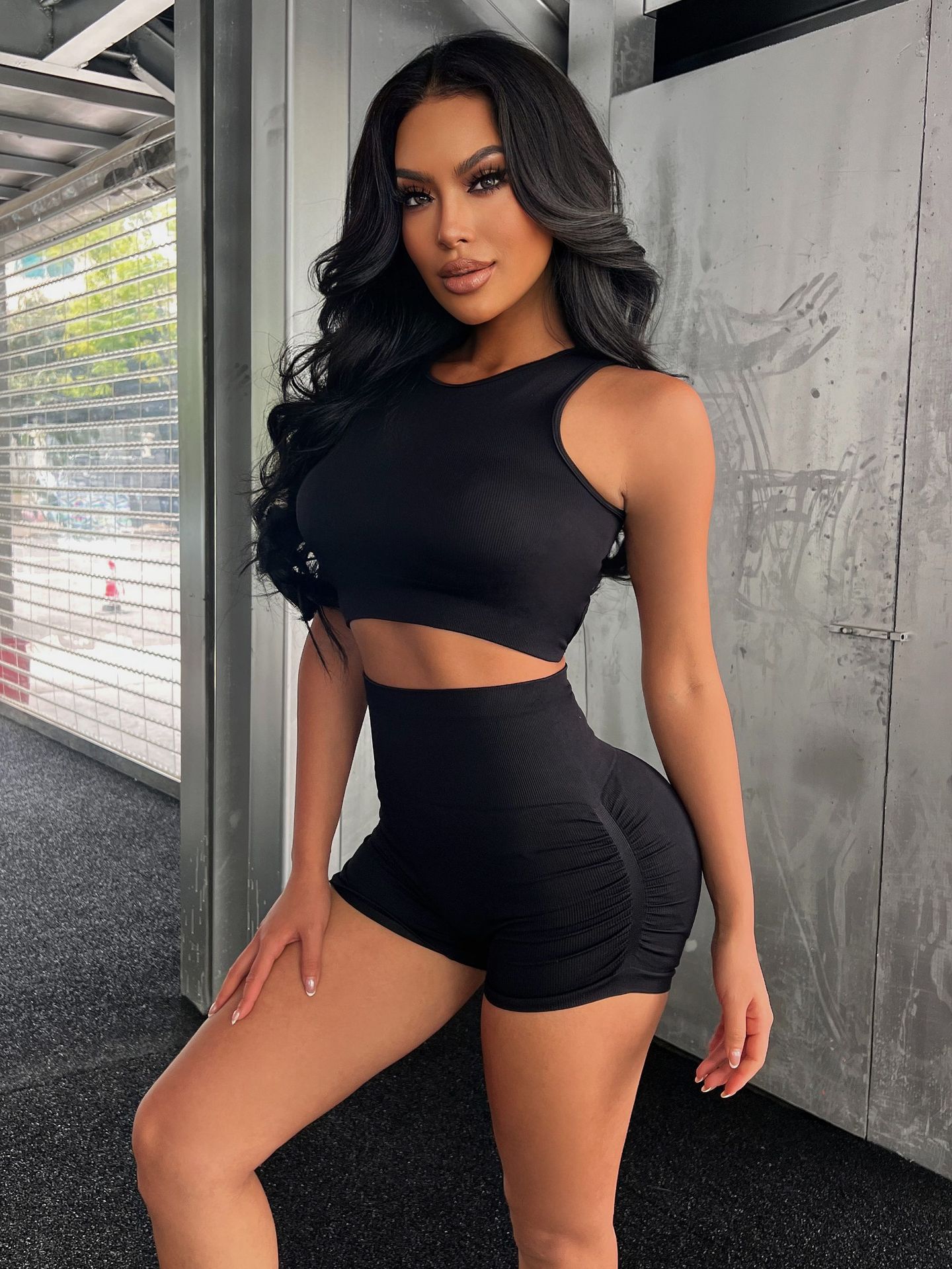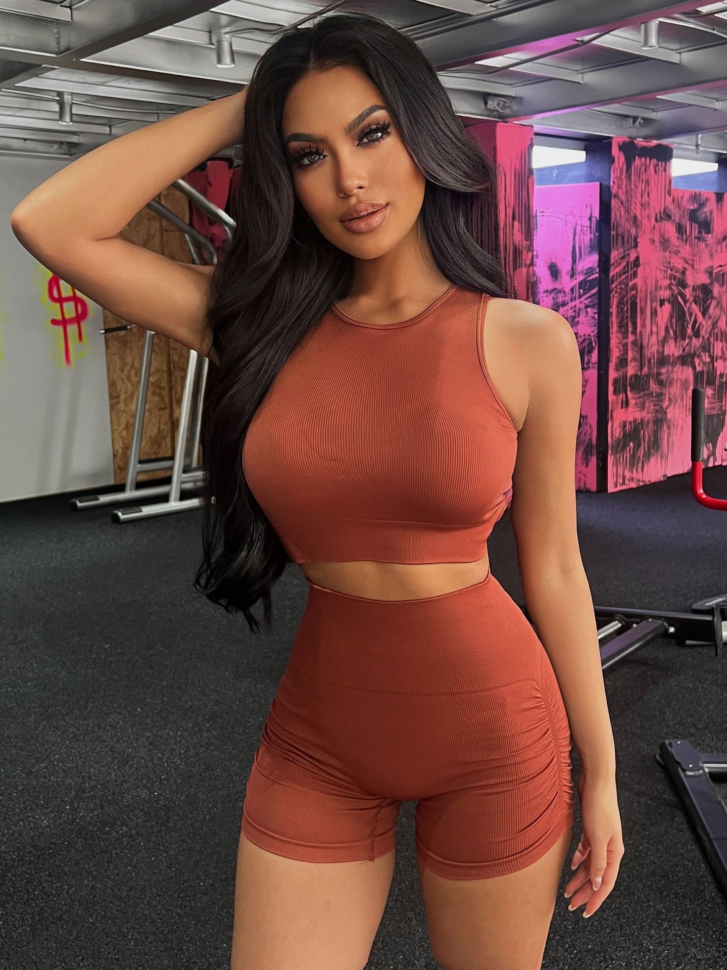 새로운 주름진 엉덩이 리프팅 가슴 패드 브래지어 요가 빠른 건조 통기성 스포츠 피트니스 타이트 하이 웨이스트 반바지 세트
