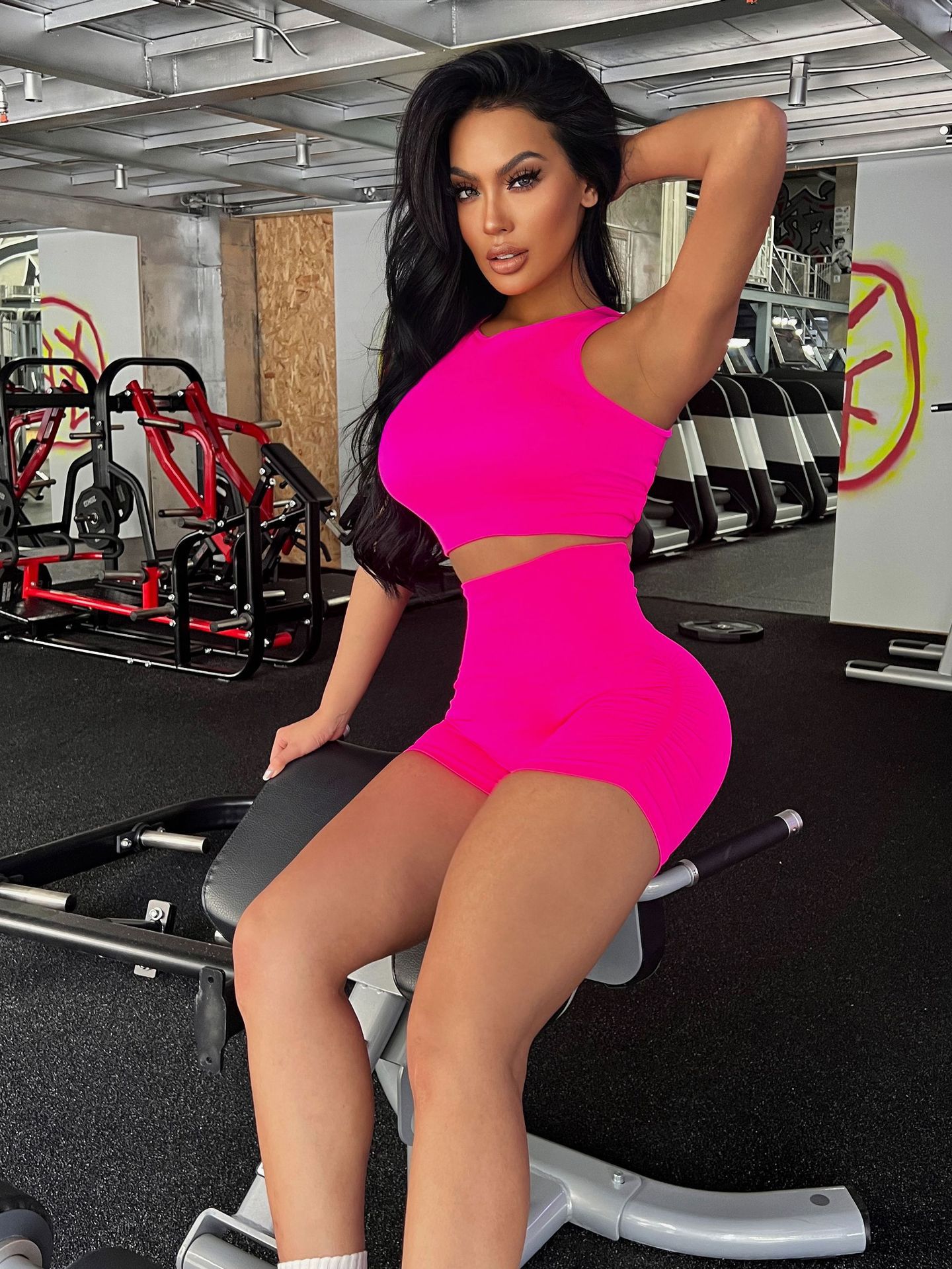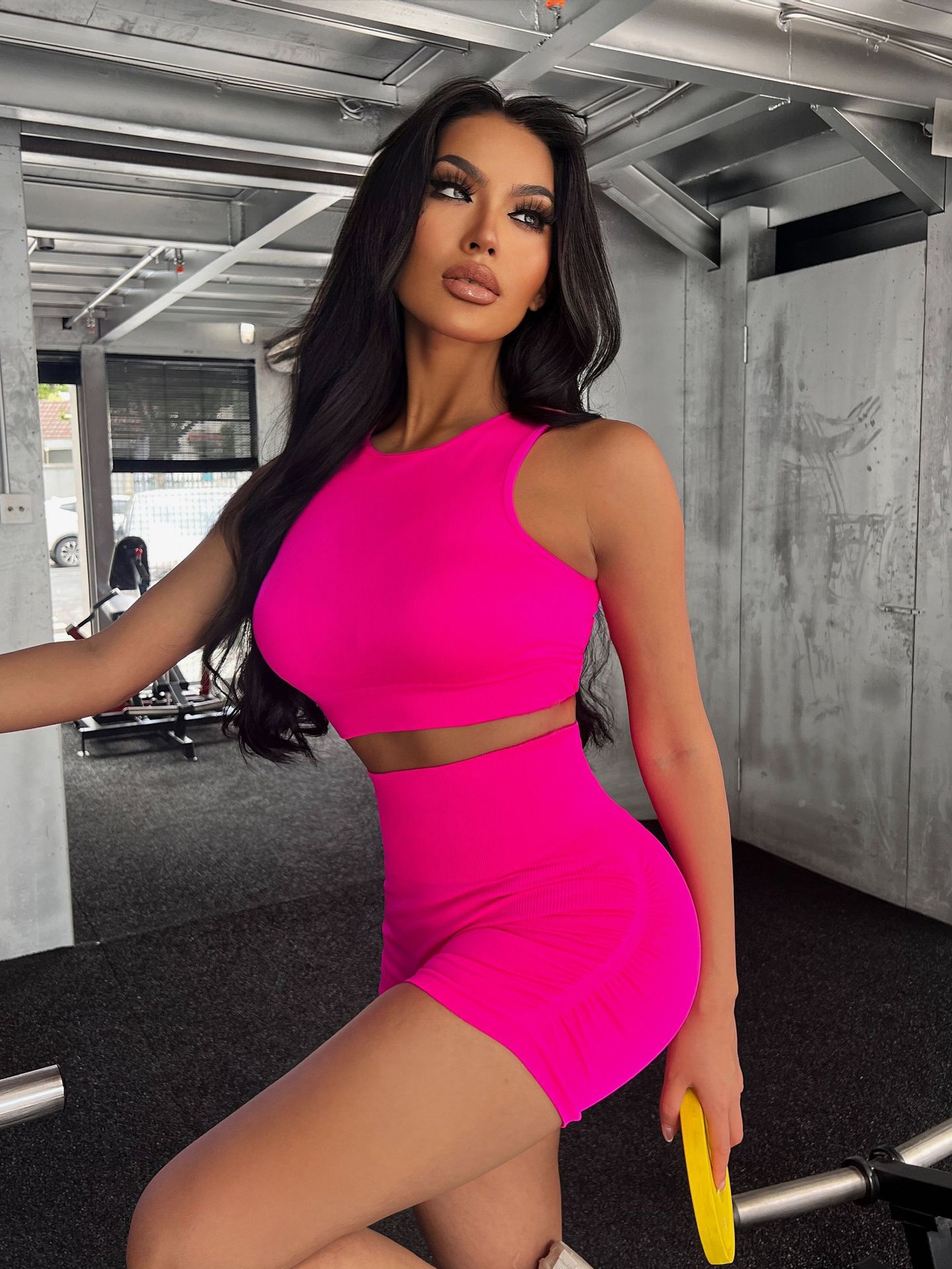 새로운 주름진 엉덩이 리프팅 가슴 패드 브래지어 요가 빠른 건조 통기성 스포츠 피트니스 타이트 하이 웨이스트 반바지 세트스토어 가기