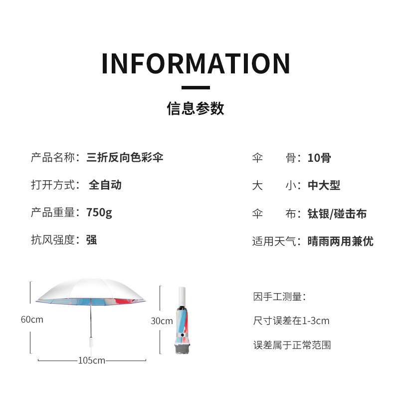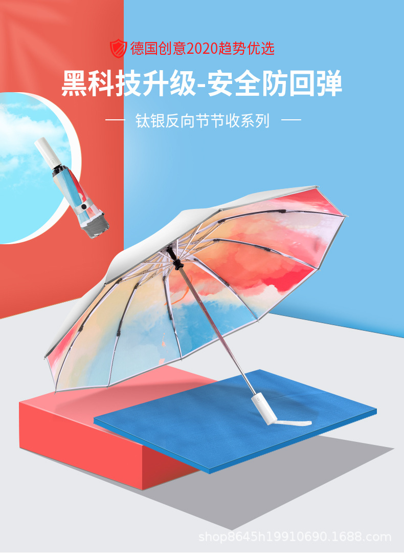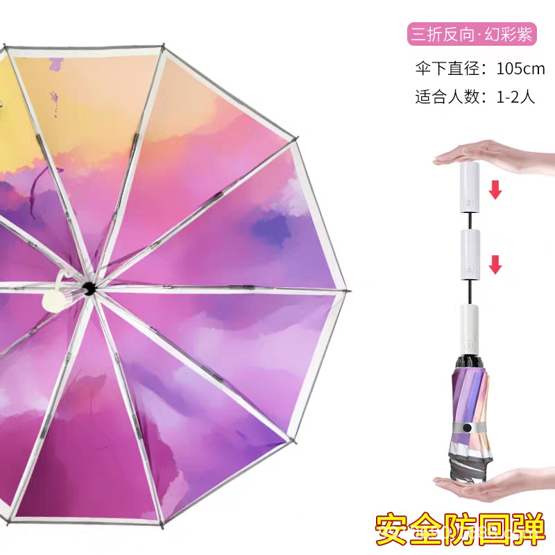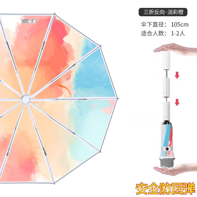 여성용 완전 자동 우산 역방향 접이식, 비 또는 빛, 방풍 파라솔, 자외선 차단 및 자외선 차단 우산스토어 가기