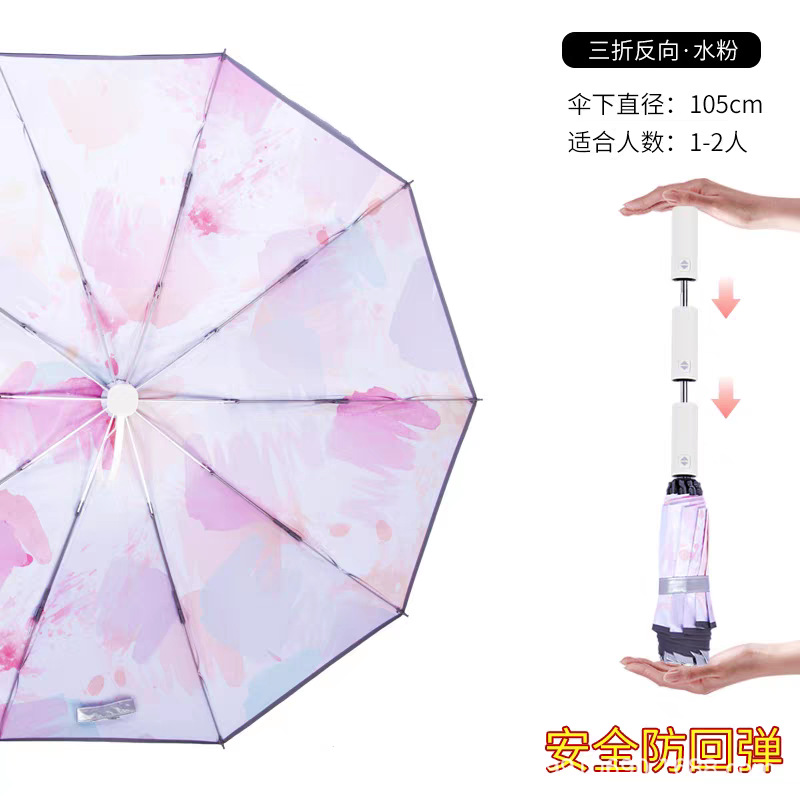 여성용 완전 자동 우산 역방향 접이식, 비 또는 빛, 방풍 파라솔, 자외선 차단 및 자외선 차단 우산