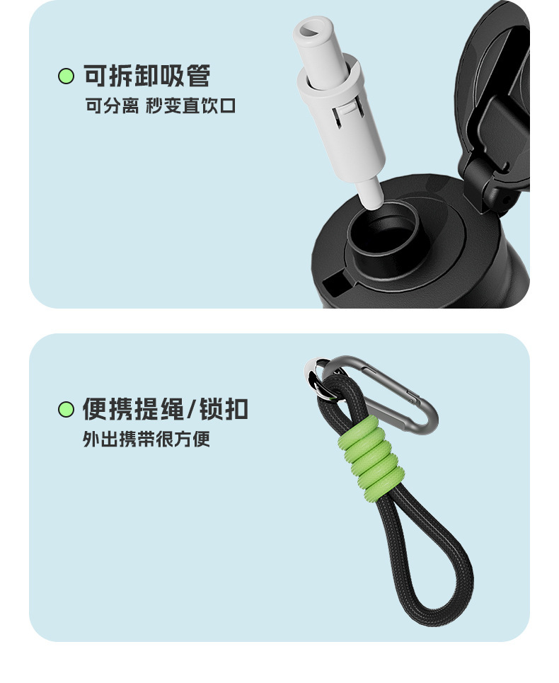 • [원피스 오픈뚜껑 + 리프팅로프 + 카라비너 ​​+ 컵솔 + 빨대솔 ] 700ml 그린