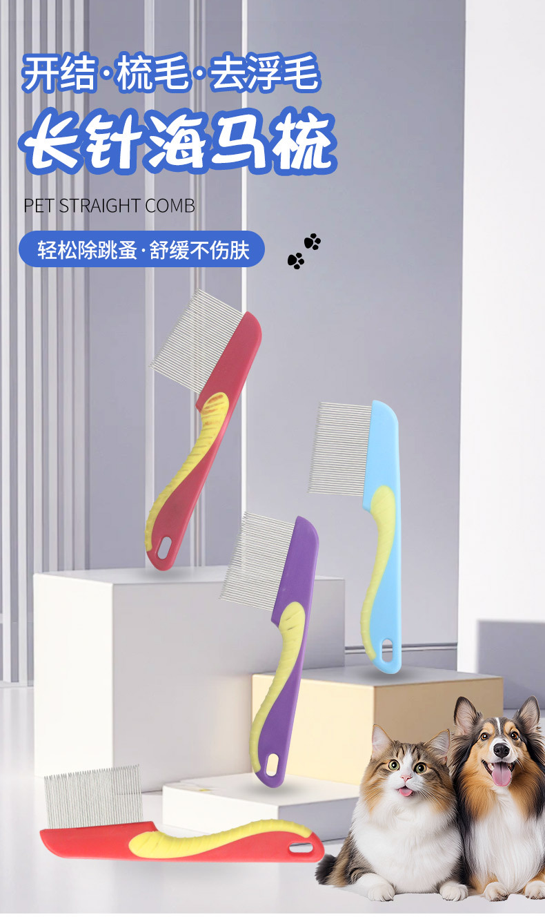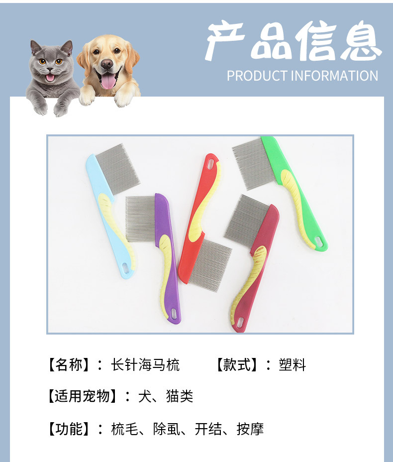 고양이와 강아지를 위한 손잡이가 긴 벼룩빗, 청소용품, 긴바늘, 가는 치아, 고양이와 강아지의 벼룩 제거 빗, 애완동물 빗스토어 가기
