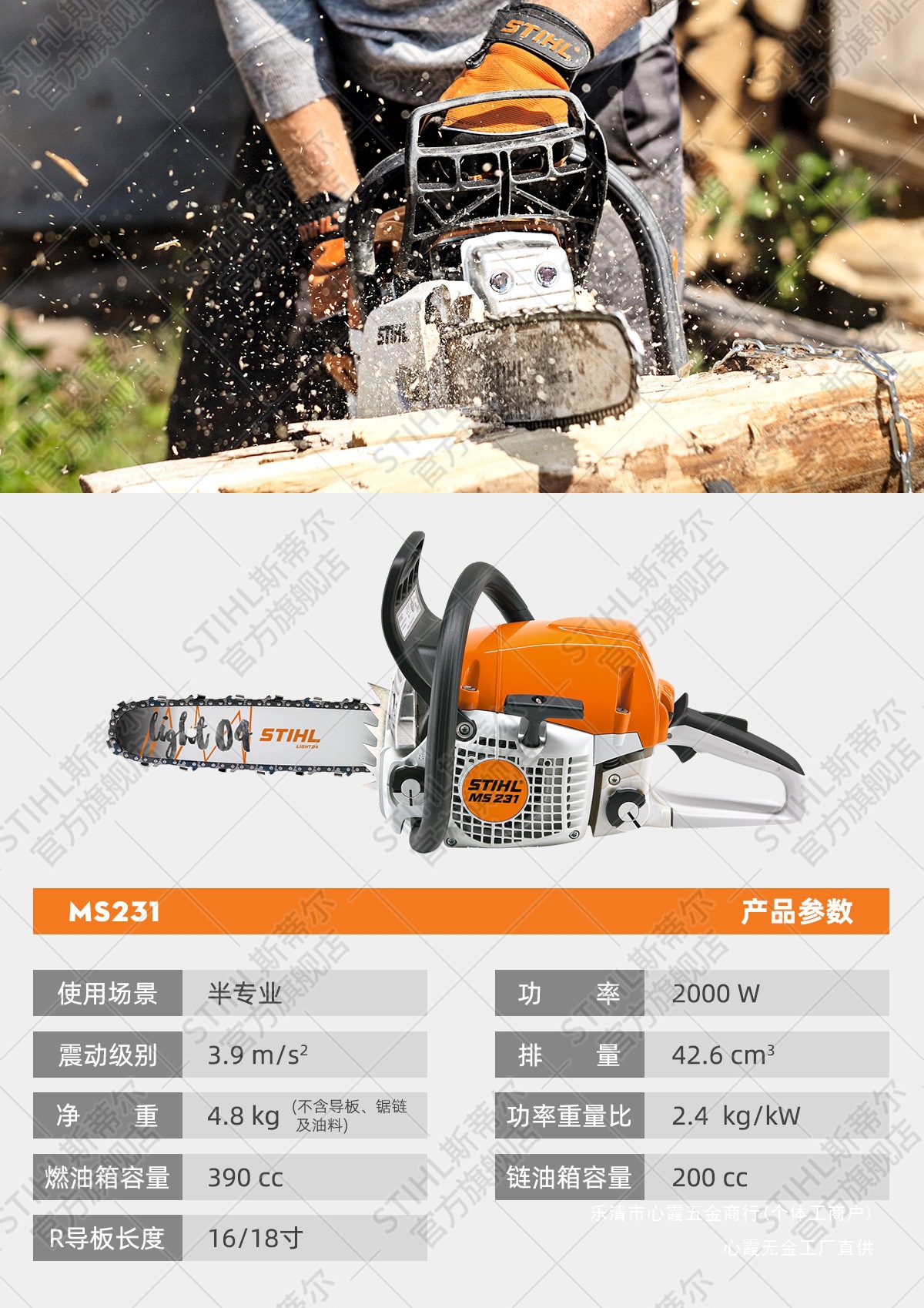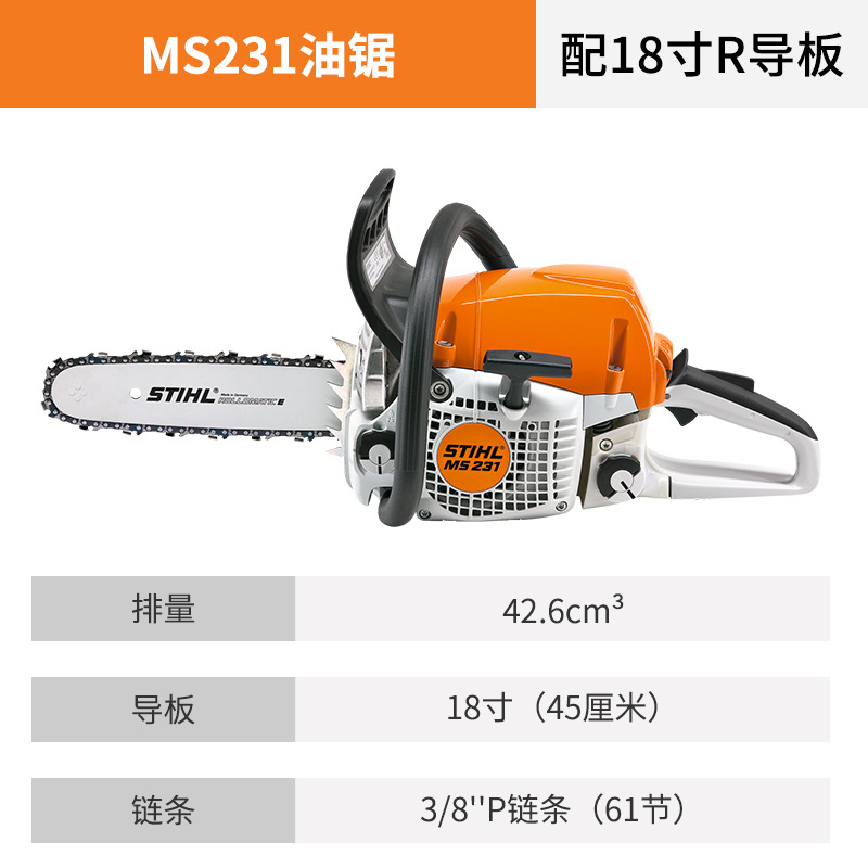 • MS231 체인톱(18inch R 가이드 플레이트 3/8''P 체인 61섹션 포함)
