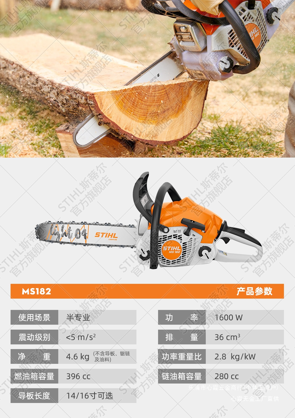 • MS182 엔진톱 (R 가이드 바, 3/8" P 체인 50링크 포함)