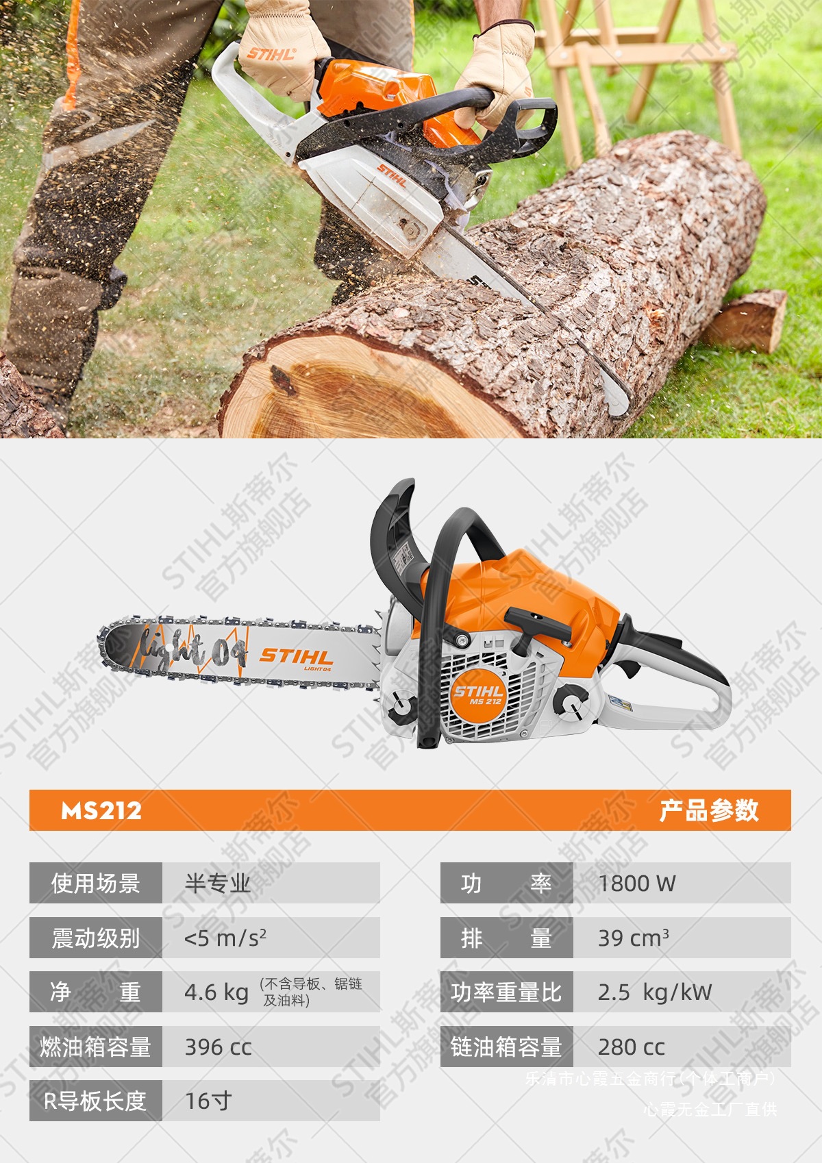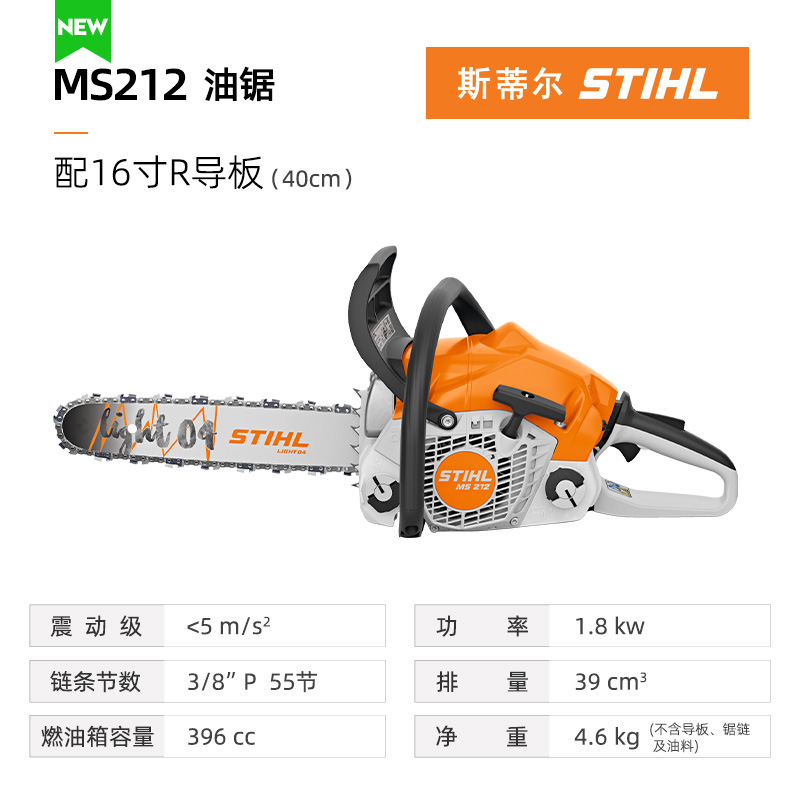 • MS212 엔진톱 (R 가이드 바, 3/8" 피치 체인 55링크 포함)