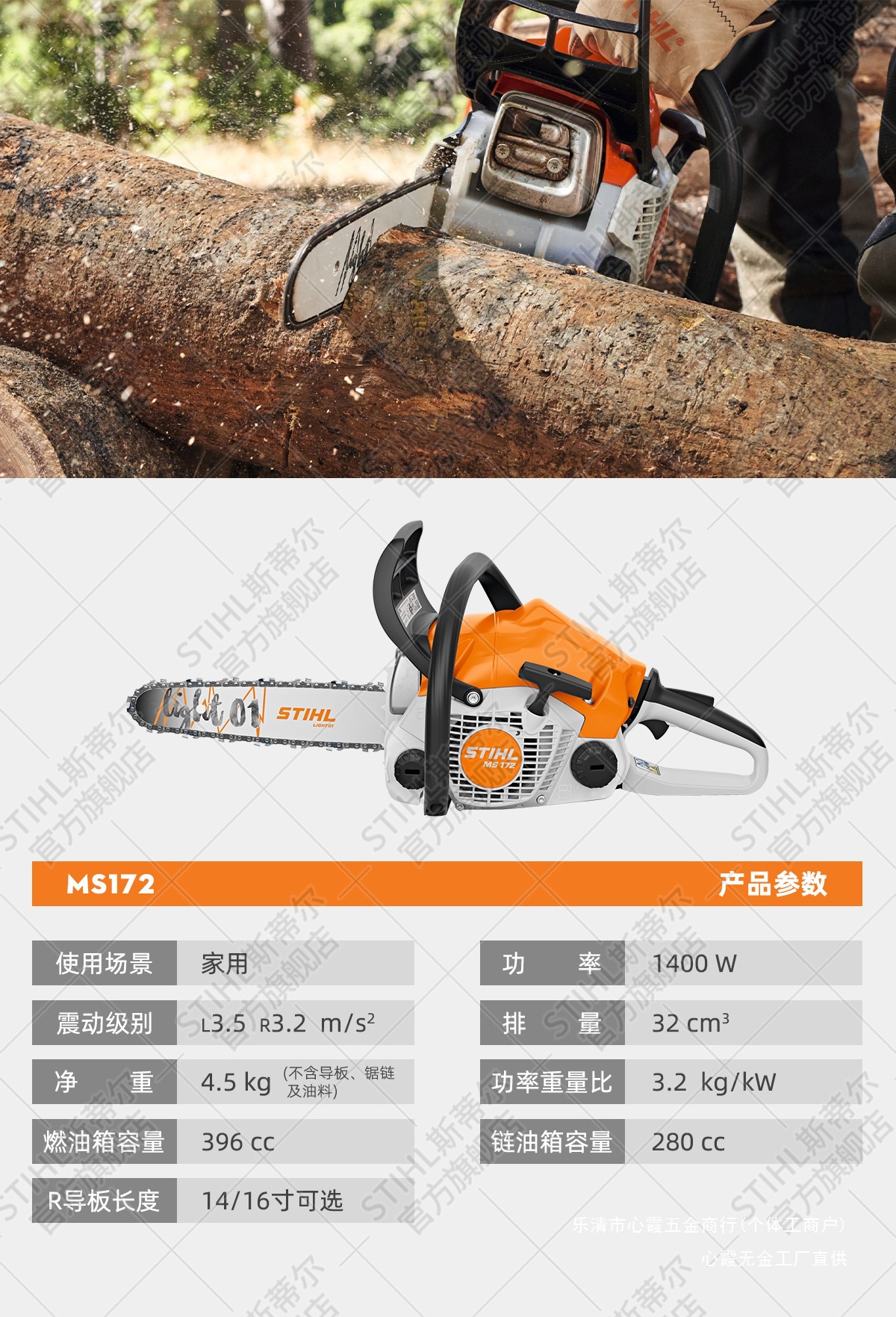 • MS172 엔진톱 (R 가이드 바, 3/8" P 체인 50링크 포함)