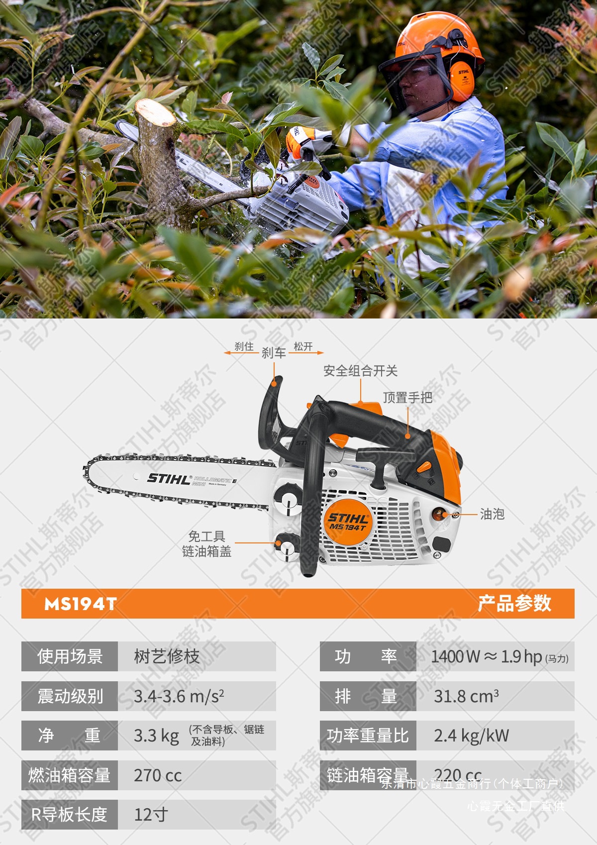 • MS194T 한손 체인톱(12inch R 가이드 플레이트 3/8''P 체인 44섹션 포함)