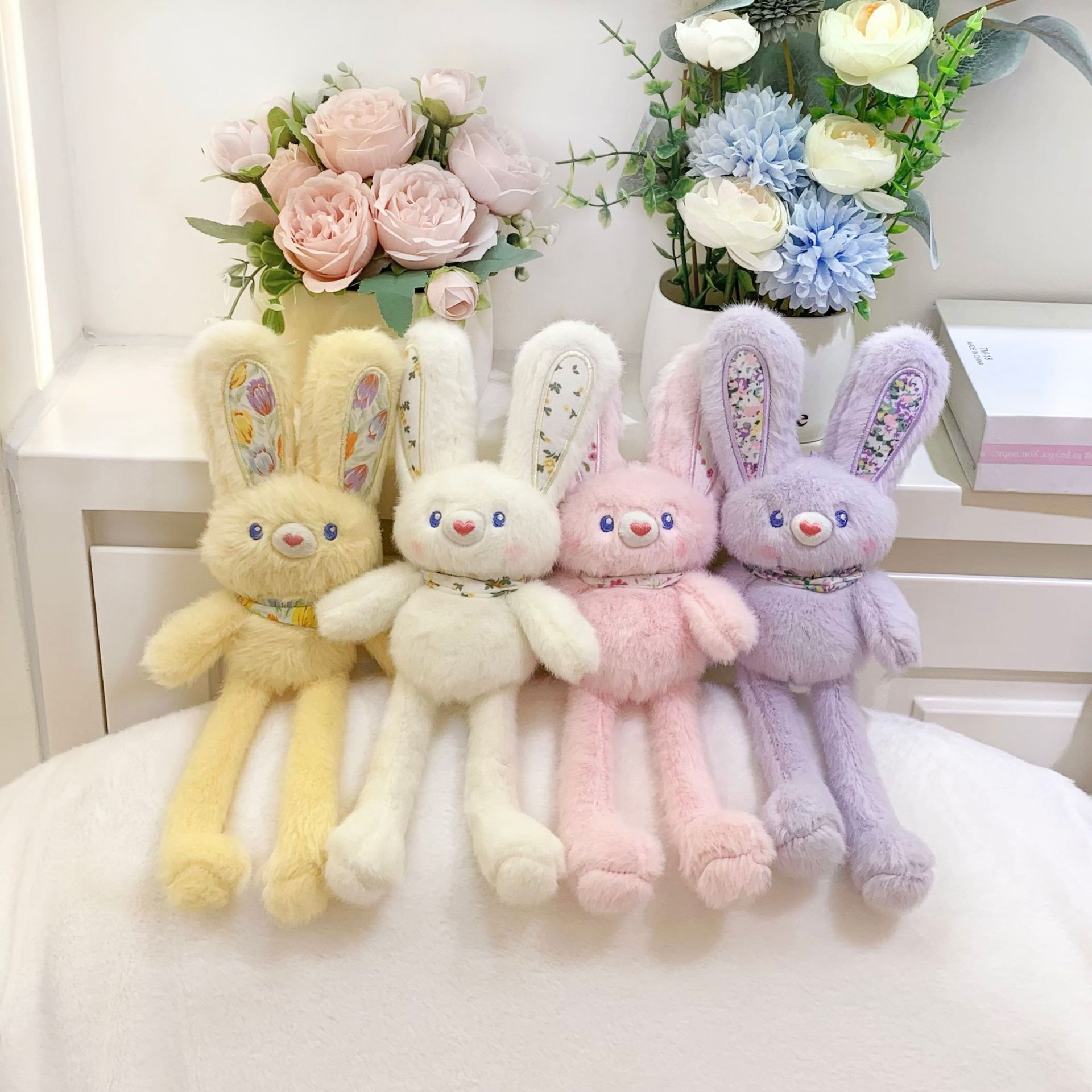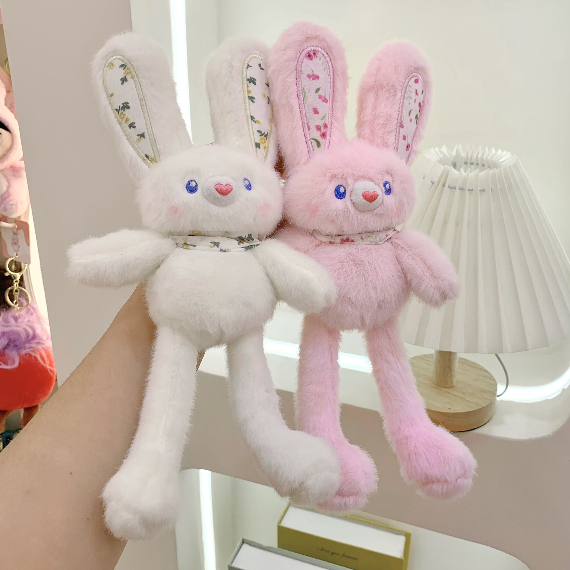 귀여운 당기는 토끼 인형 플러시 장난감 도파민 컬러 당기는 귀 토끼 인형 소녀 가방 펜던트 키 체인스토어 가기