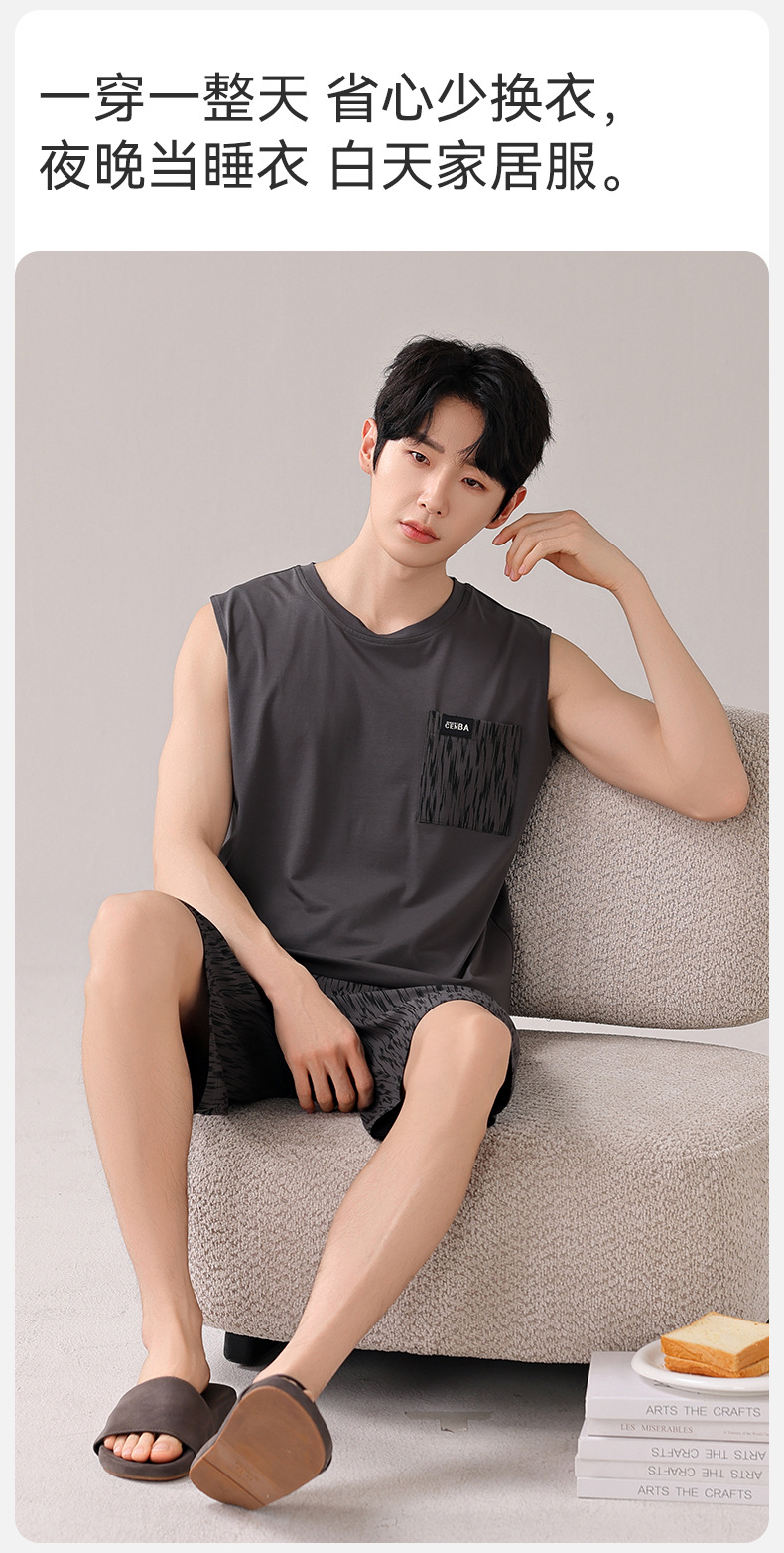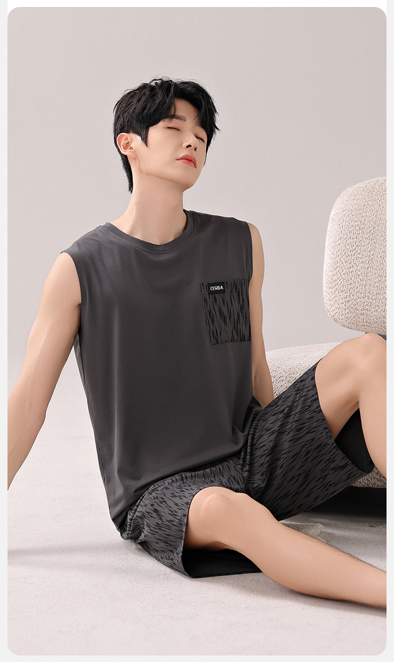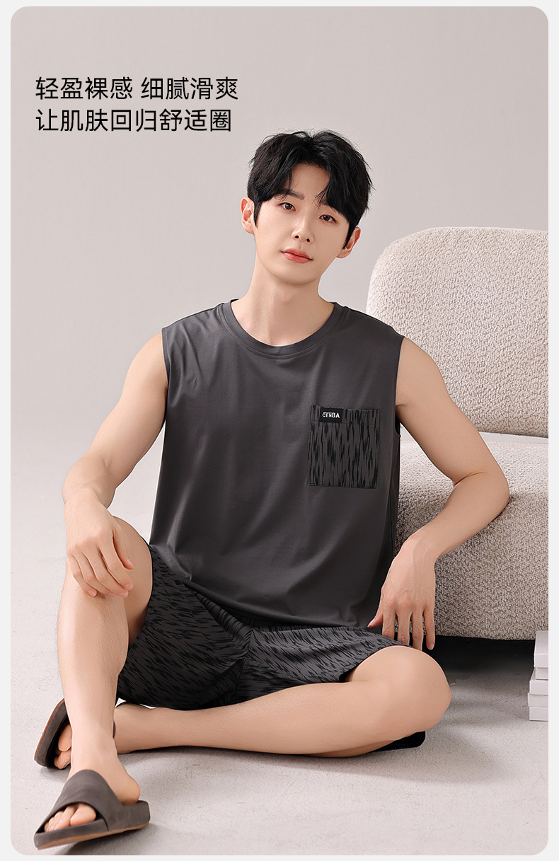 Tianshuo 실크 Lyocell 소프트 잠옷 남성 여름 모달 민소매 조끼 얇은 플러스 사이즈 남성 홈웨어
