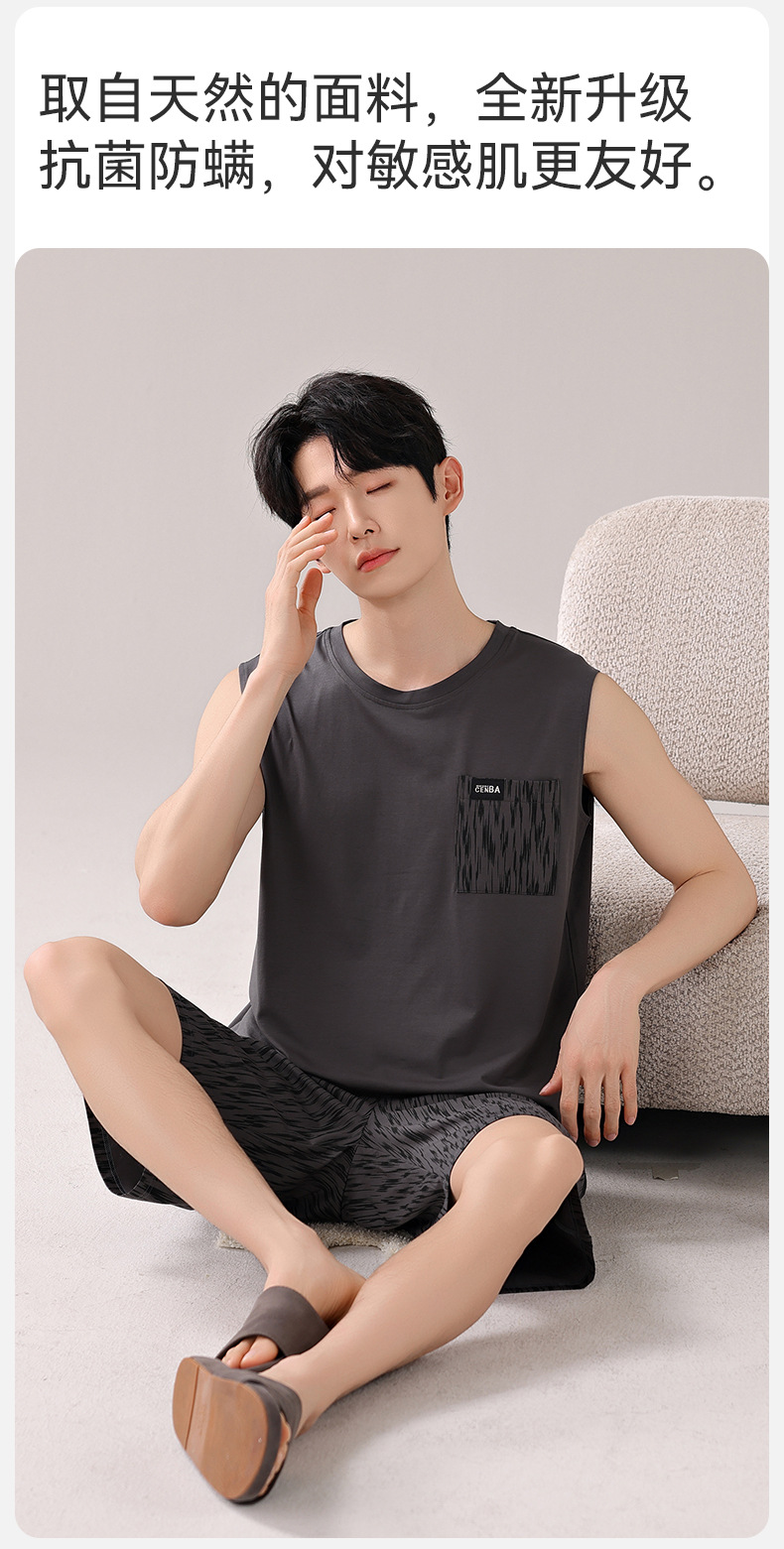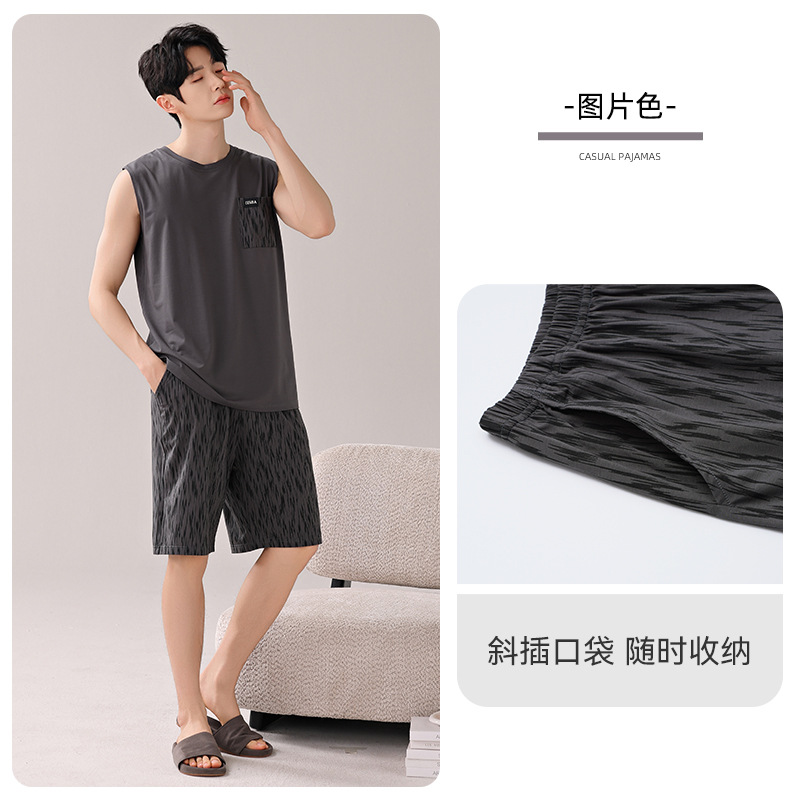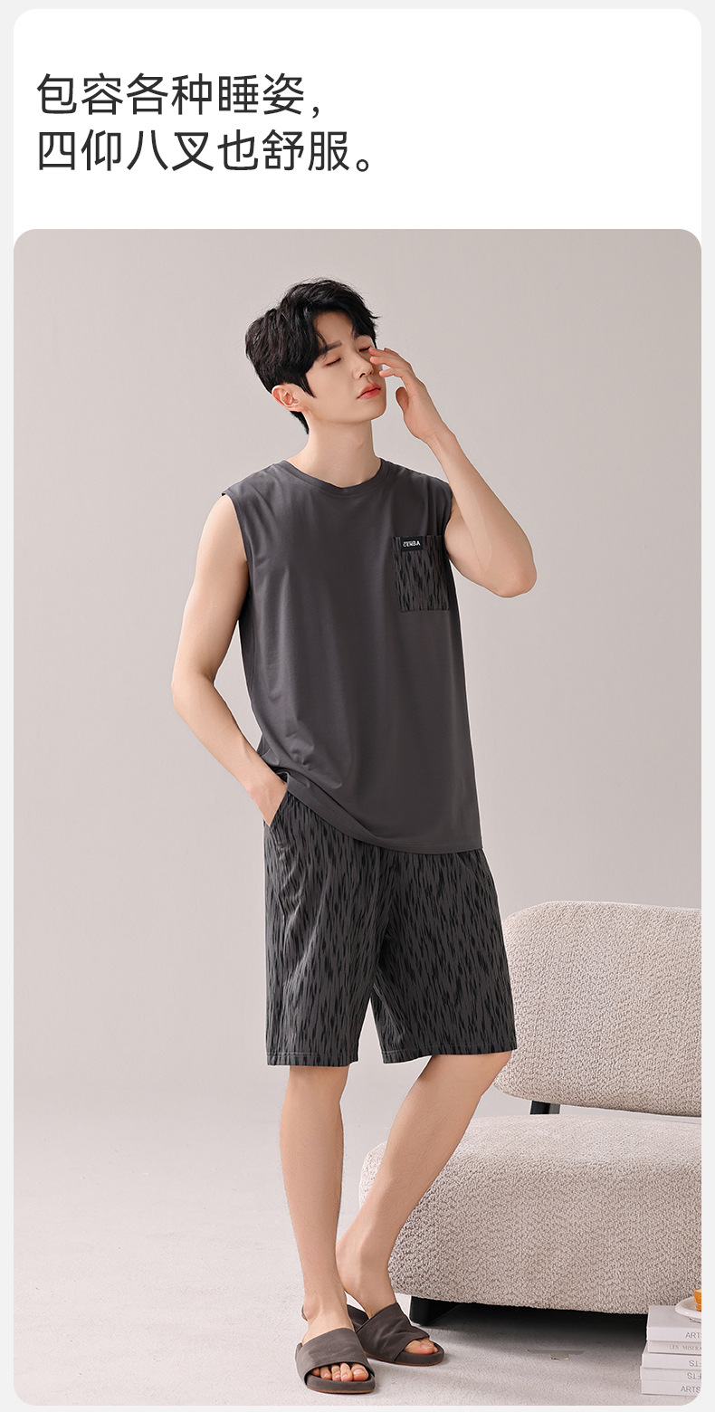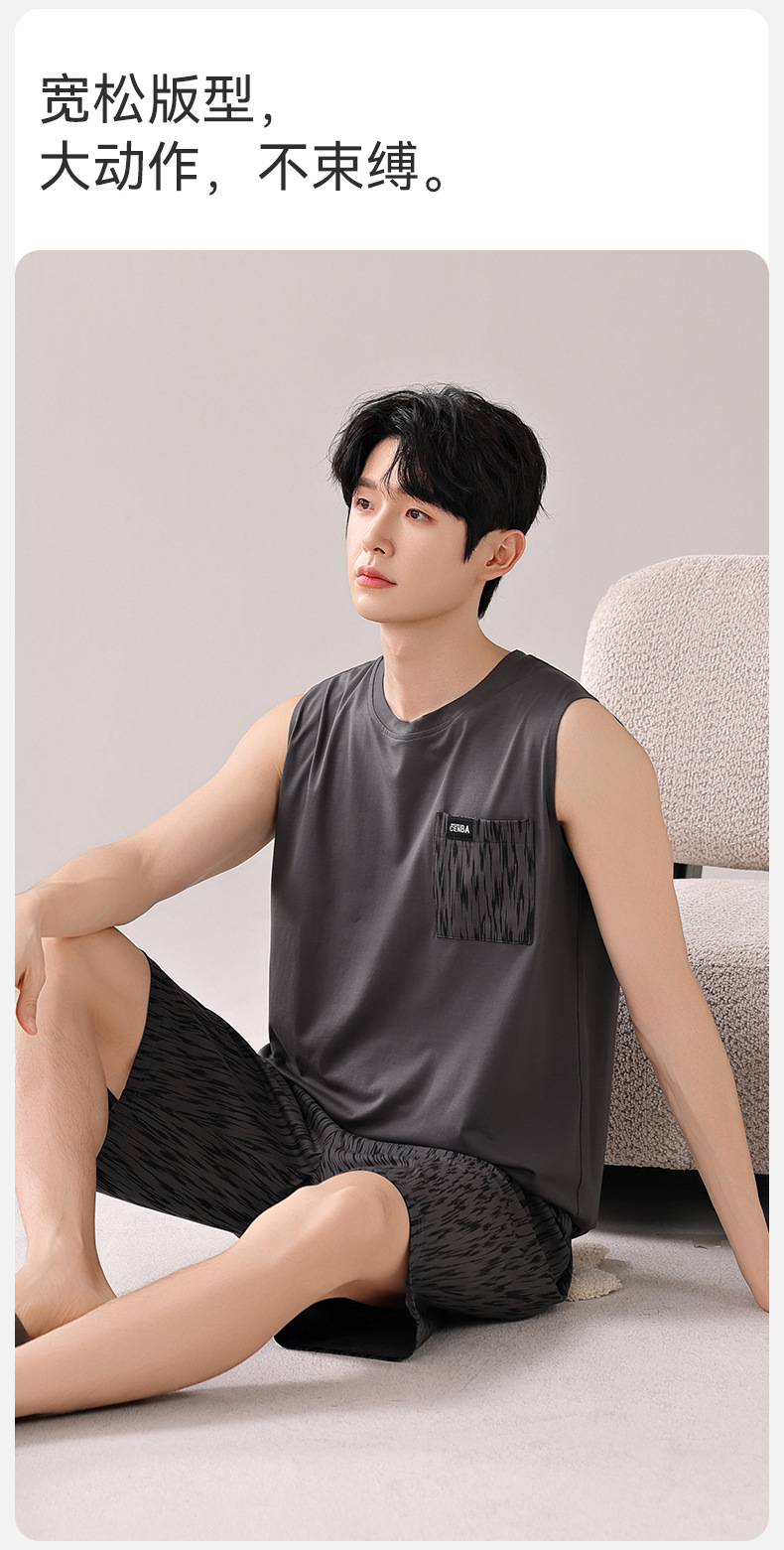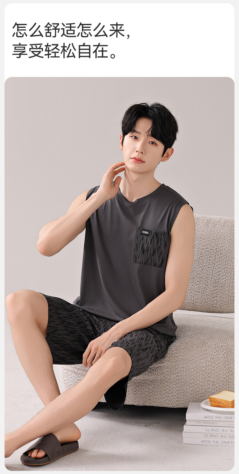 Tianshuo 실크 Lyocell 소프트 잠옷 남성 여름 모달 민소매 조끼 얇은 플러스 사이즈 남성 홈웨어스토어 가기