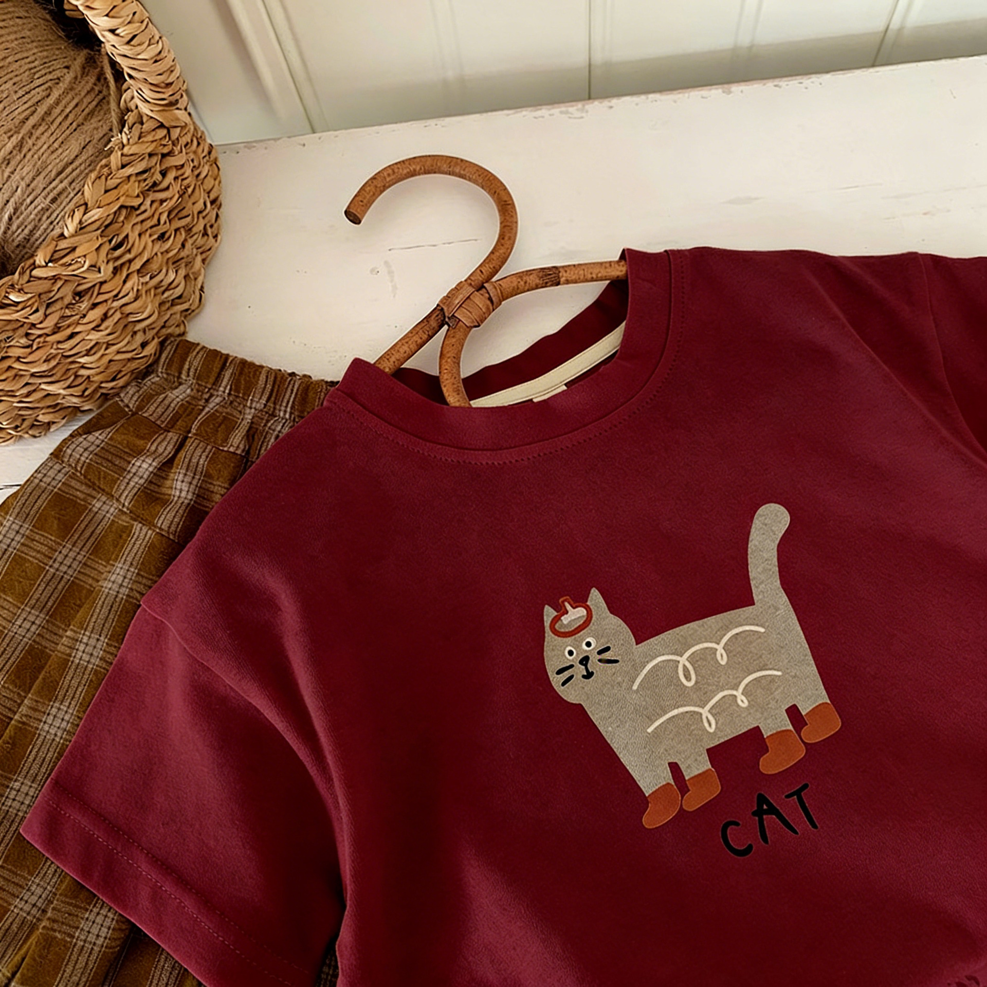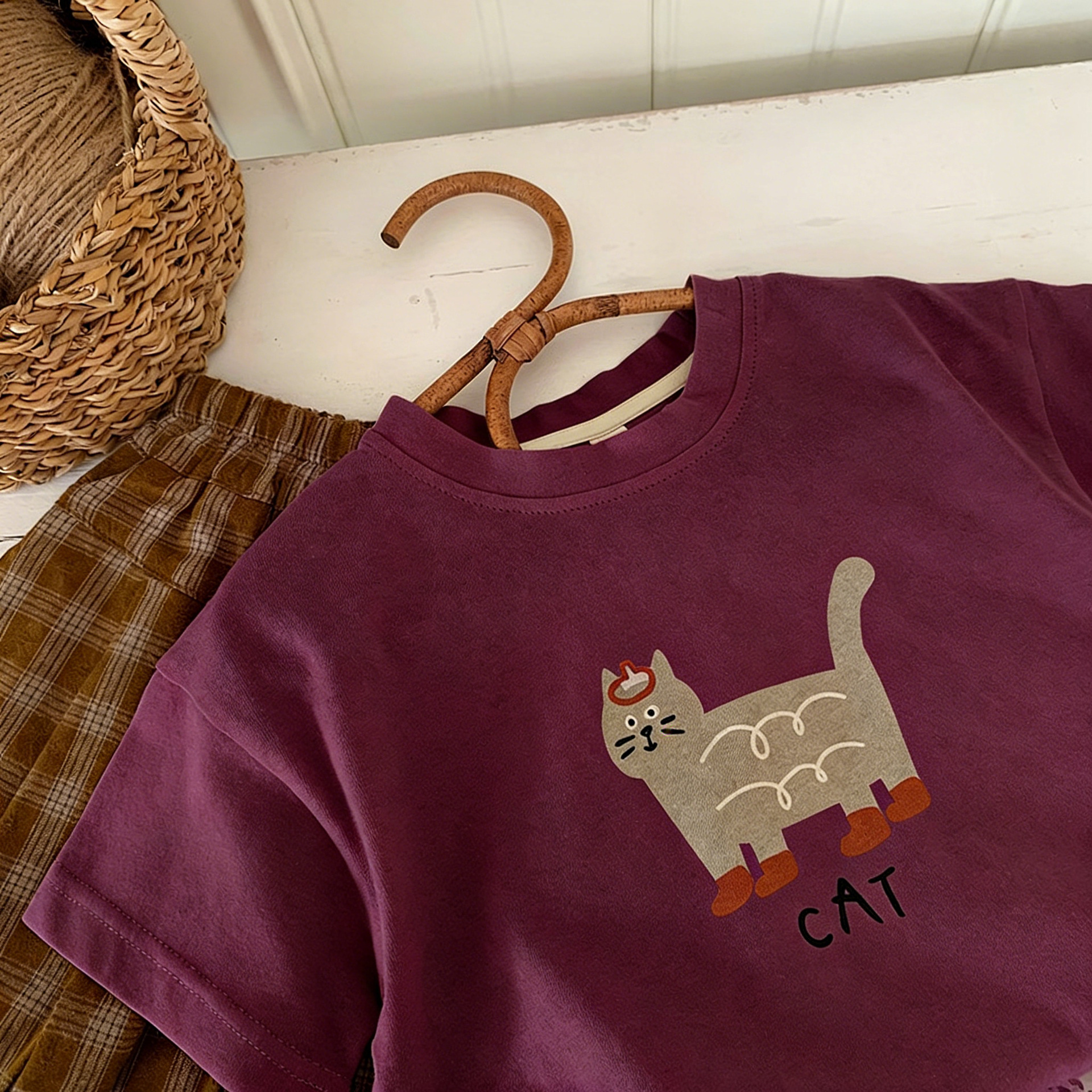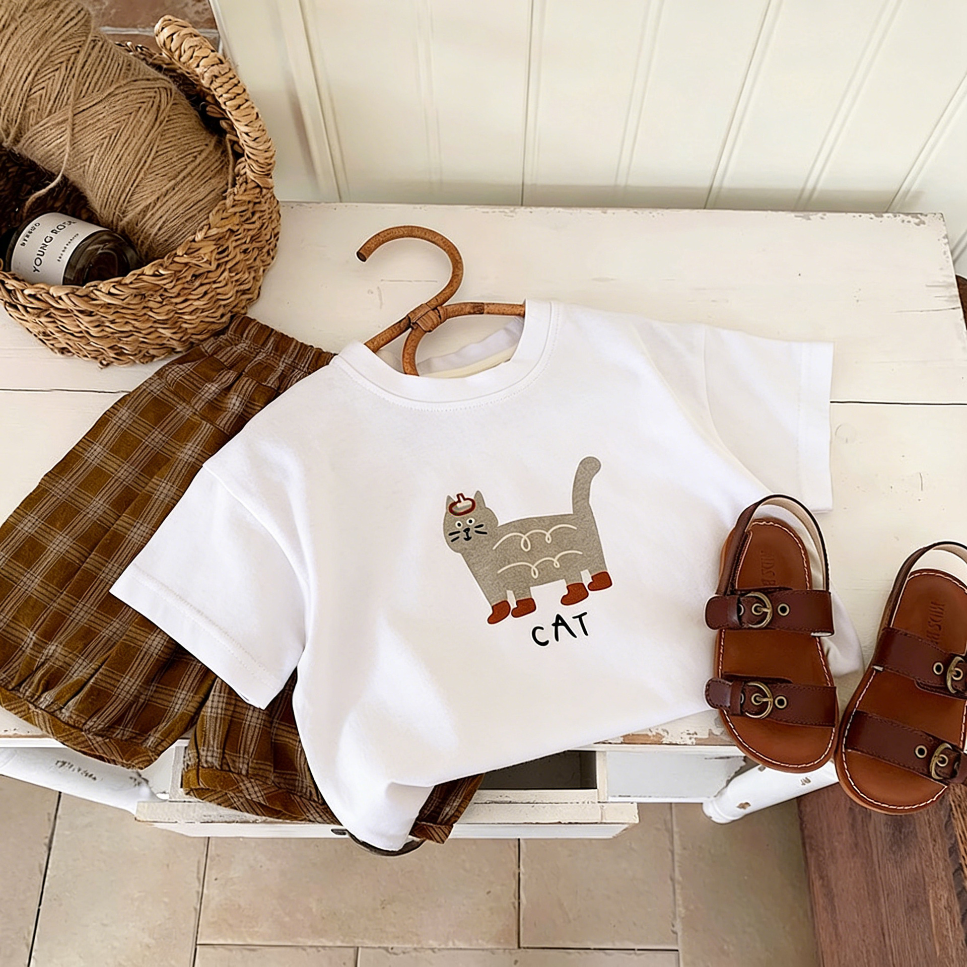 한국 스타일 베이비 순면 통기성 반팔 티셔츠 2025 소년과 소녀를위한 여름 옷 만화 다목적 반팔 셔츠 탑스토어 가기