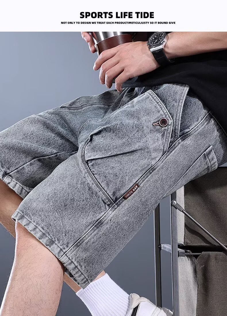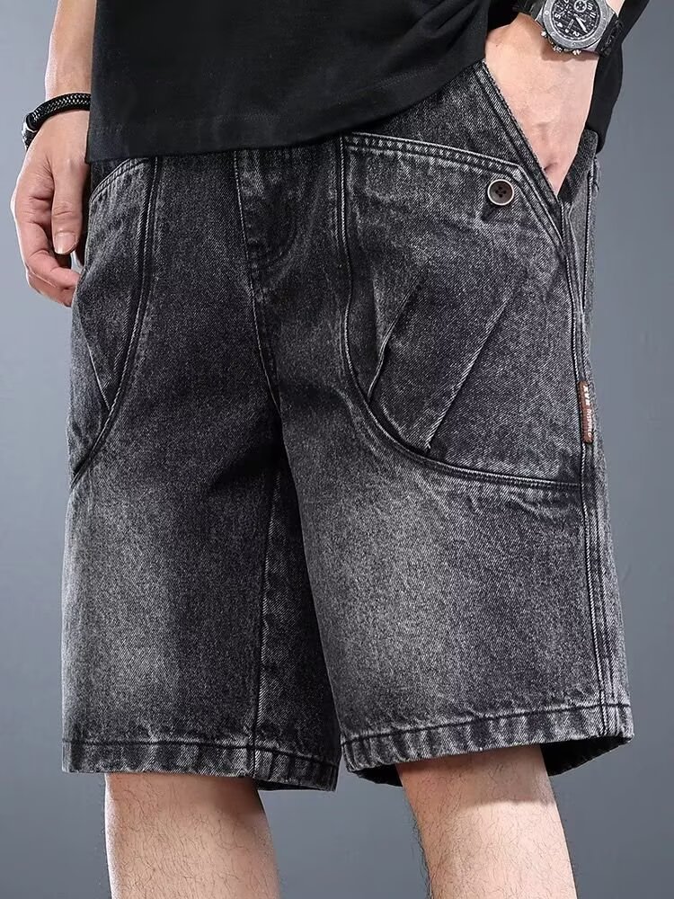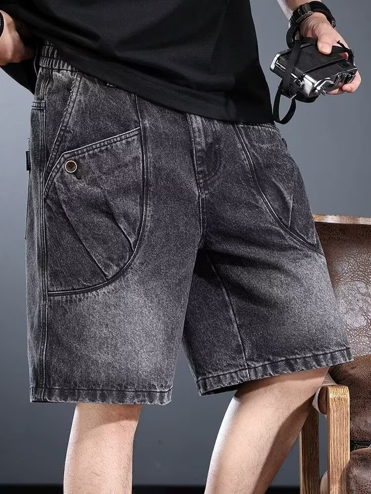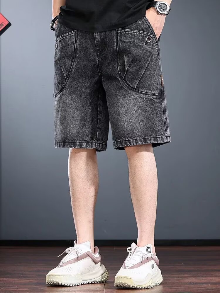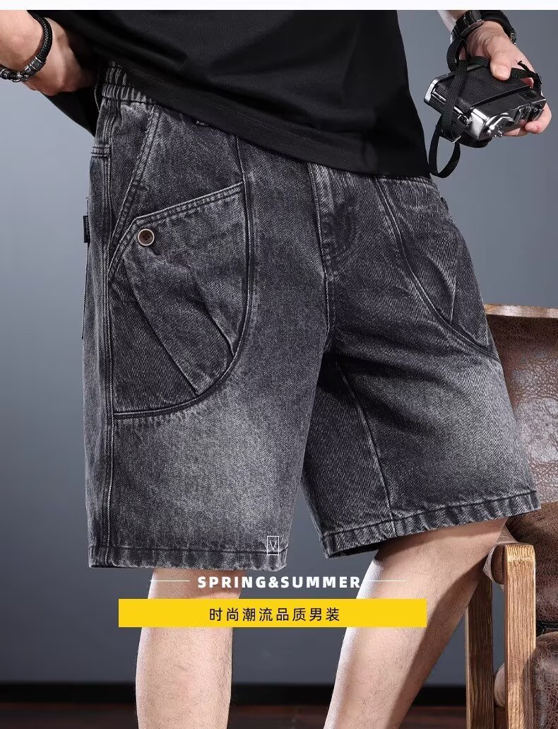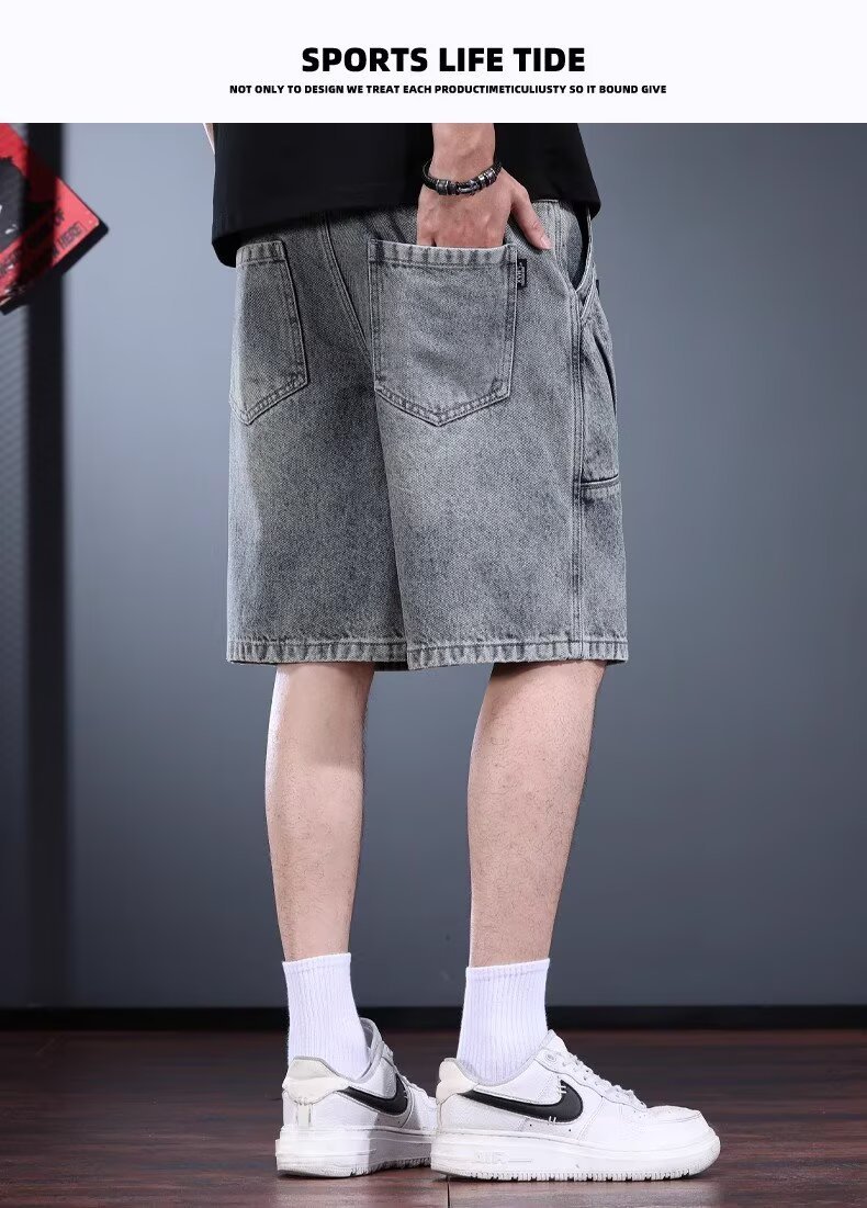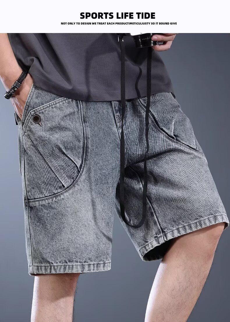하이엔드 헤비웨이트 데님 반바지 남성 여름 워싱 디스트레스드 아메리칸 레트로 5부 팬츠 루즈 트렌디 워크웨어 미드팬츠스토어 가기